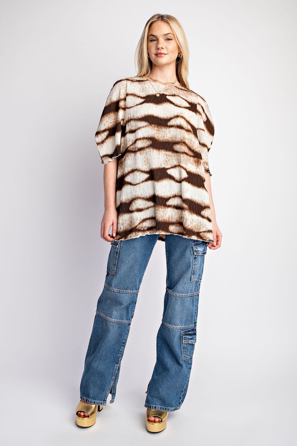 Wide Print Oversized Puff Short Sleeve Top