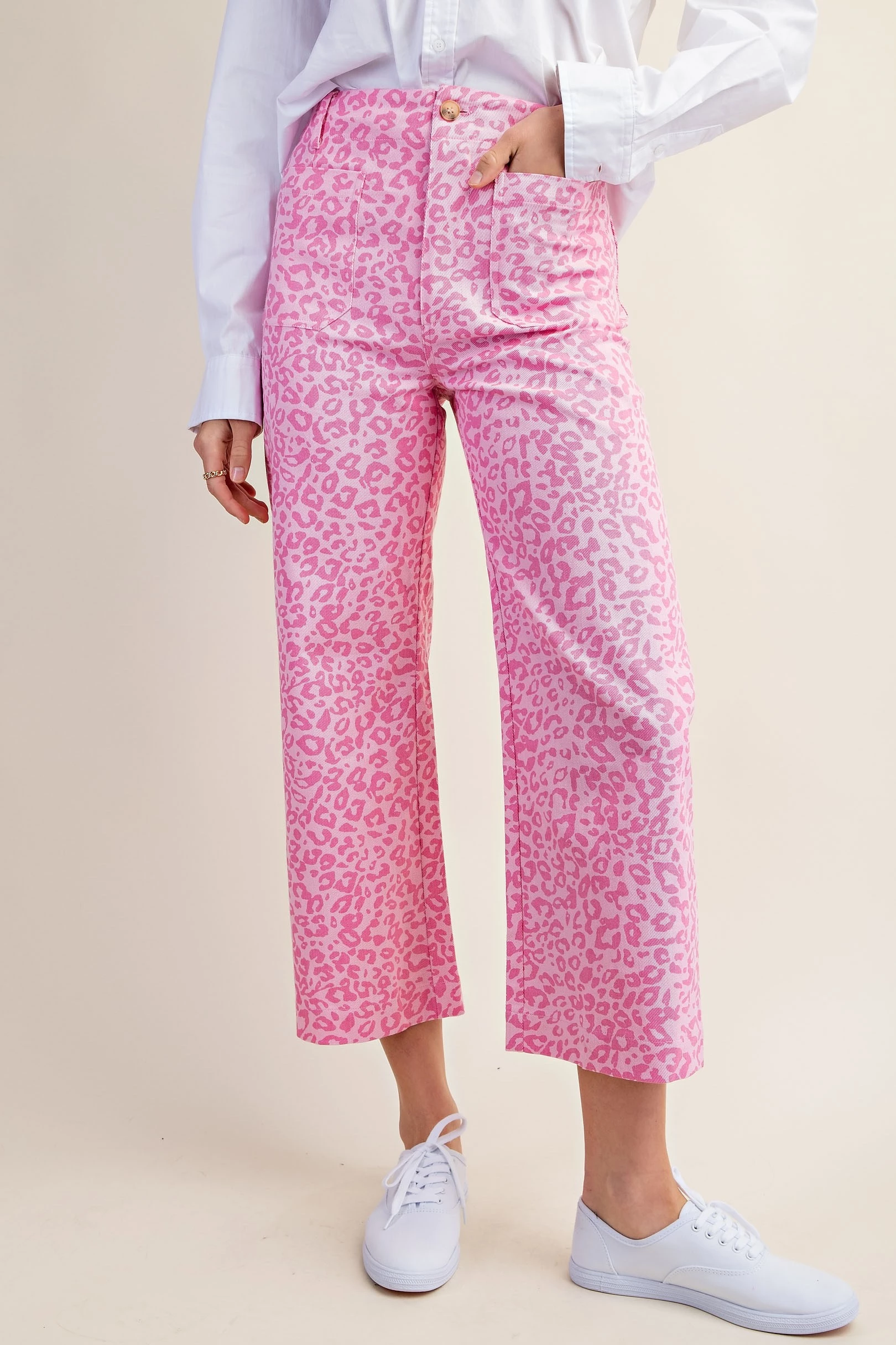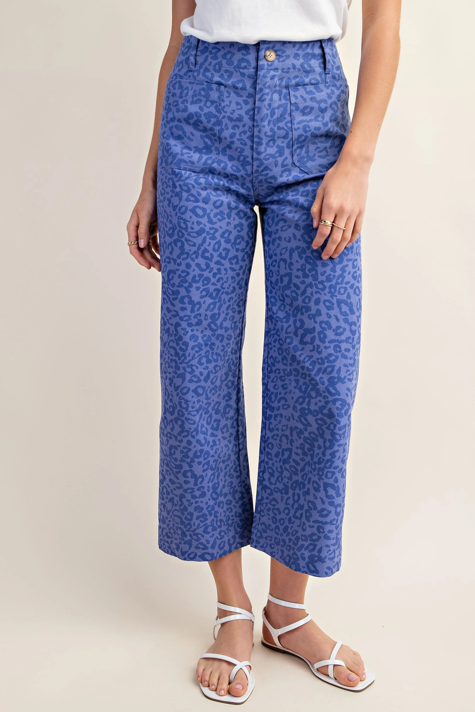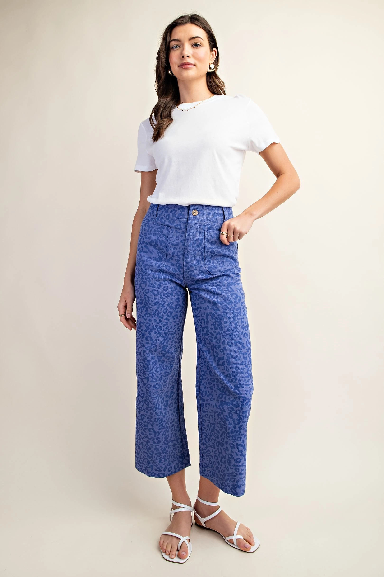 Floral Ankle Cropped Pants in a Stretchy Denim-Like Fabric with Pockets