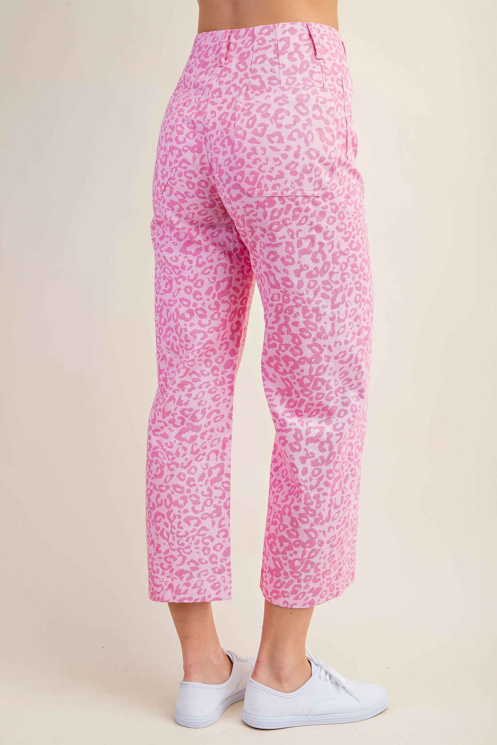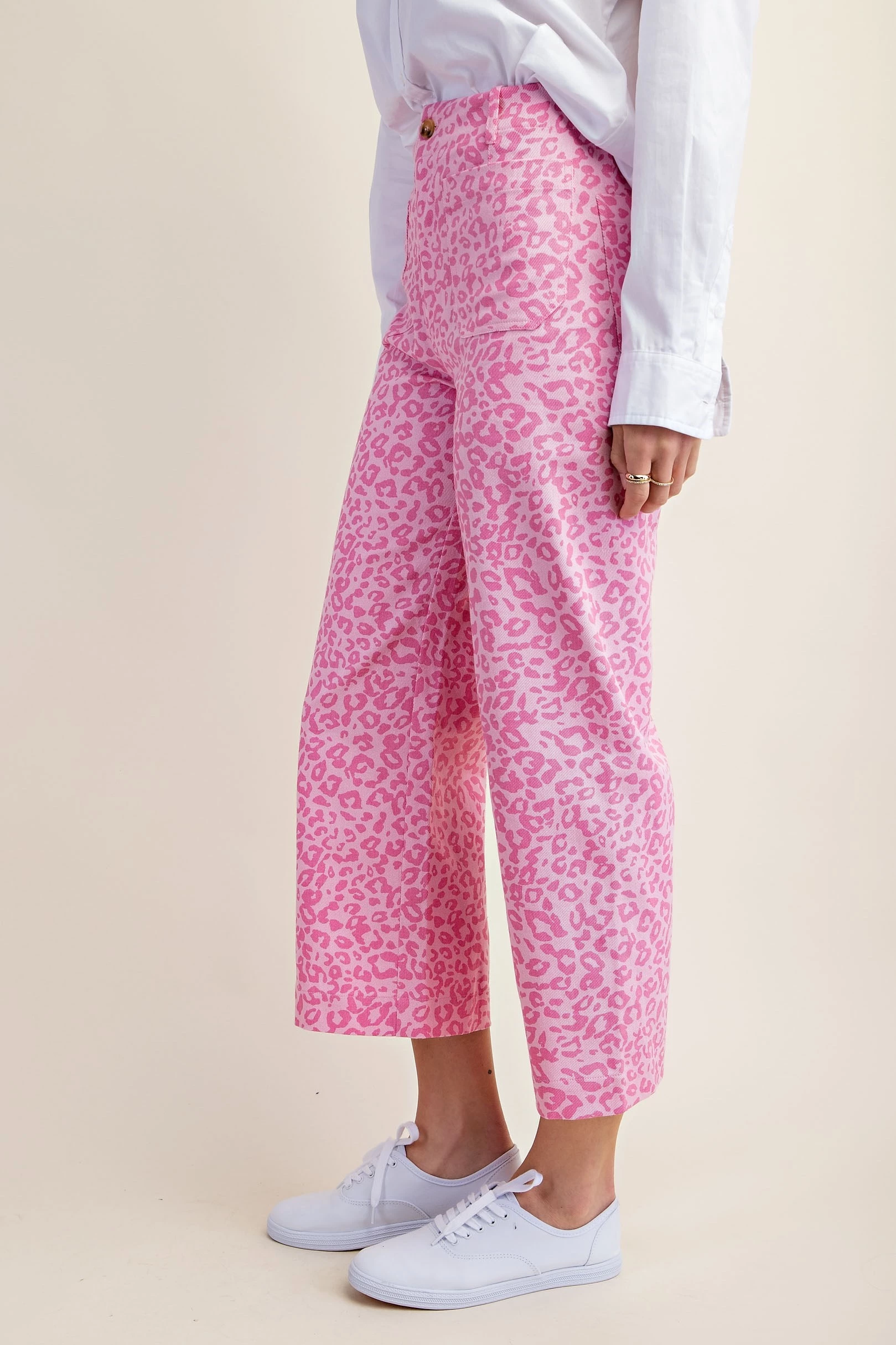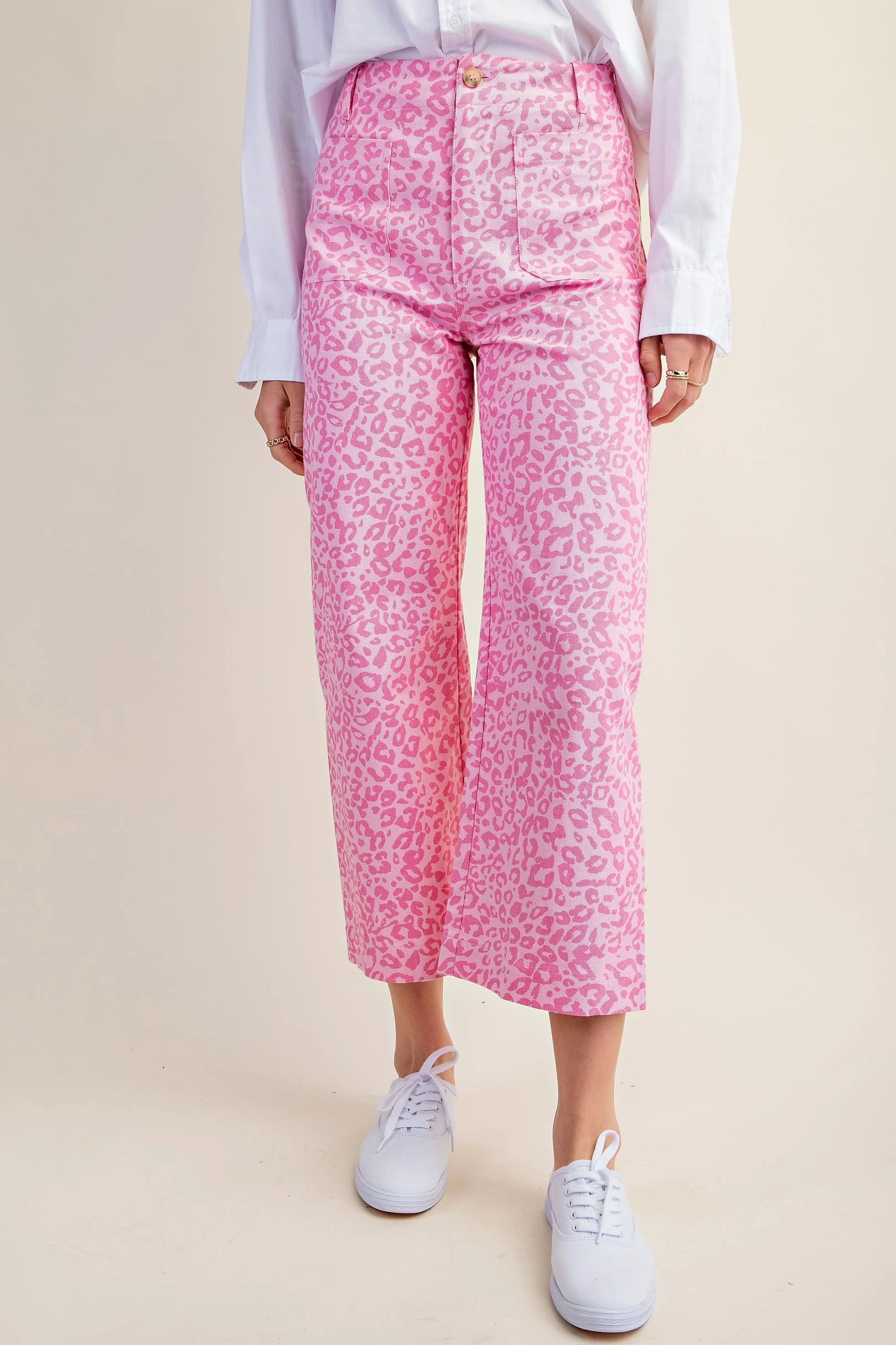 Floral Ankle Cropped Pants in a Stretchy Denim-Like Fabric with Pockets
