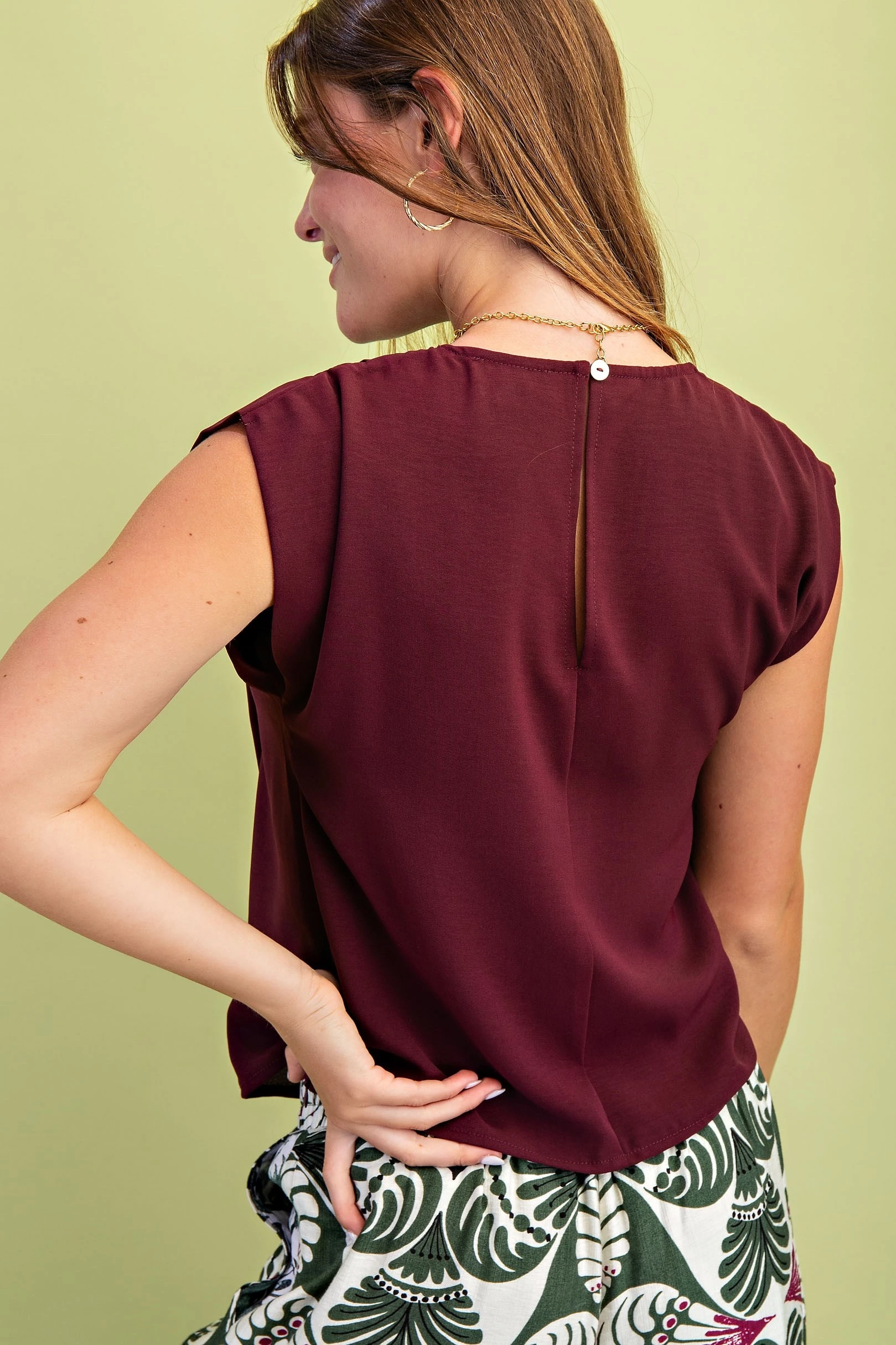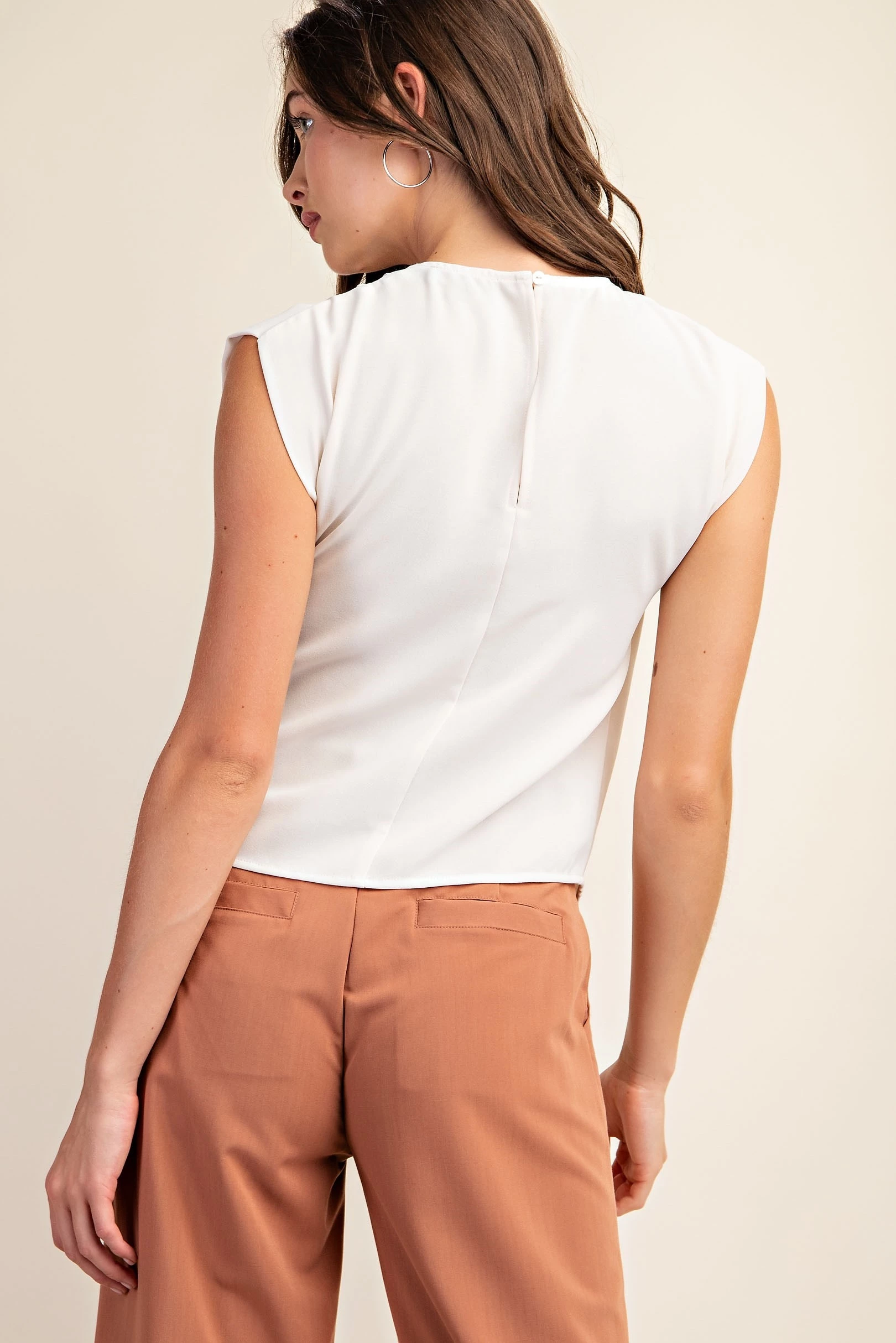 Pleated Draped Blouse with Back Keyhole