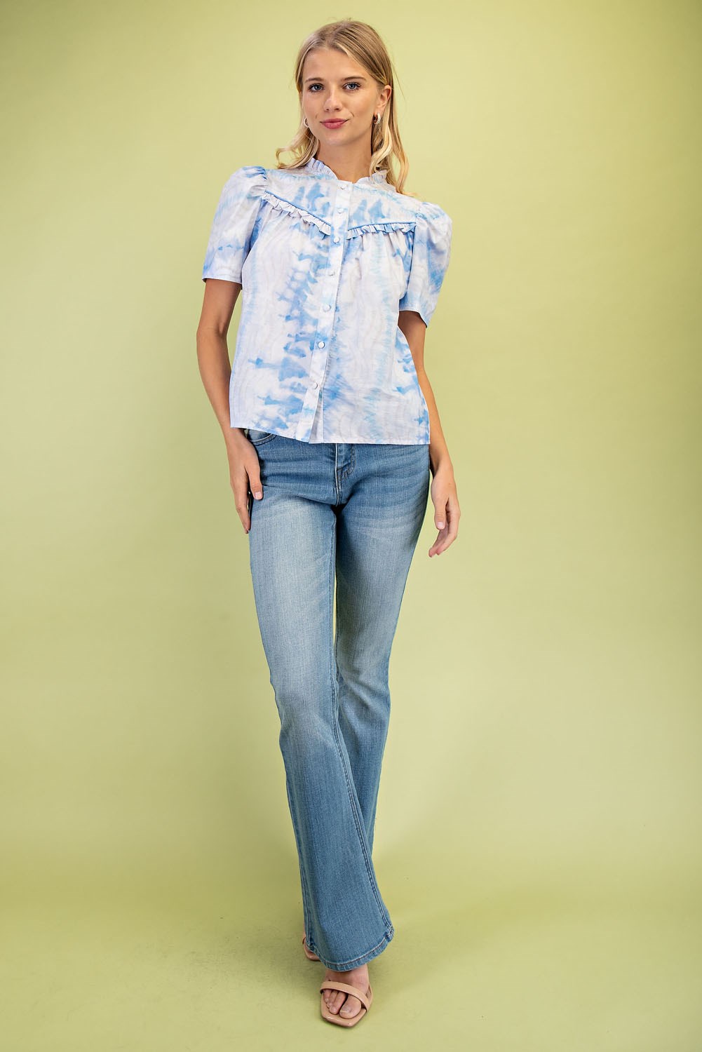 Short Puff Sleeve Top with Binding and Ruffle Details