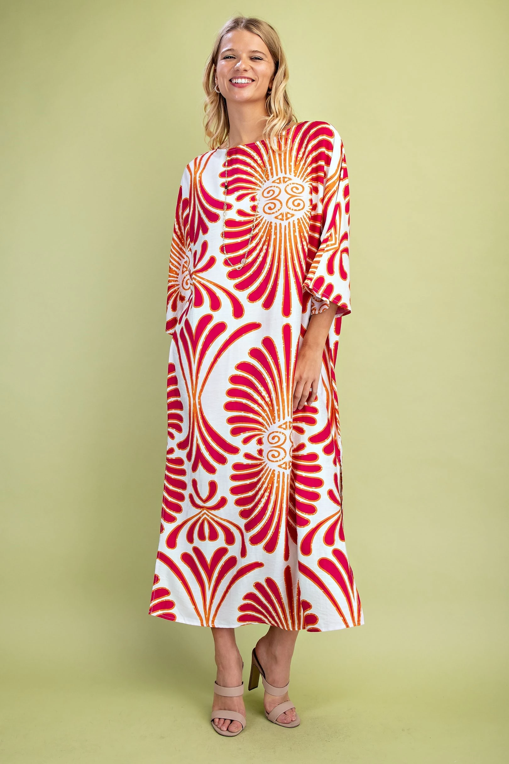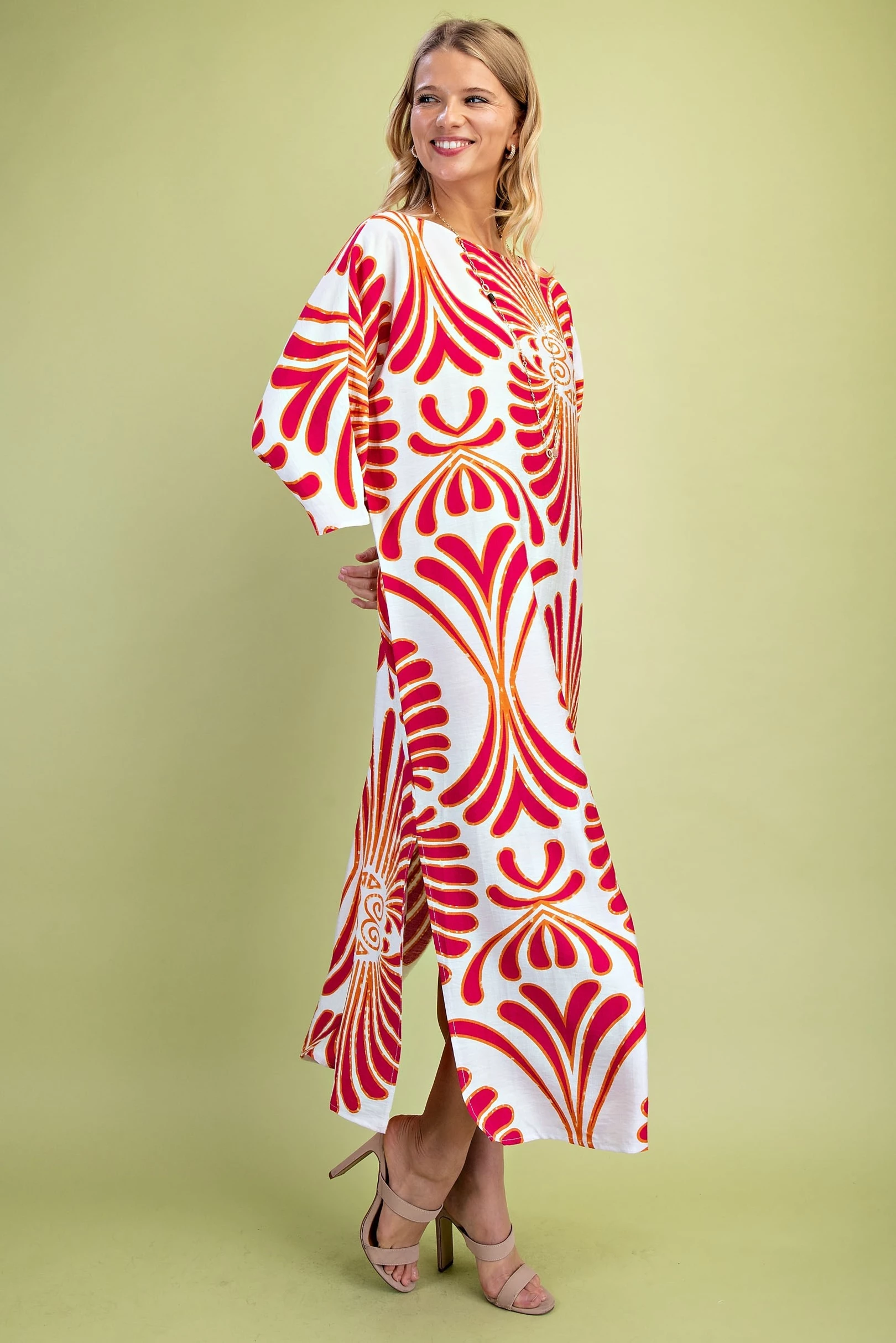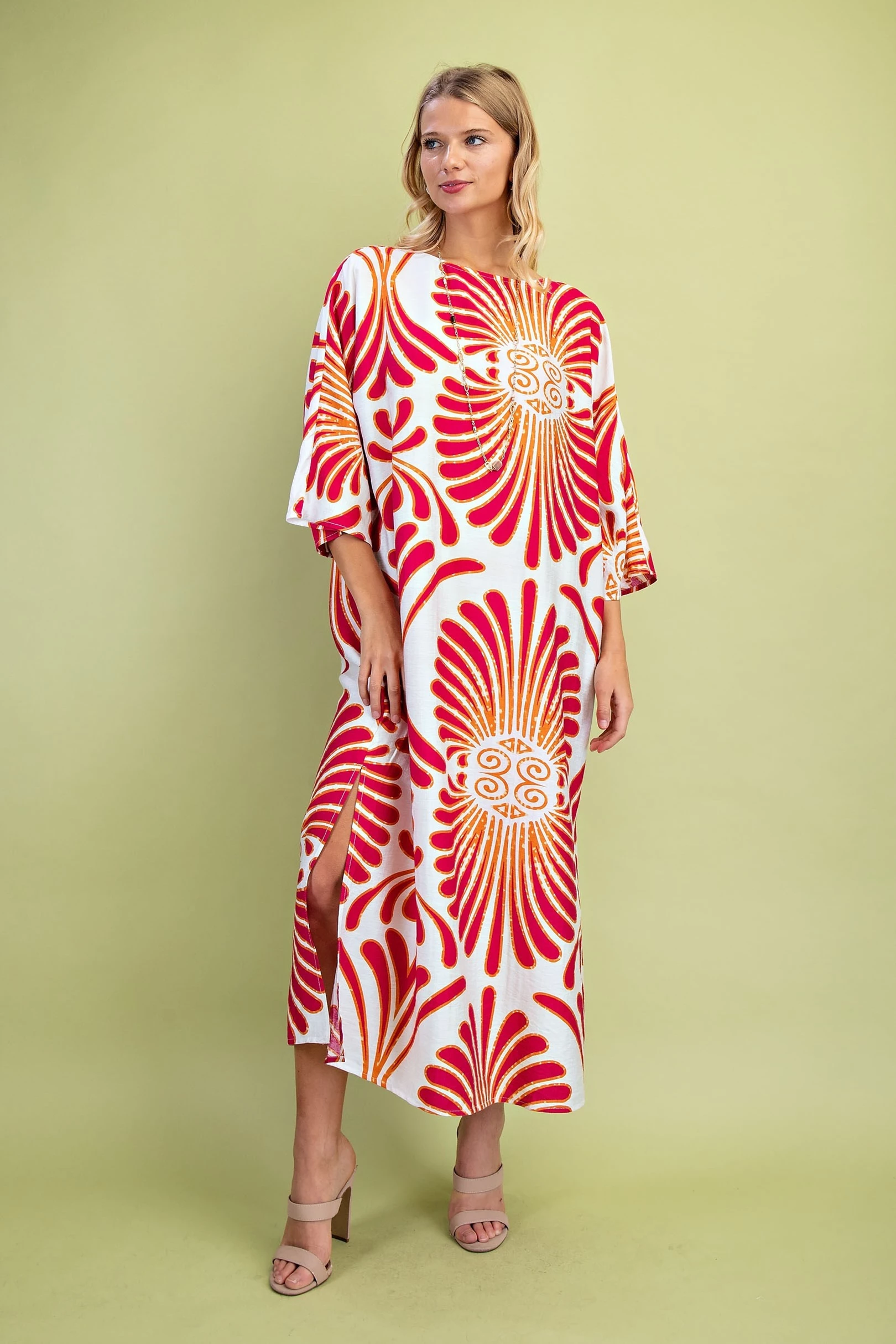 Bold Print Pull Over Boat Neck Dress with Side Slits