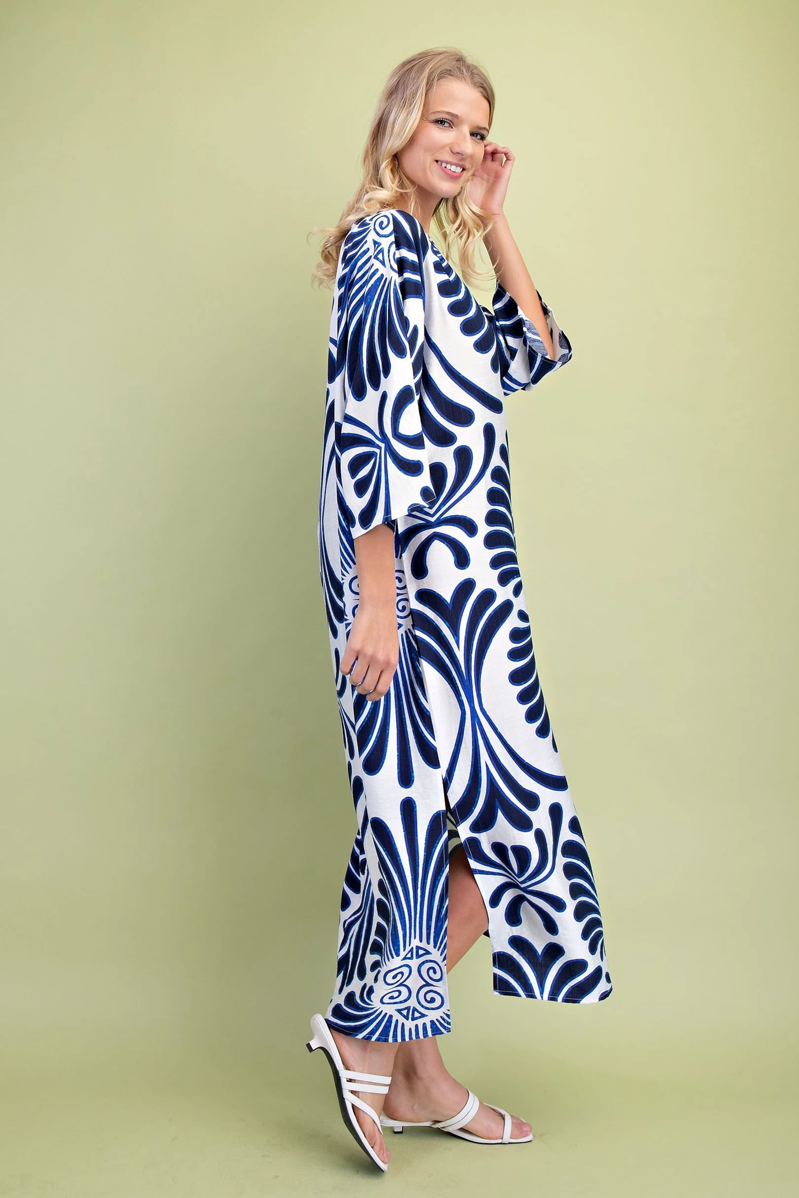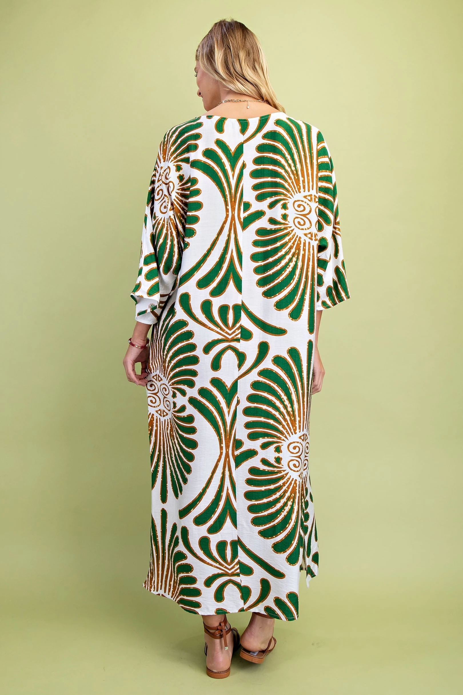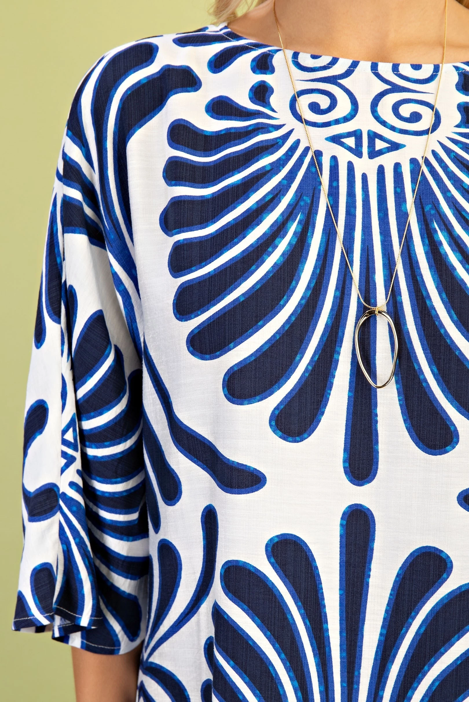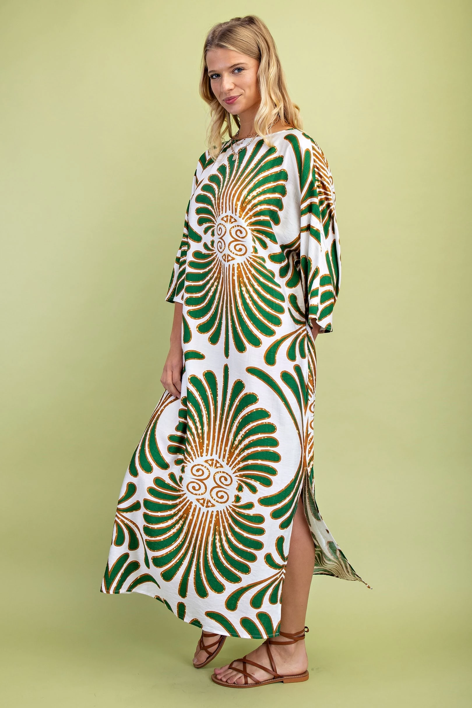 Bold Print Pull Over Boat Neck Dress with Side Slits