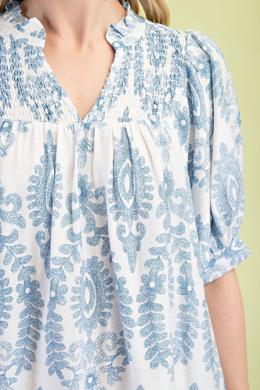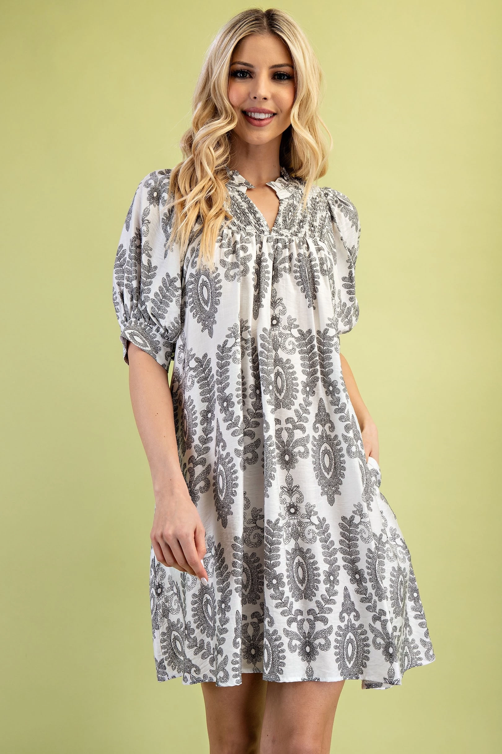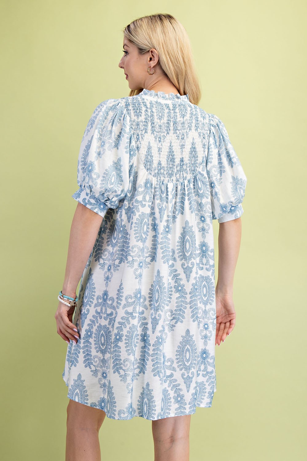 Puff Sleeve Mini Dress with a Smocked Yoke