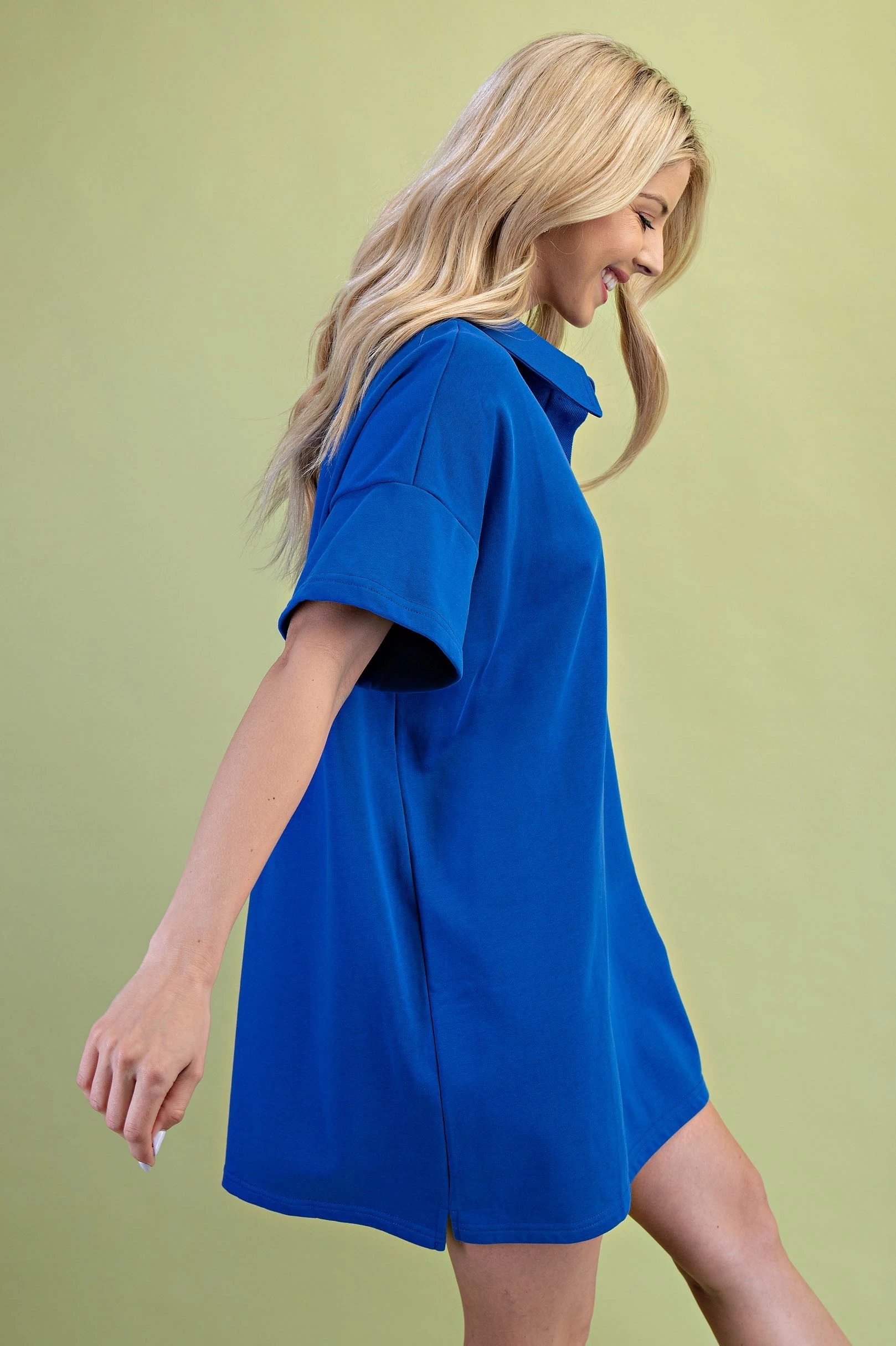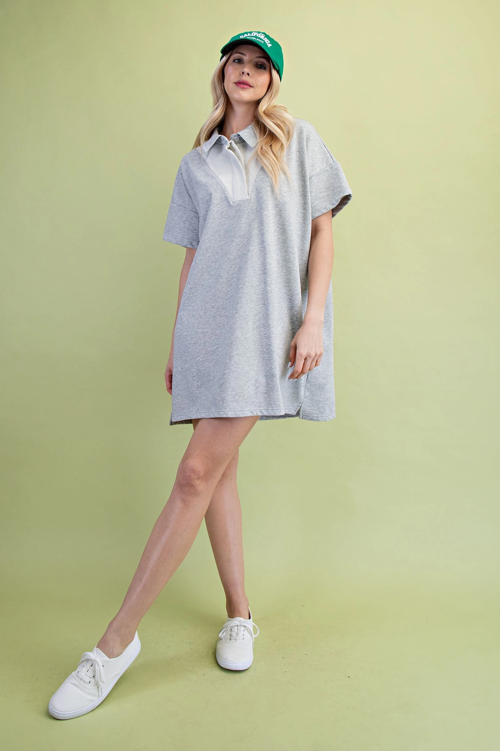 Mixed Jersey Polo Style Mini Dress