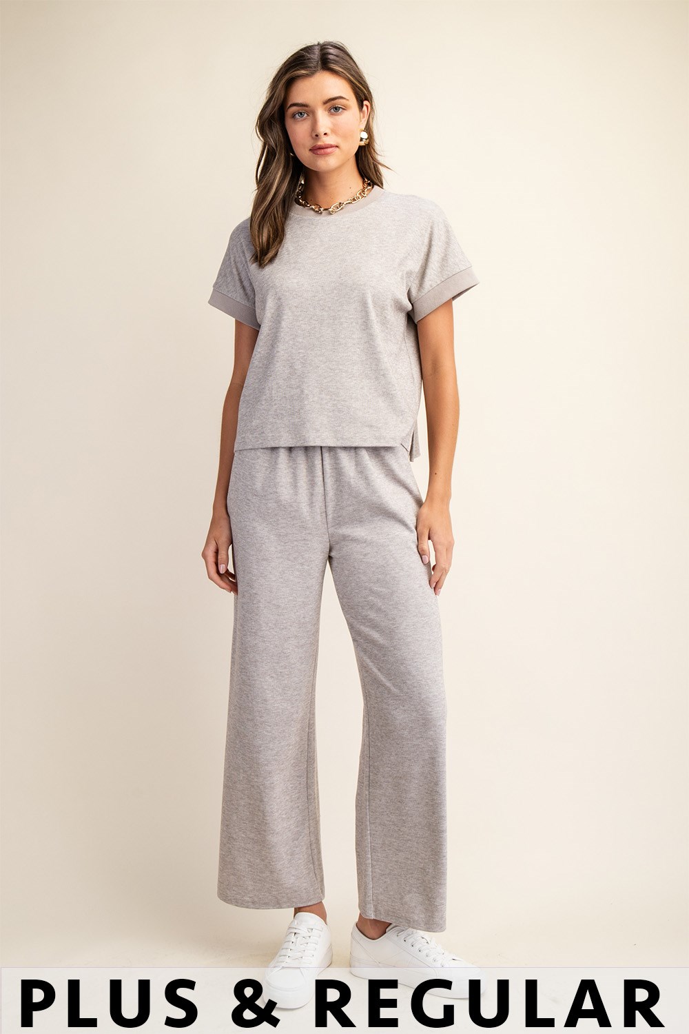 Knit Pants with Elastic Waistband and Side Pockets