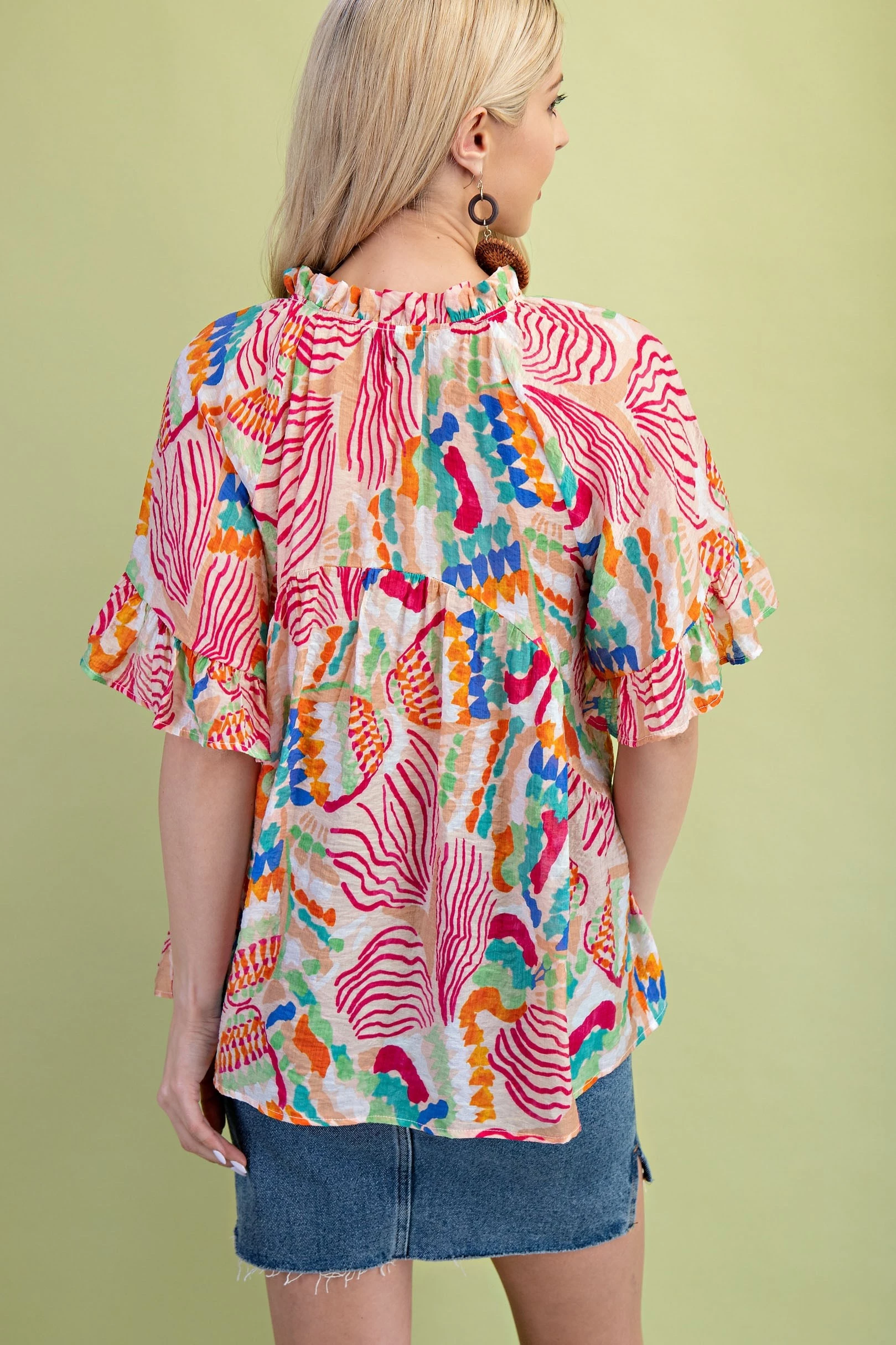 Twist Front Elastic Waist Floral Midi Dress with Full Lining and Key Hole