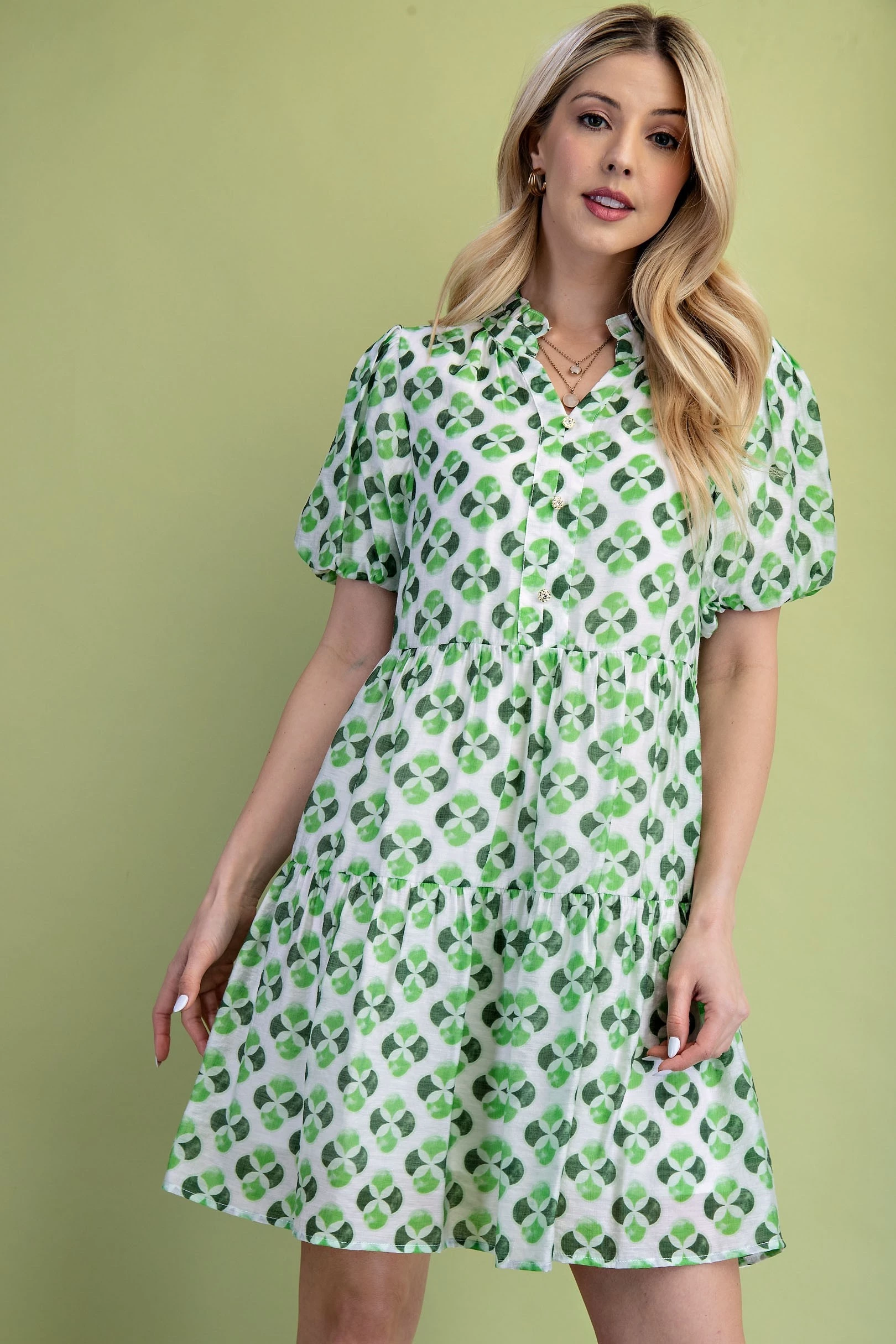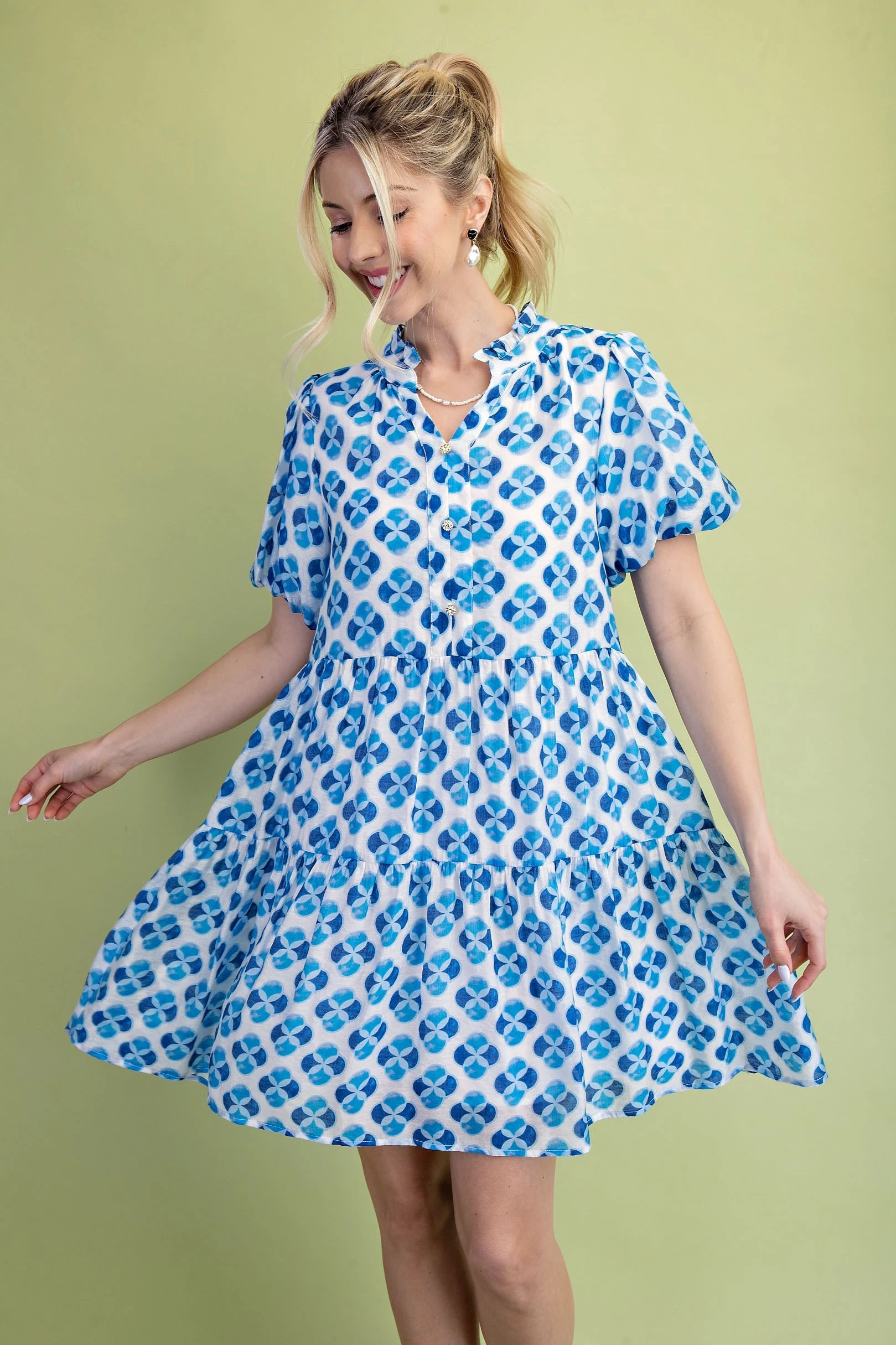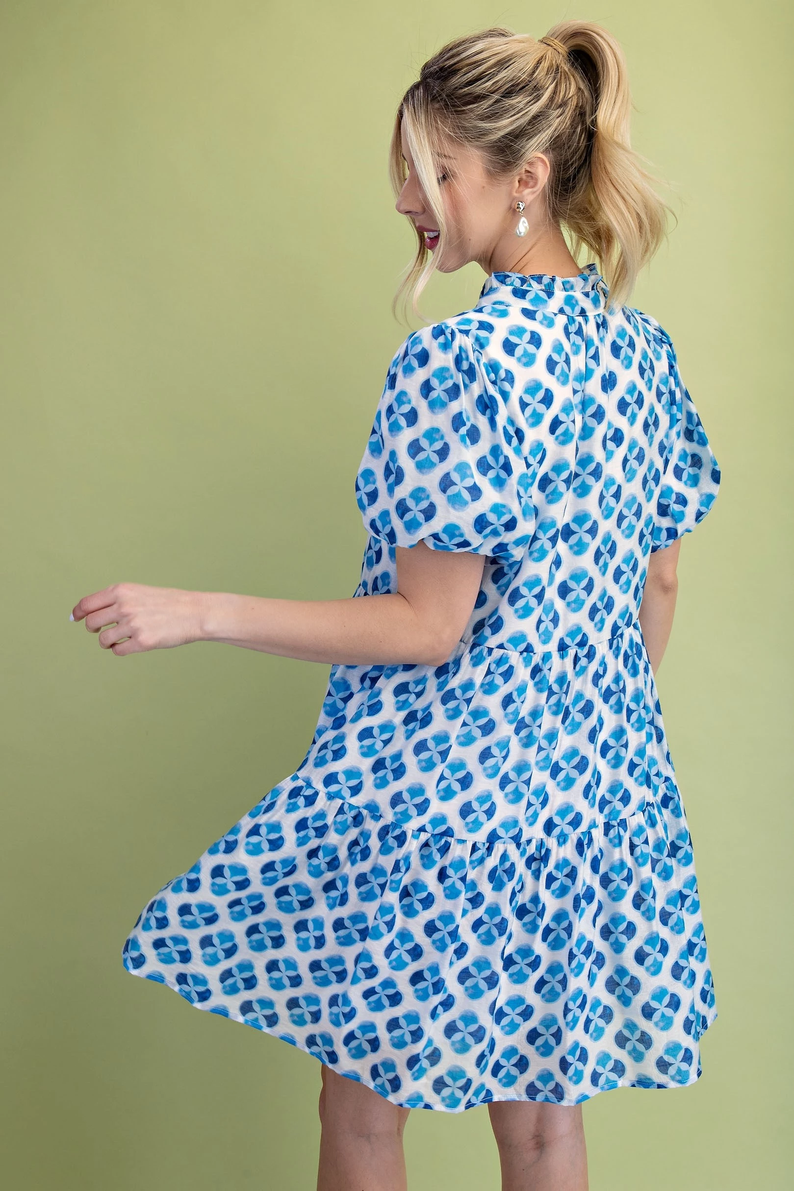 Puff Sleeve Mini Dress with a Ruffled Collar and Decorative Buttons