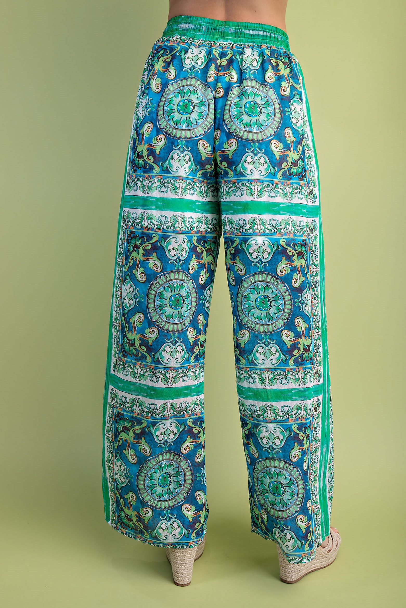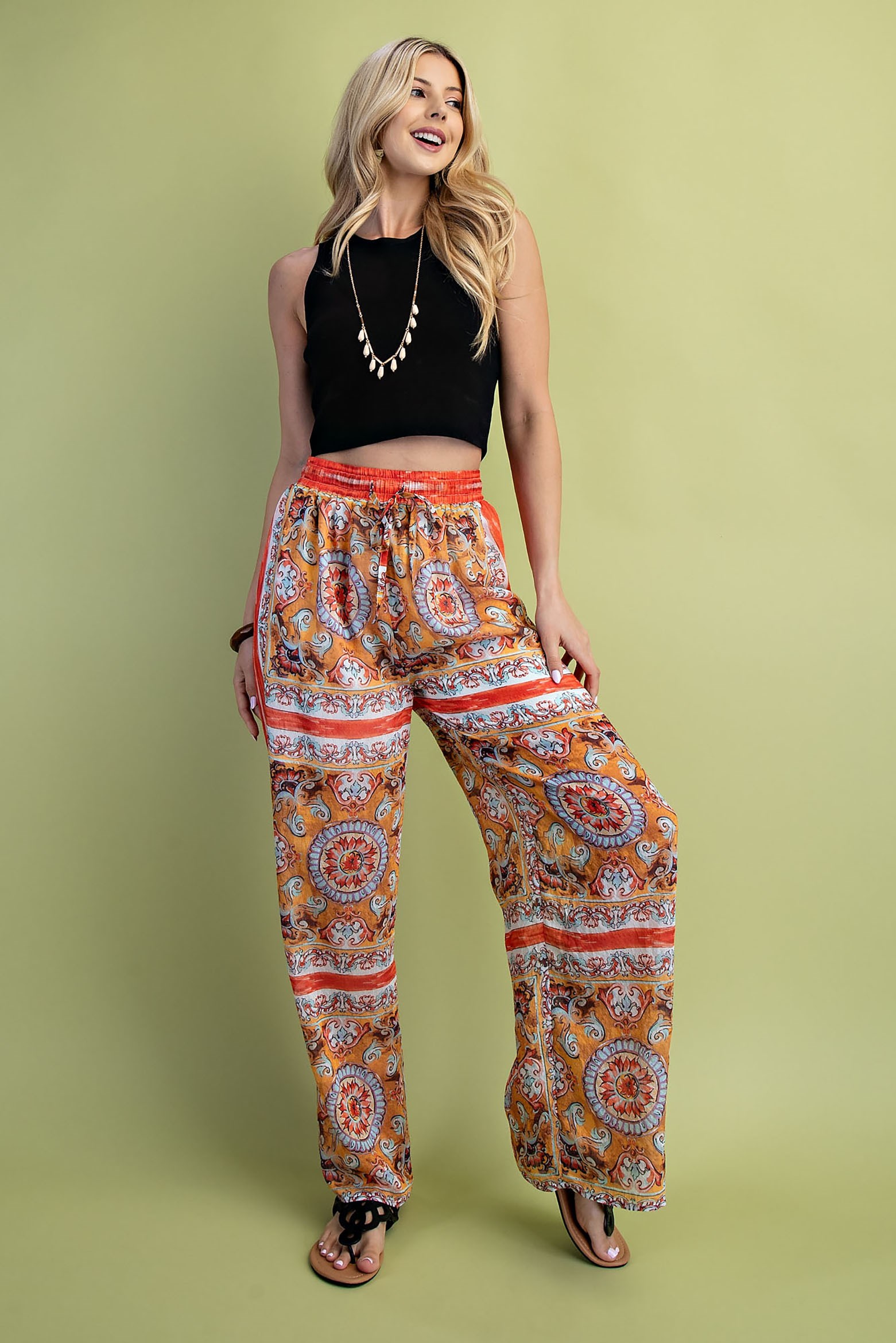 Scarf Print Relaxed Fit Pants with and an Elastic Waist and Drawstring and Shorts Lining