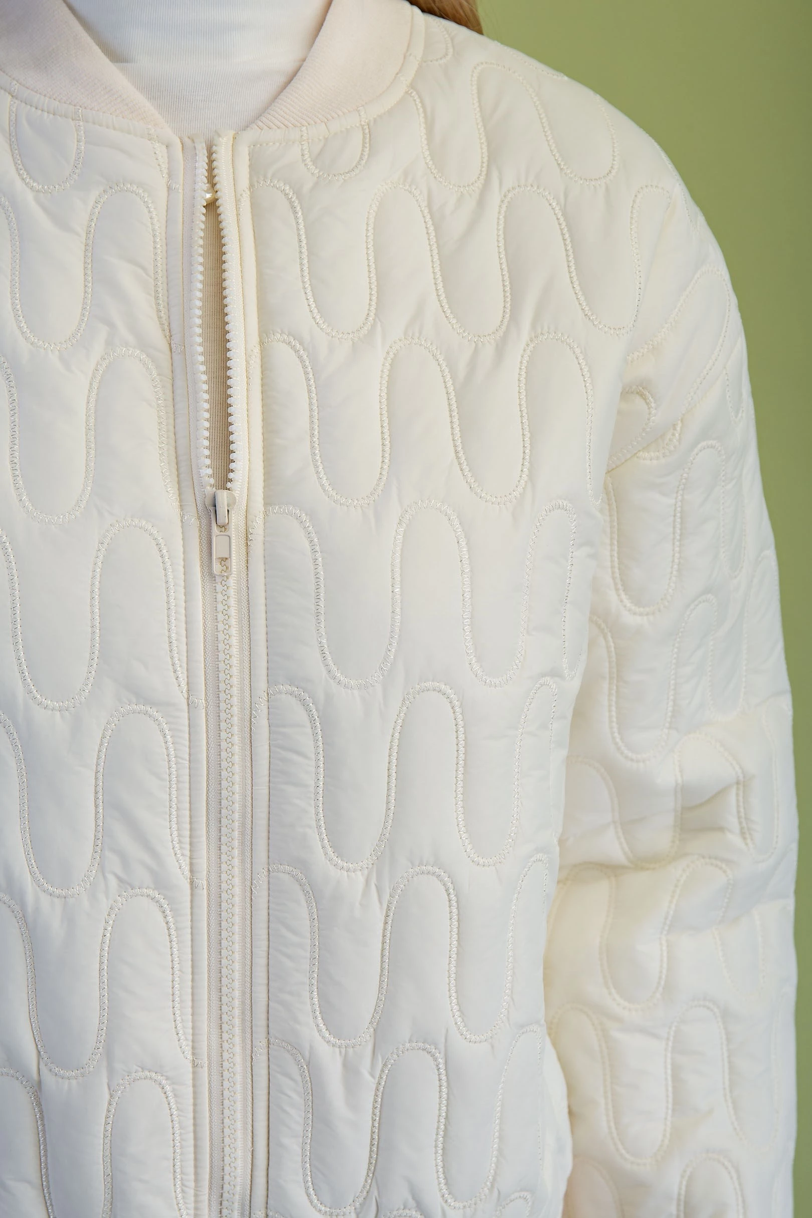 Quilted Puffer Bomber Jacket with a Front Zip