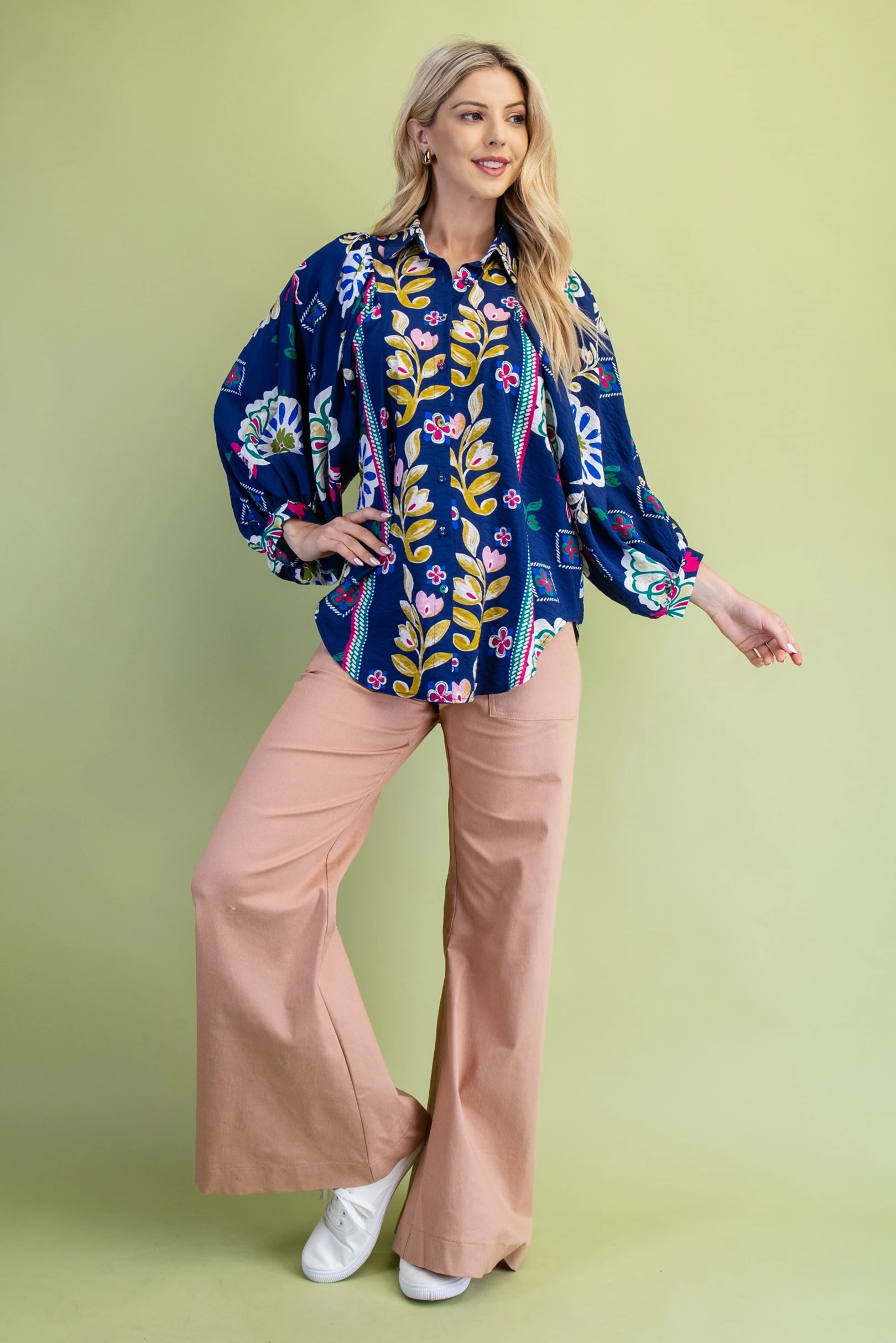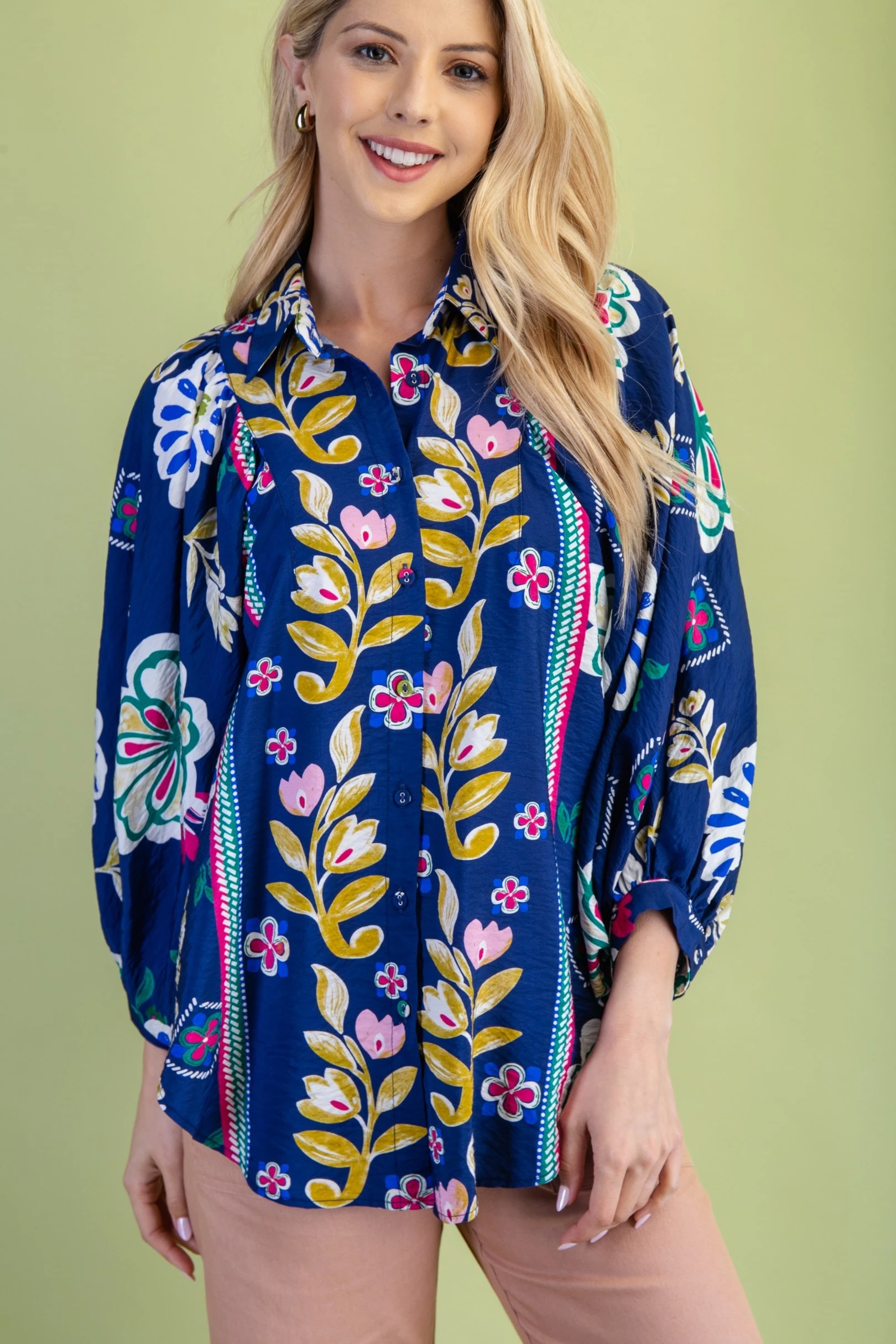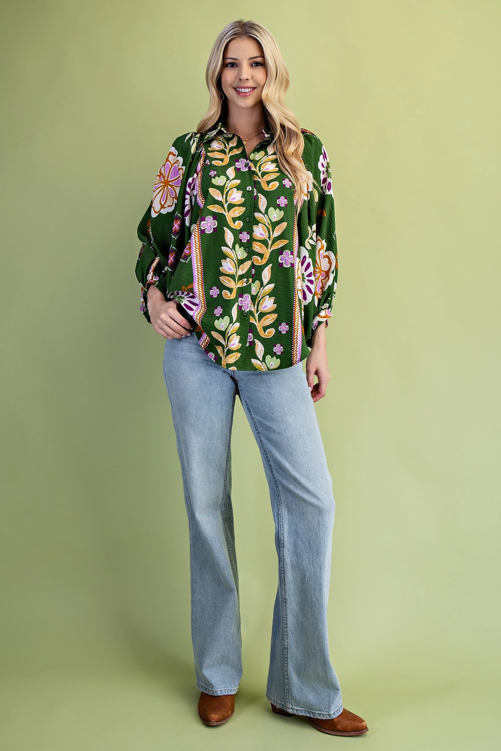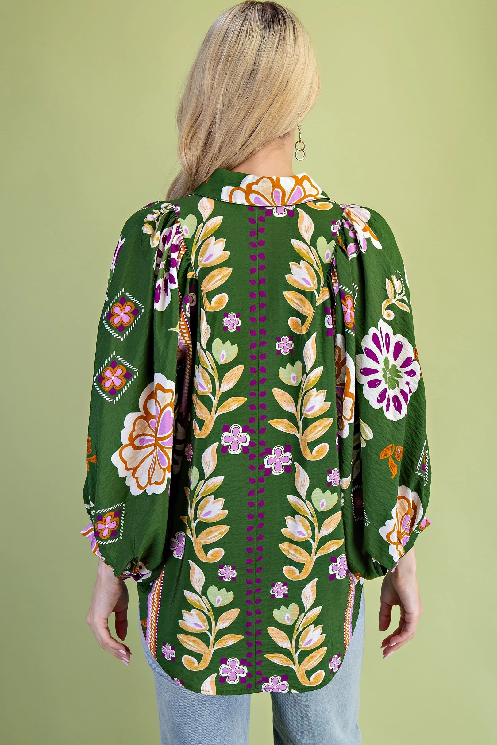 Floral Print Loose Fit Button Down Shirt