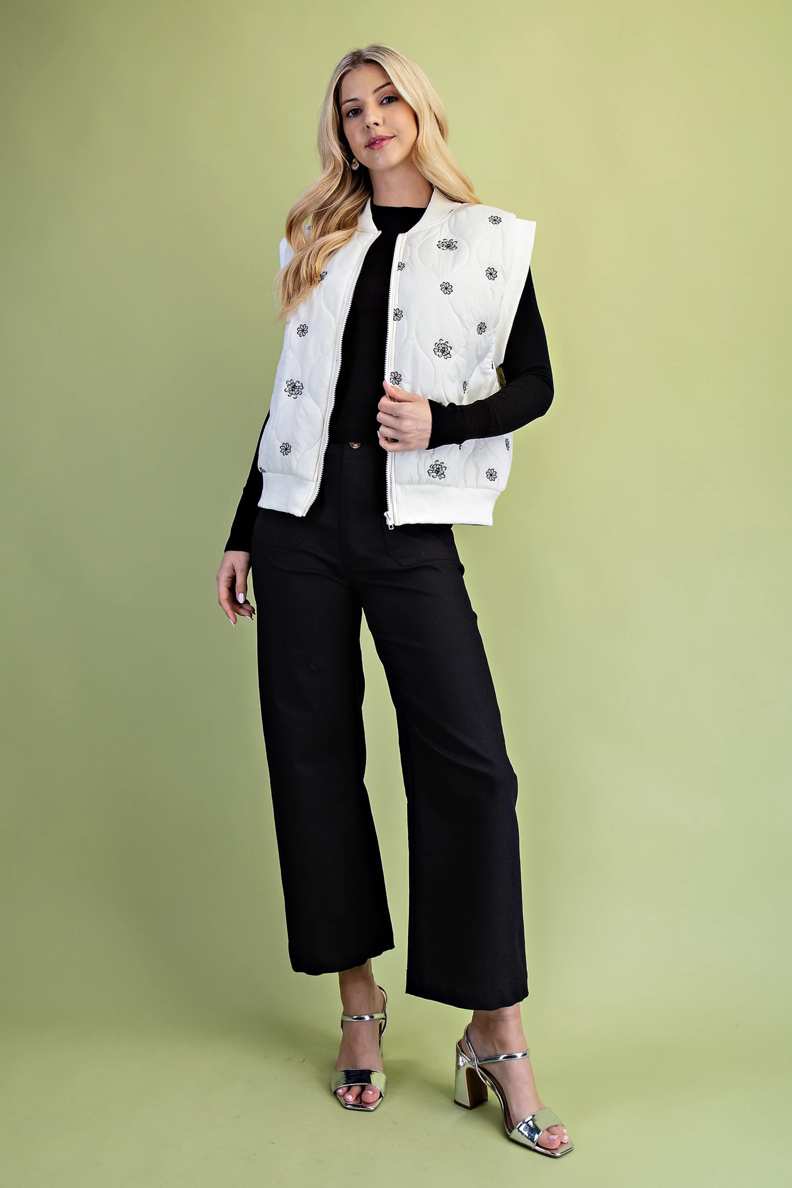 Crochet and Embroidered Relaxed Fit Pants with a Scalloped Hem. Shorts Lining Inside