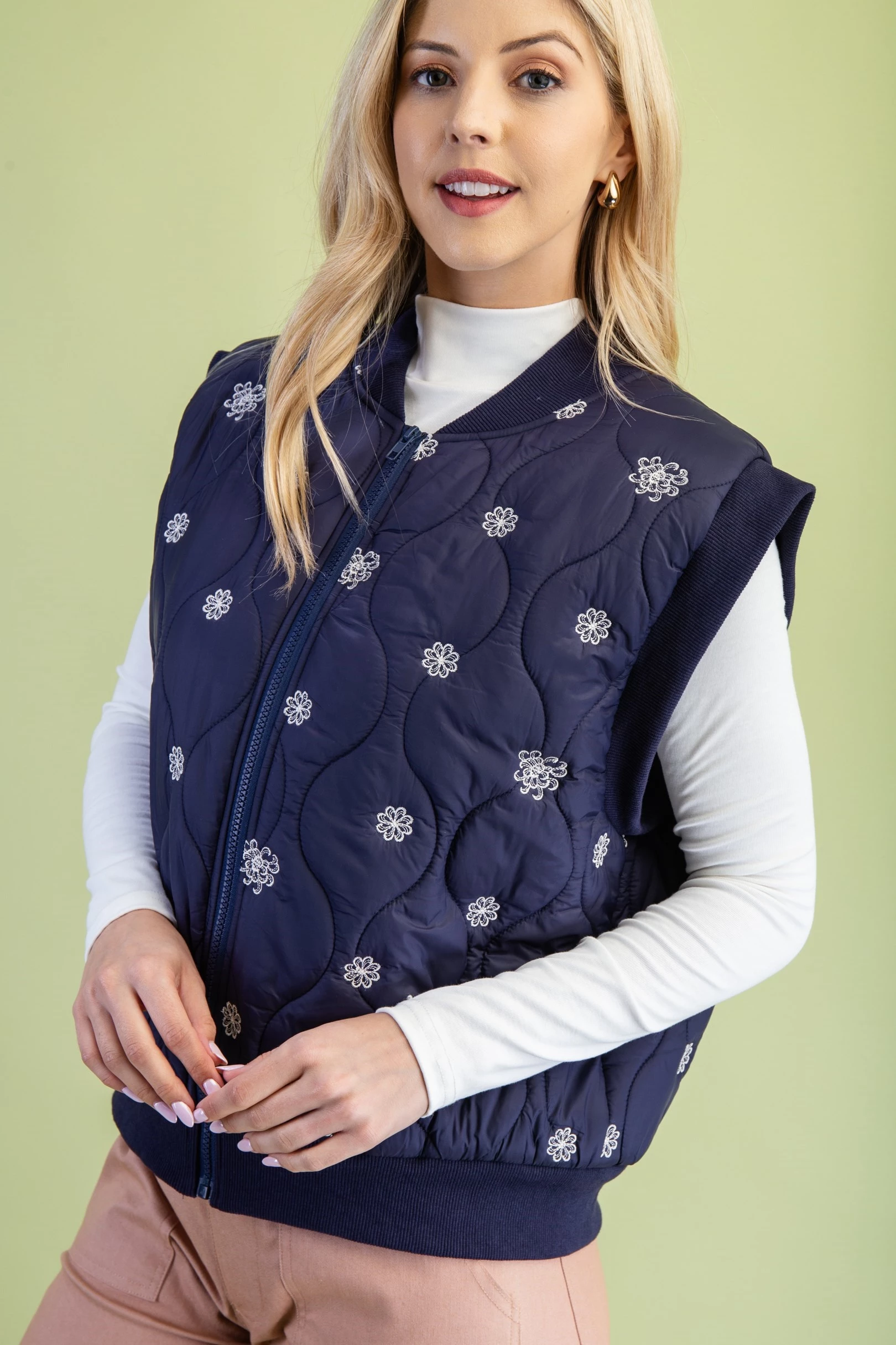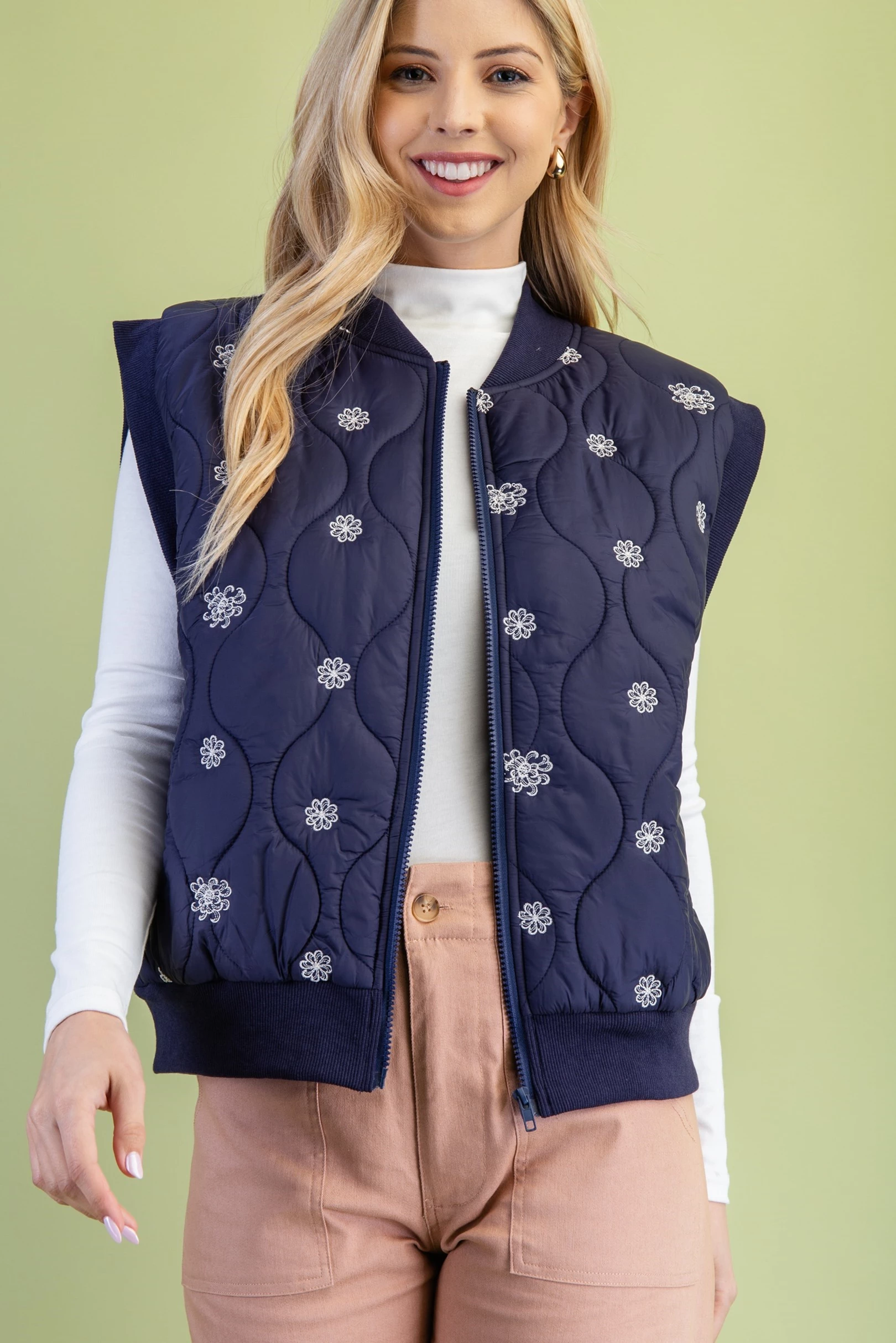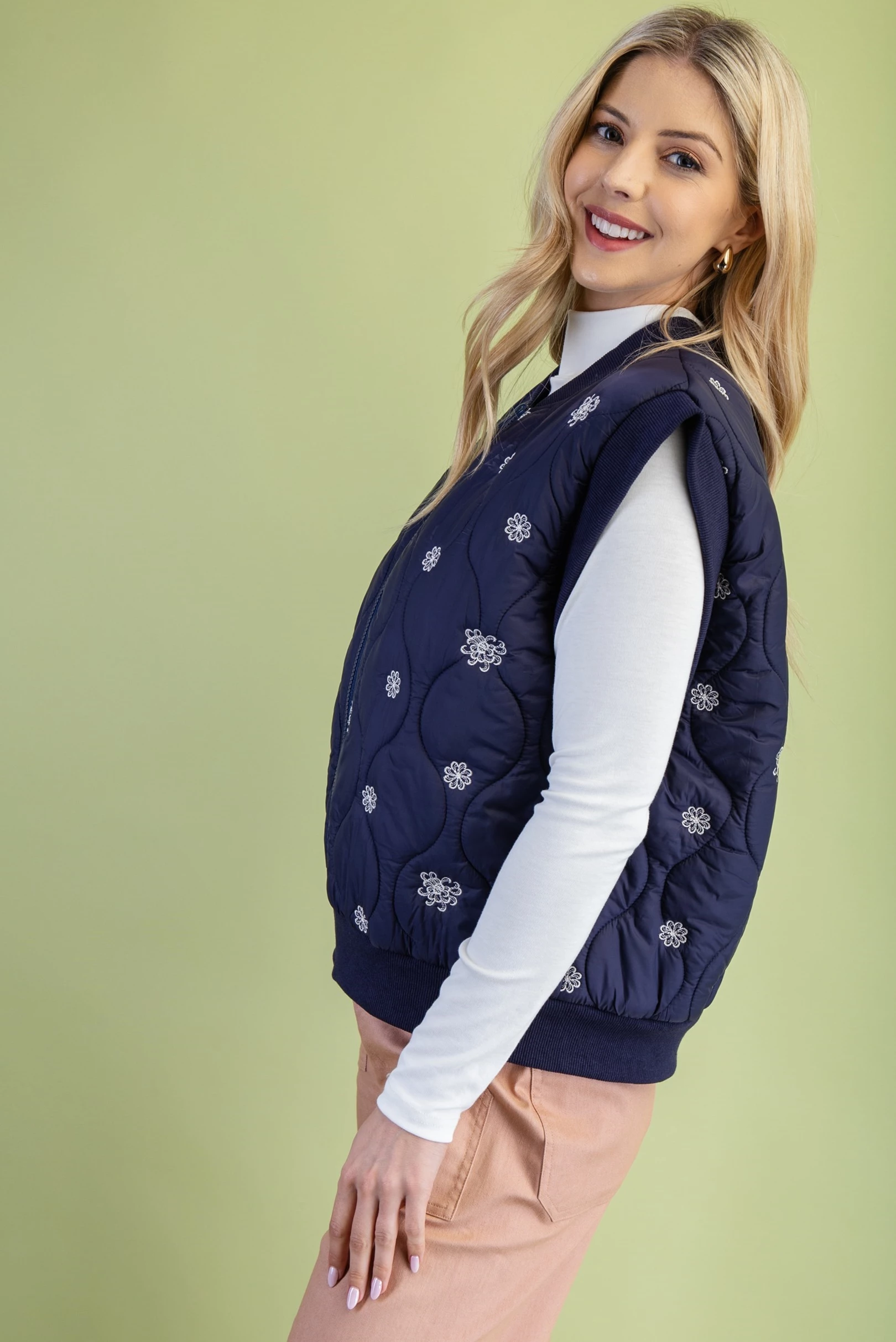 Crochet and Embroidered Short Sleeve Top with a Scalloped Hem. The Top is Lined