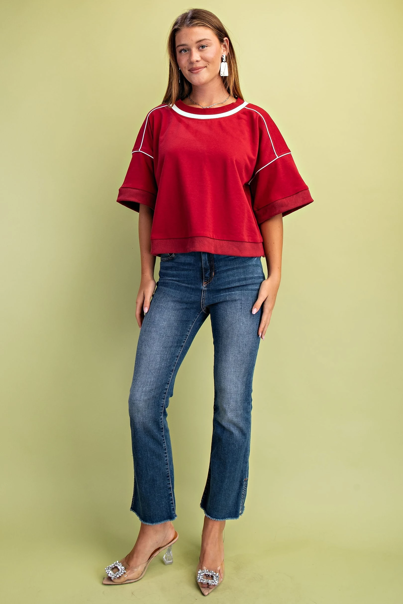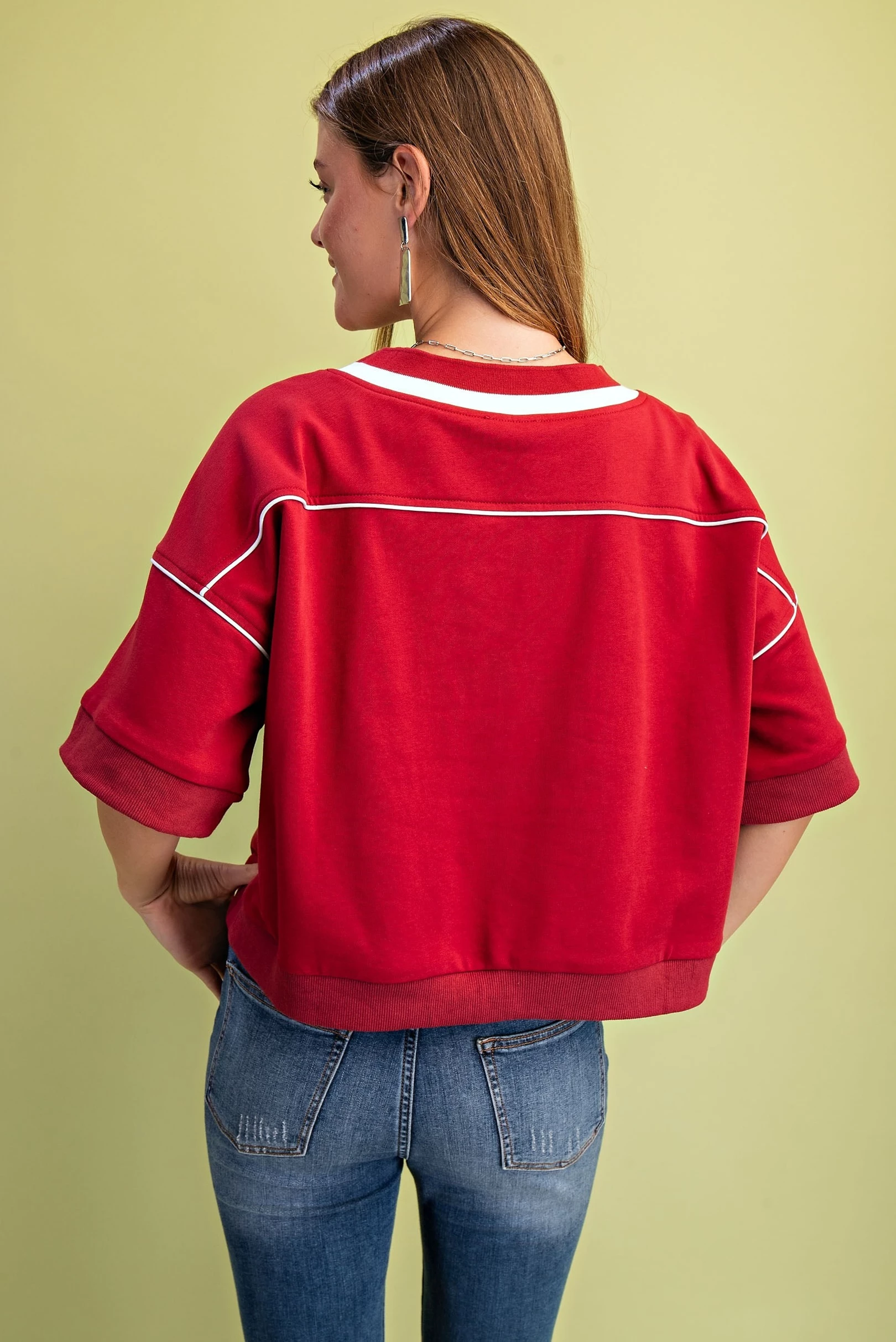 1/2 Sleeve Boxy Fit Sweatshirt with a Contrasting Stripe and Piping Details