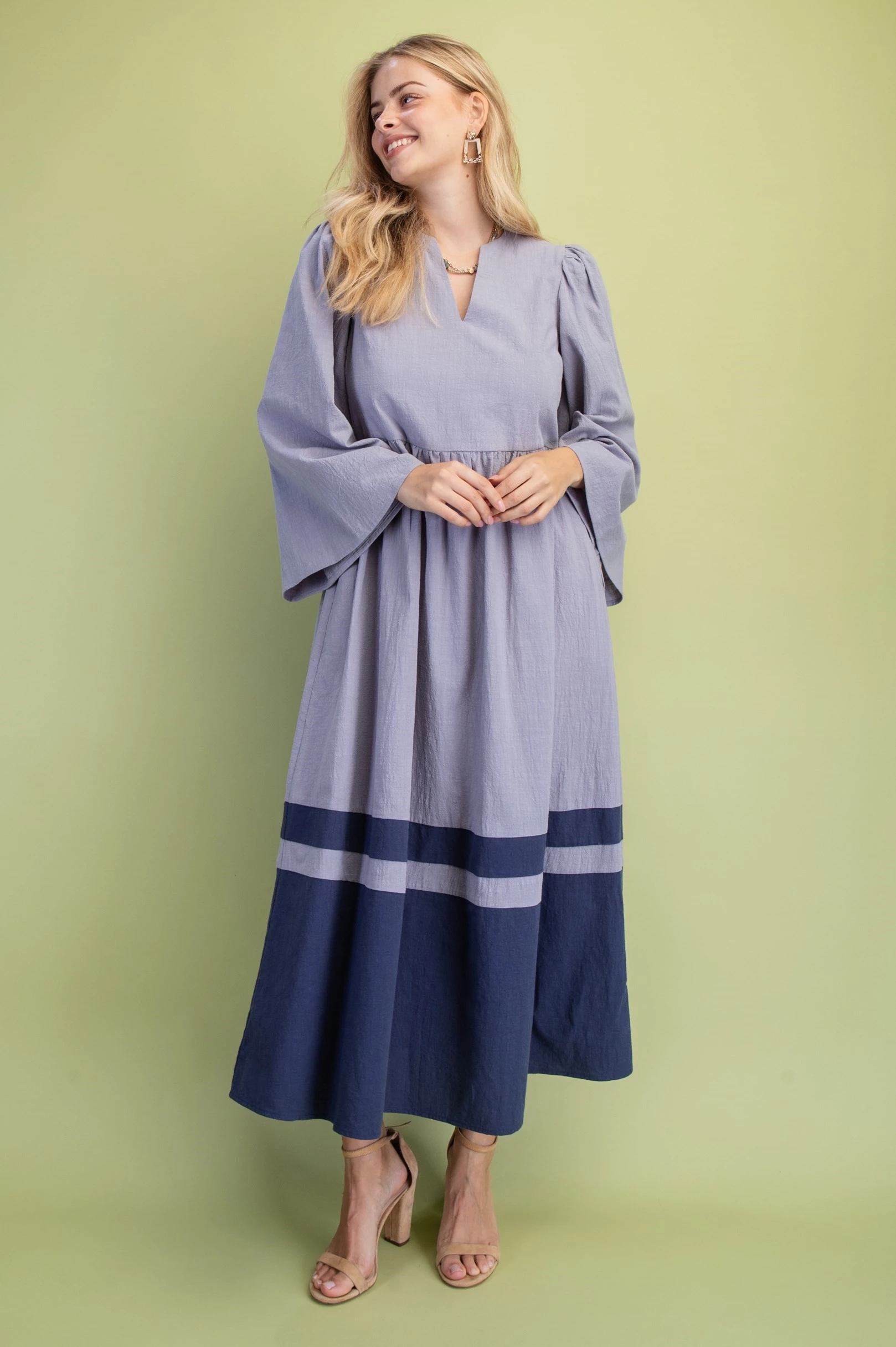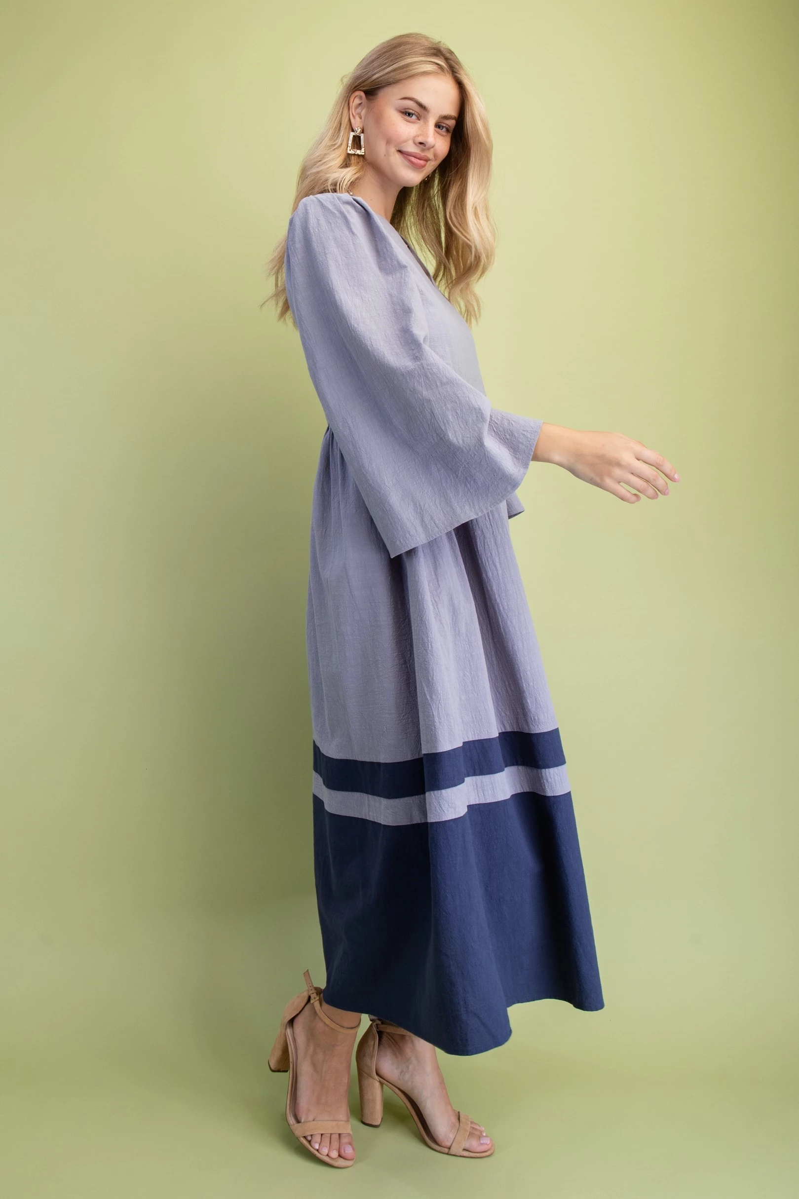 Tassel Neck Tie Bell Sleeve Dress with Rosettes on Front Waist and Ruffle Details
