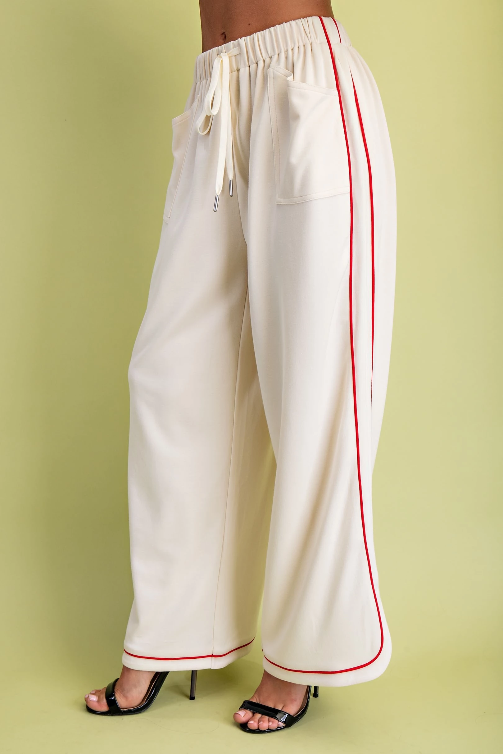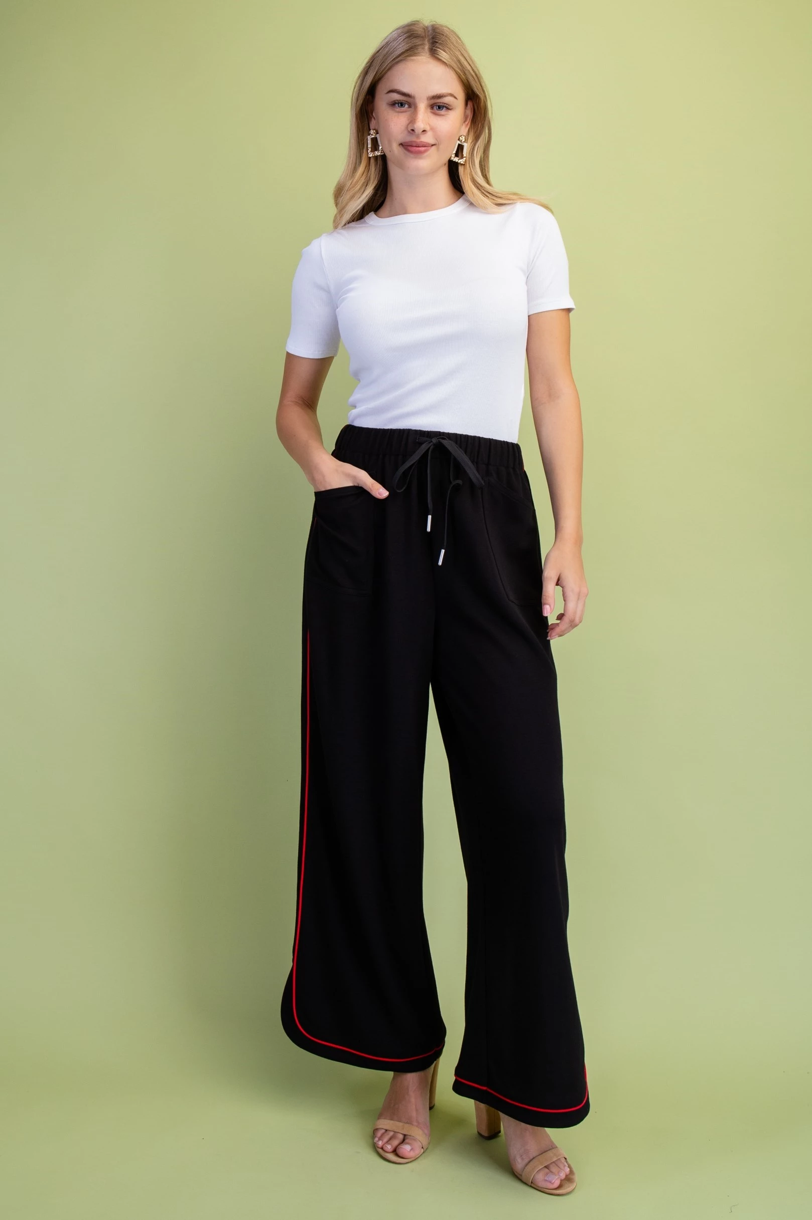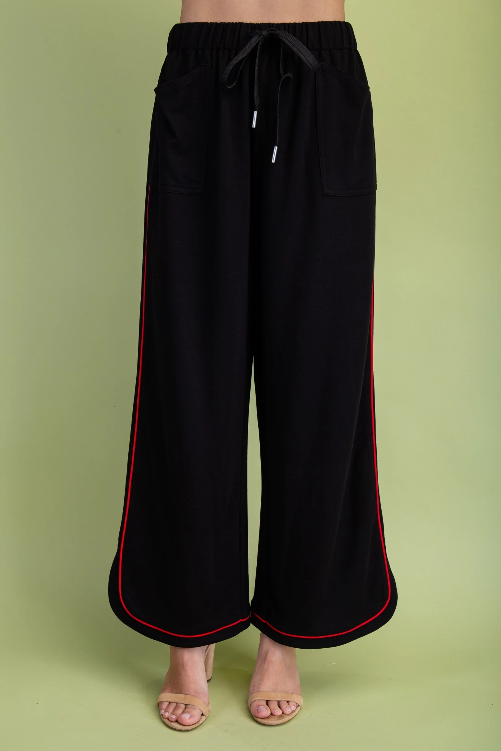 Ankle Cropped Summer Pants in a Stretchy Denim-Like Fabric with Pockets