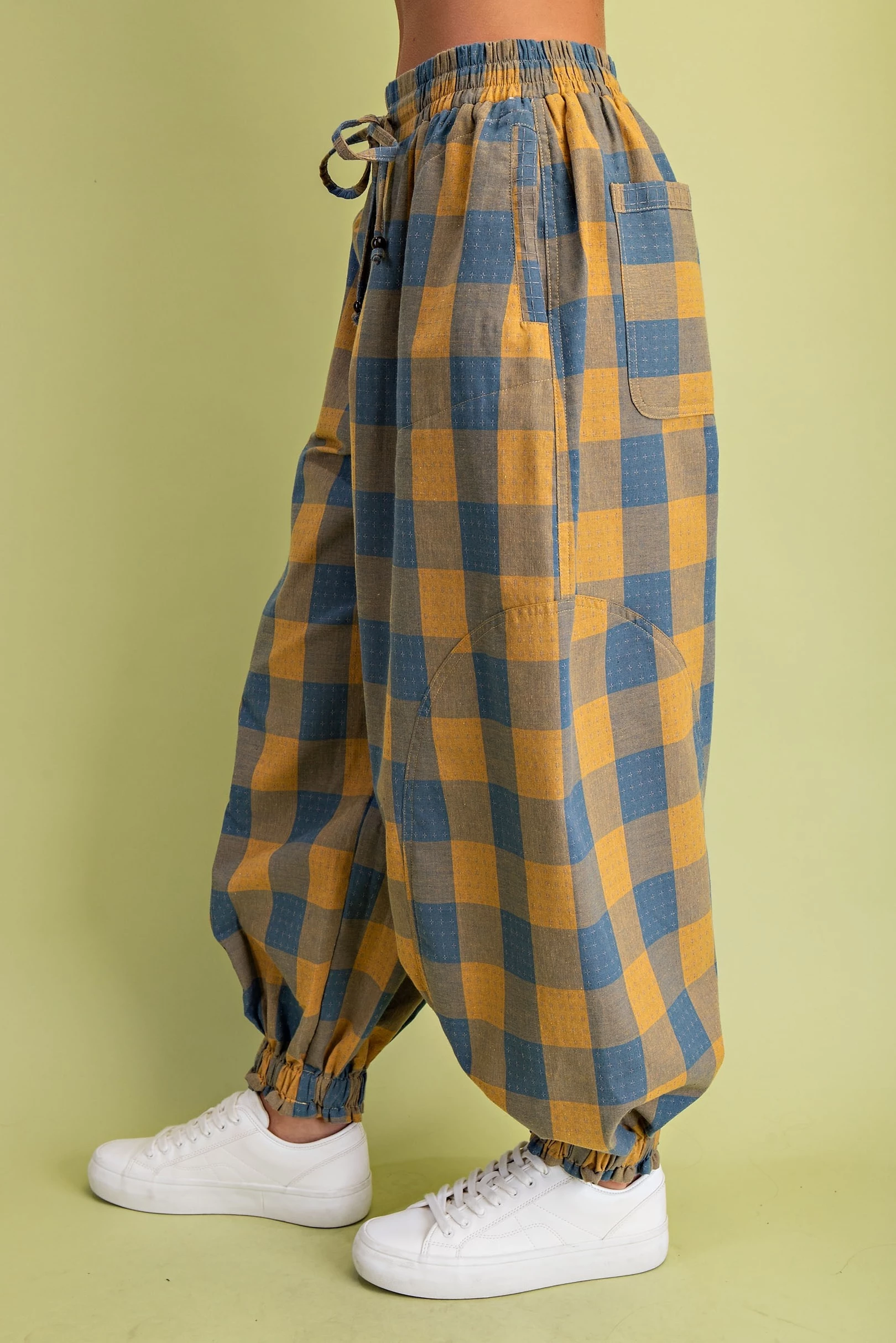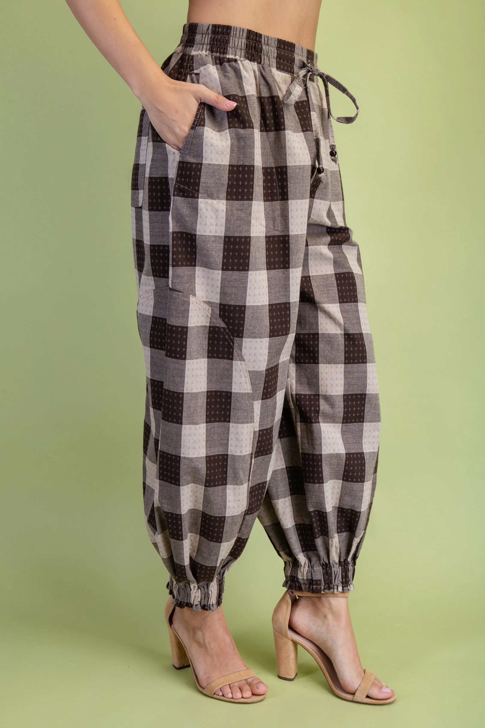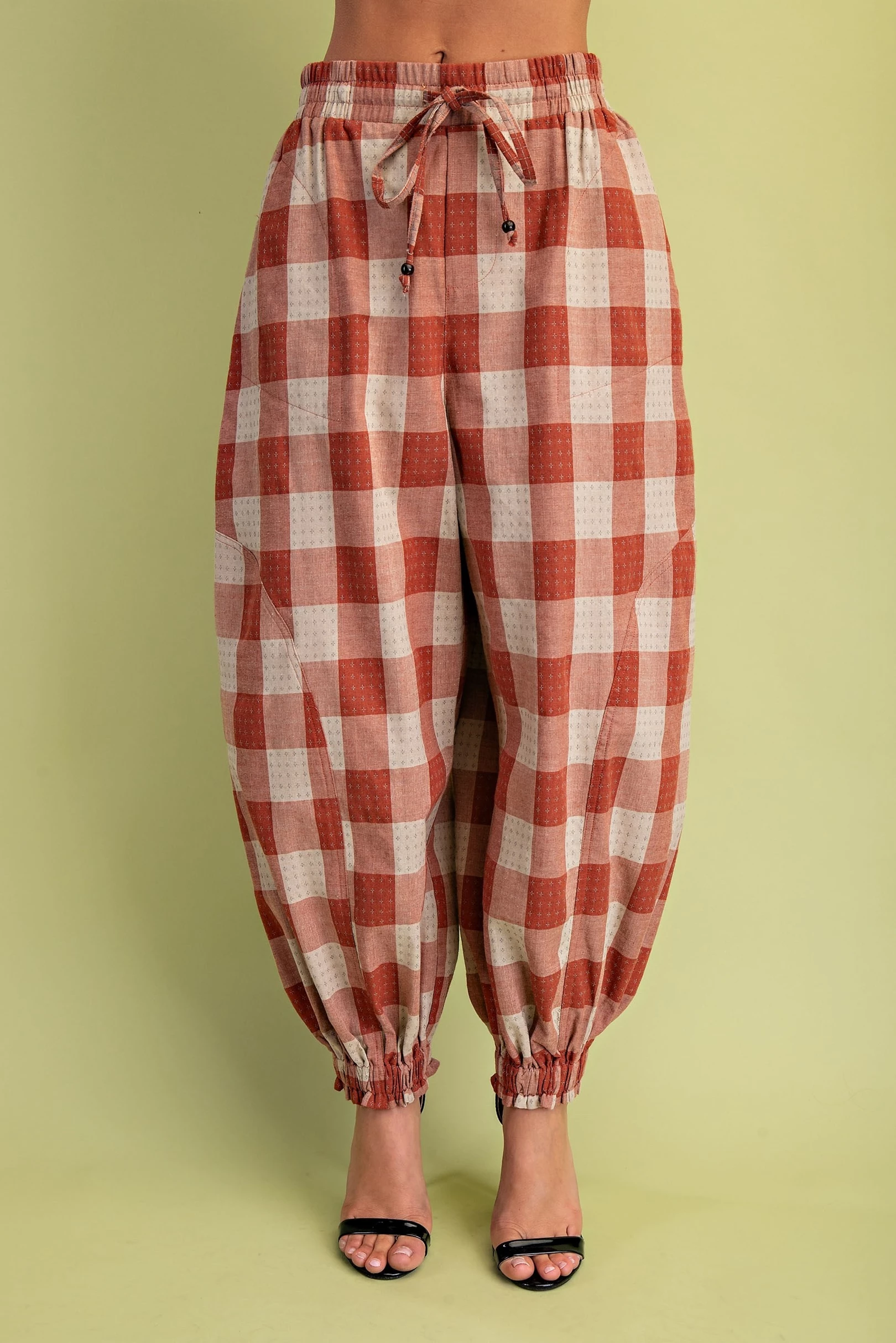 Check Print Balloon Style Pants with an Elasticized Waist