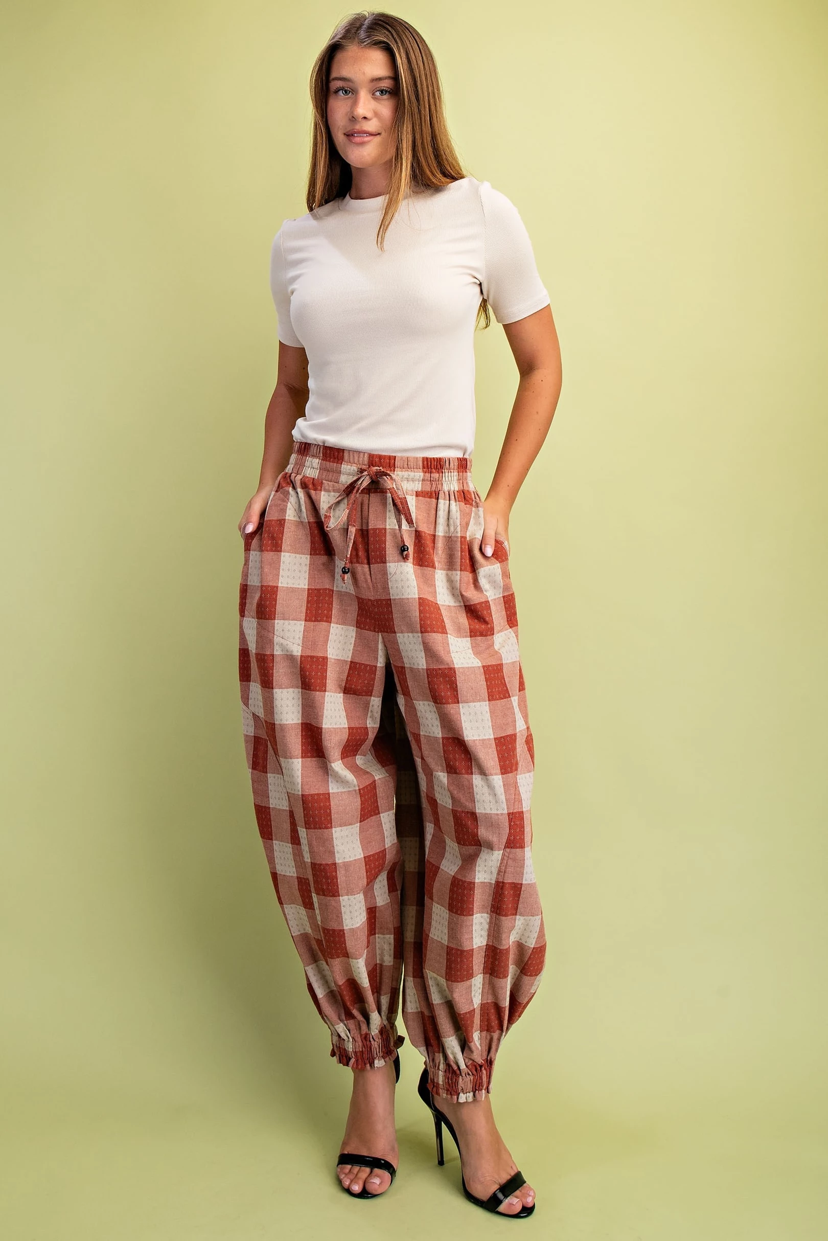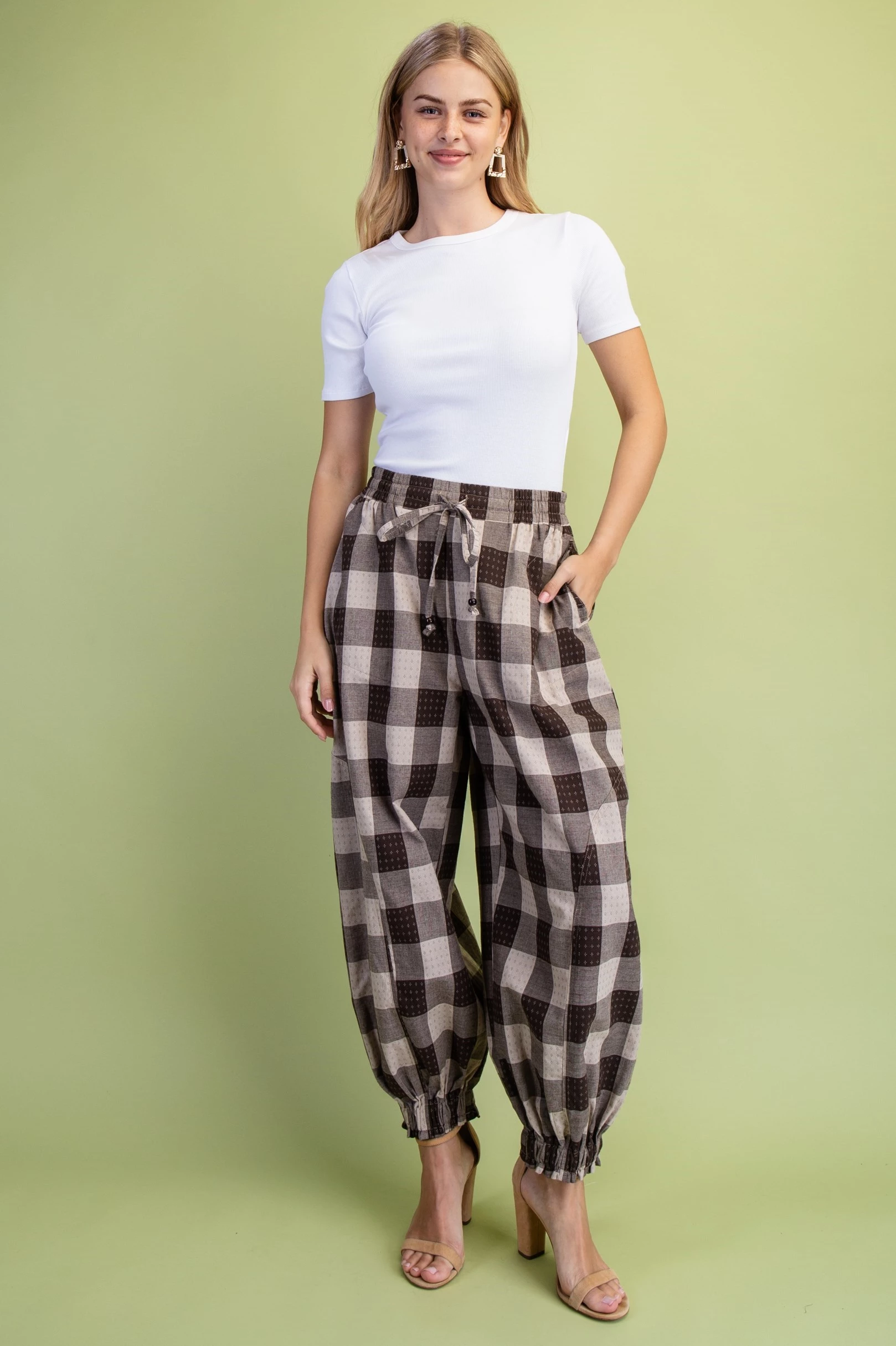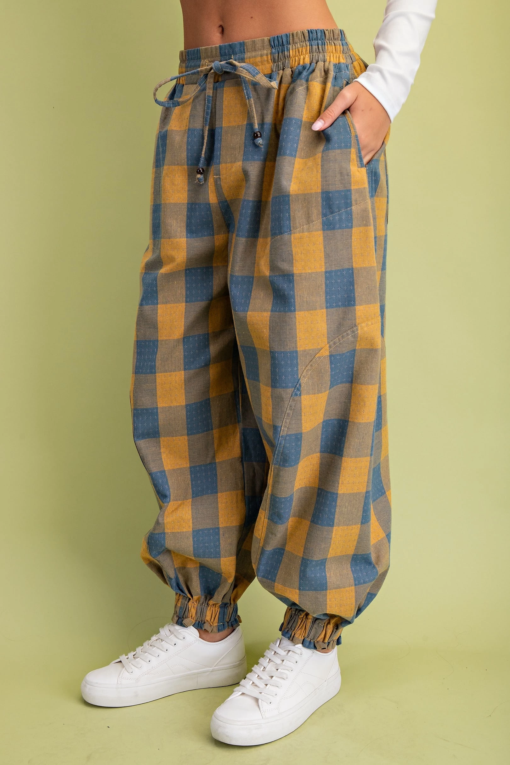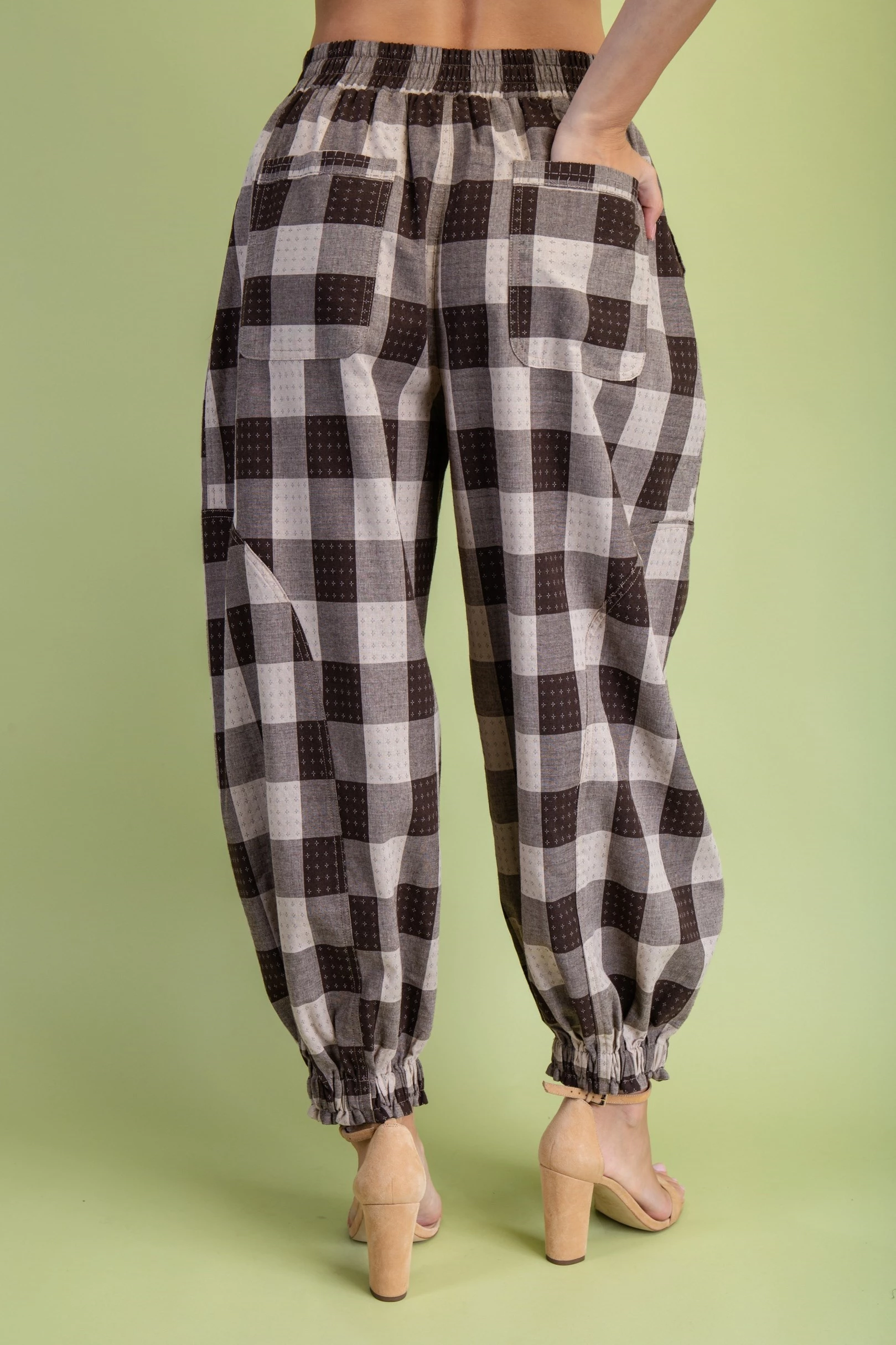 Check Print Balloon Style Pants with an Elasticized Waist