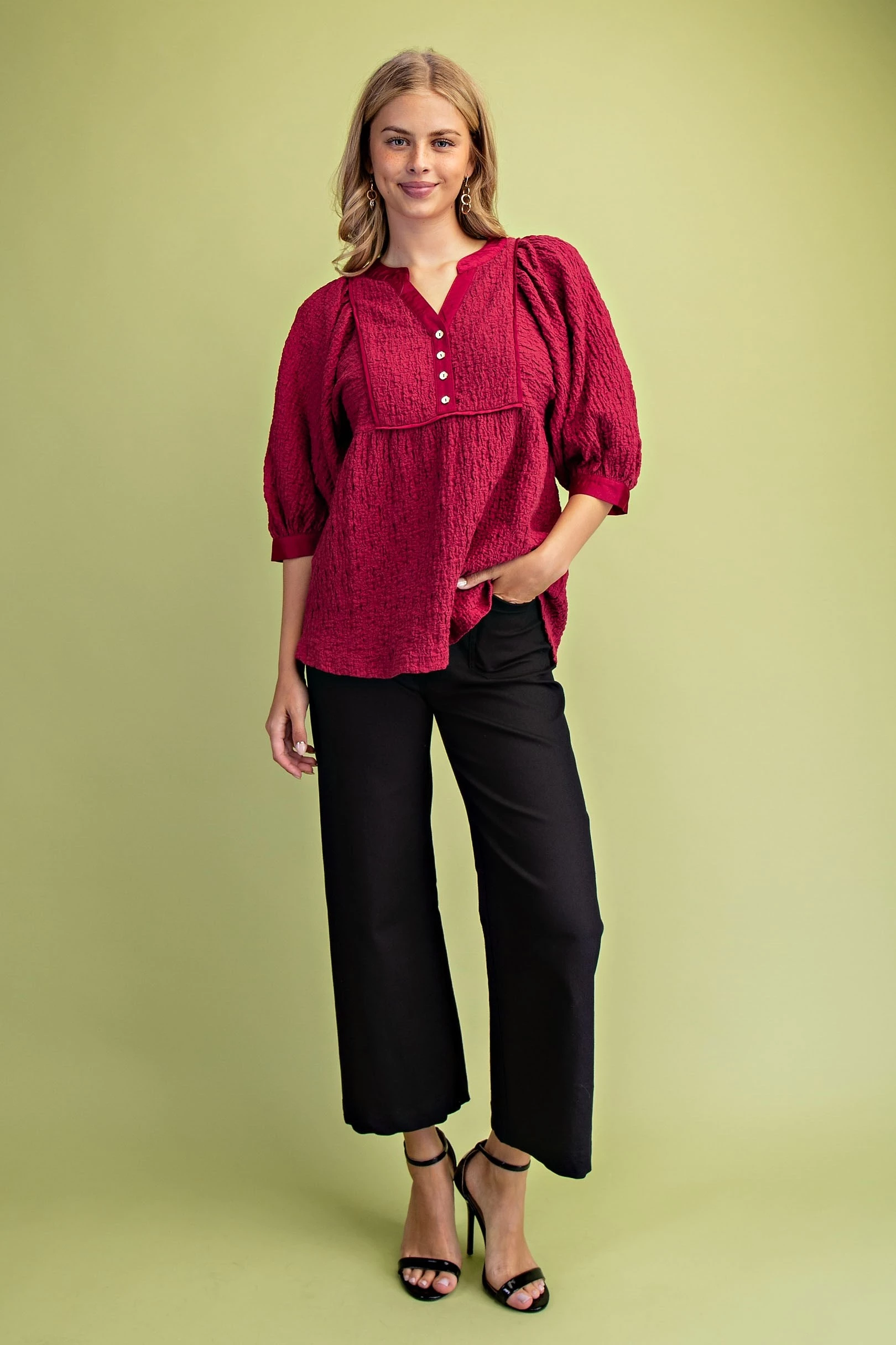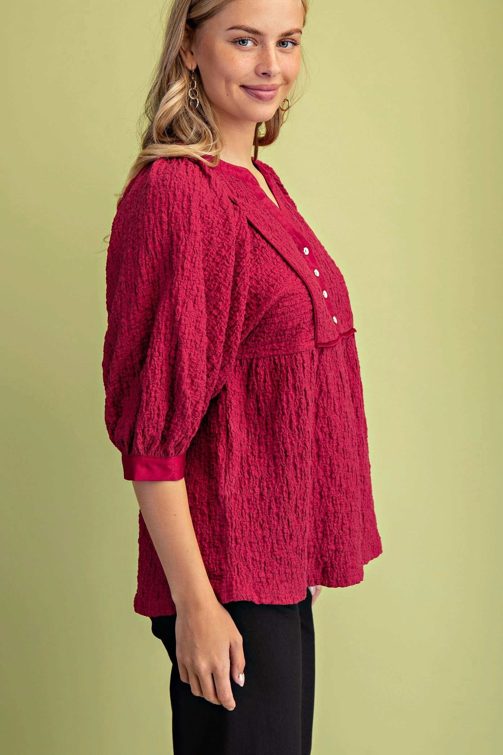 Elevated Double Soft Knit V-Neck Dress with Elastic Hemmed Short Sleeves and a Ruffled Neck