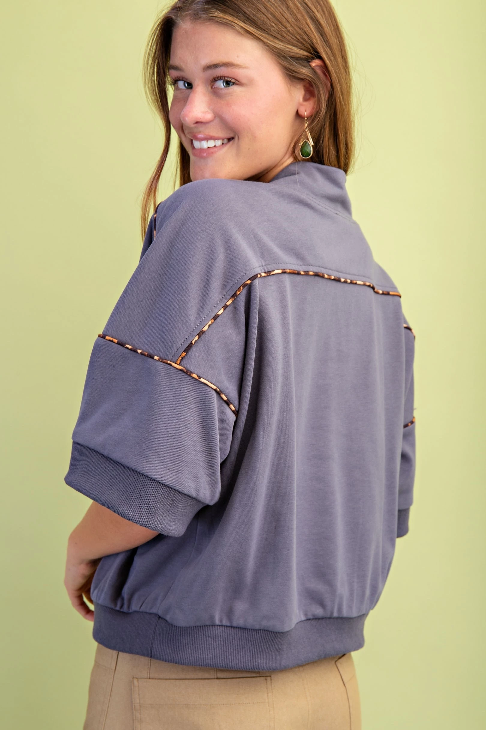 Western Embroidered Sweatshirt with Leopard Piping Details