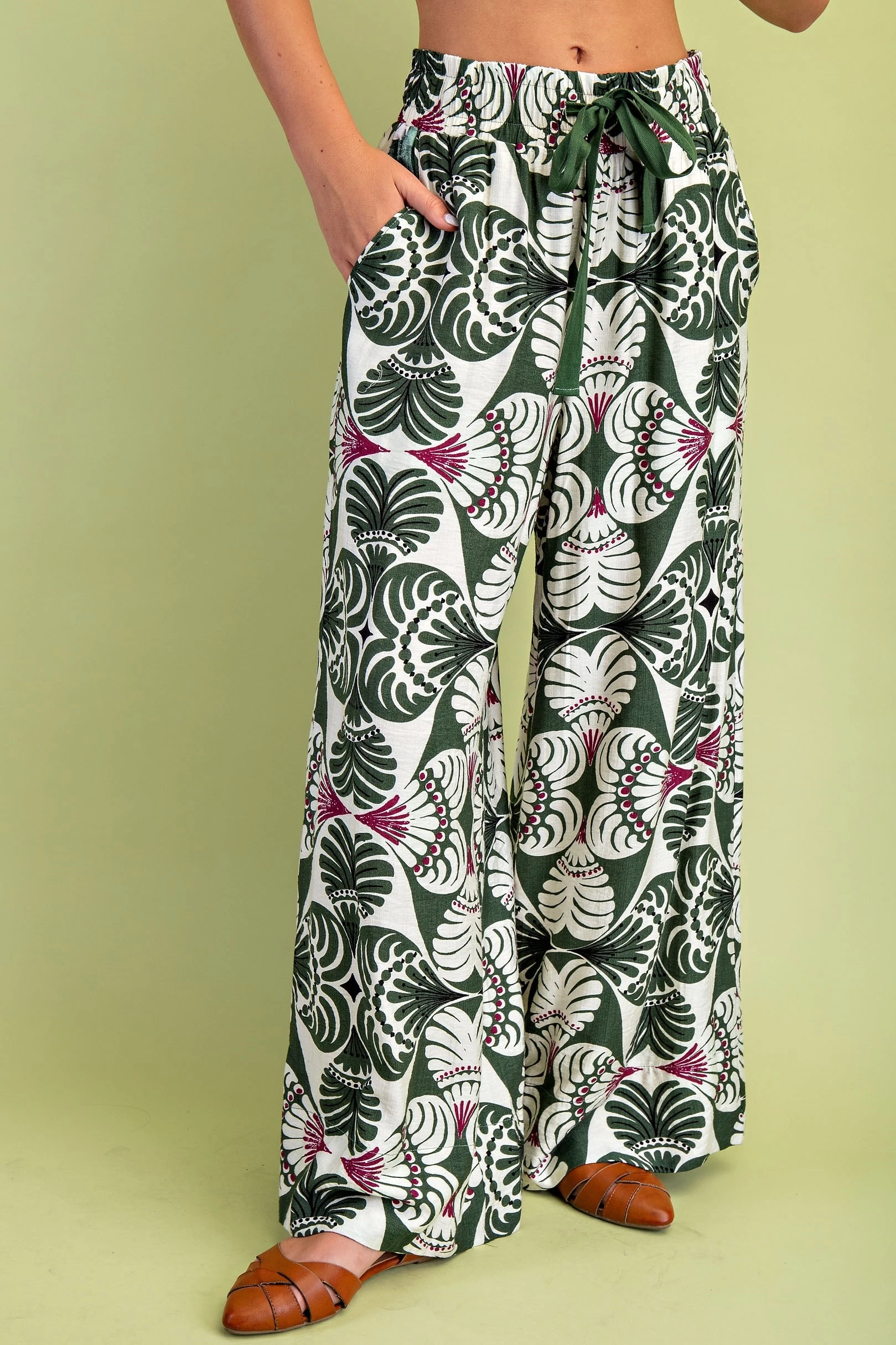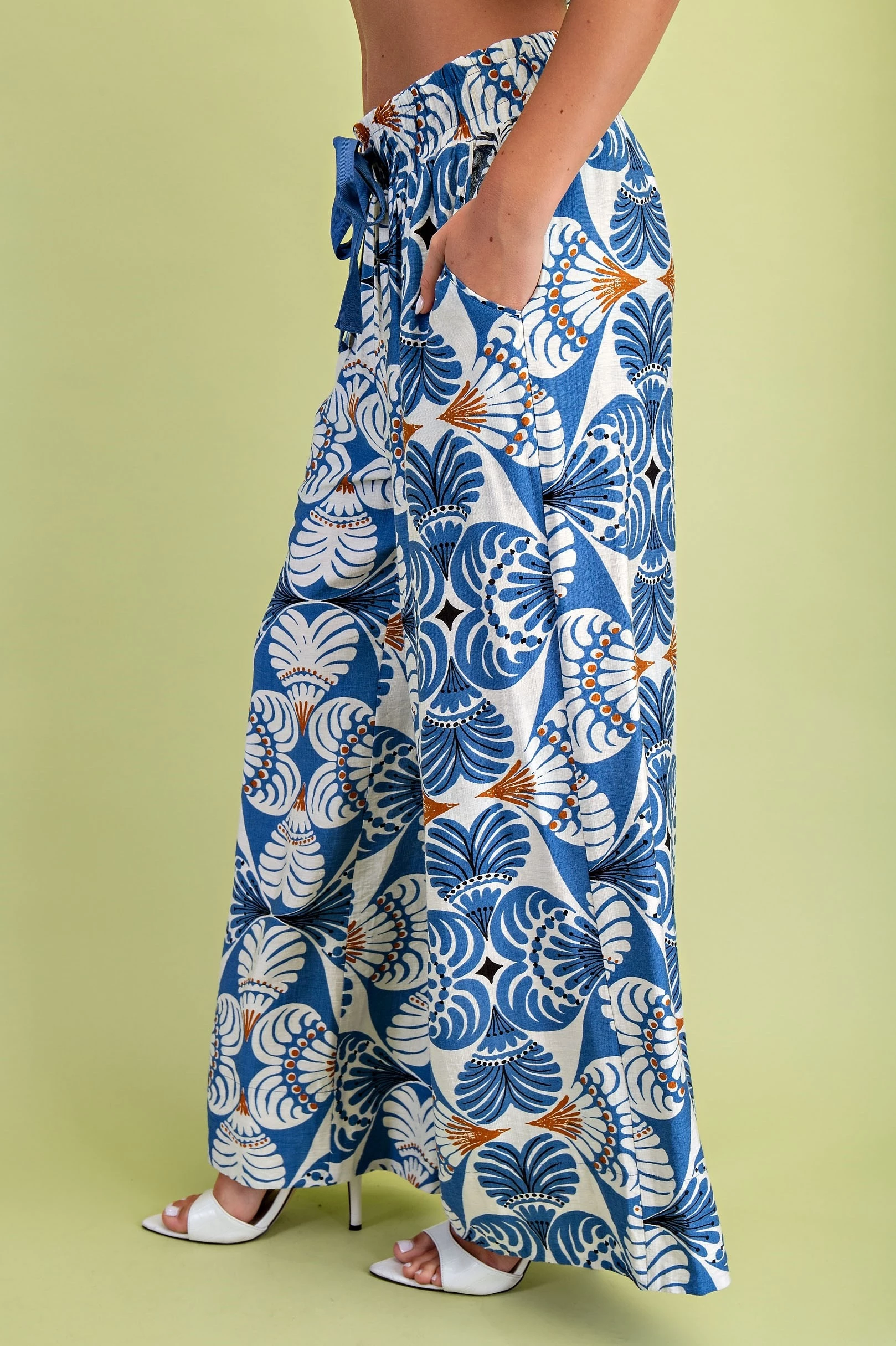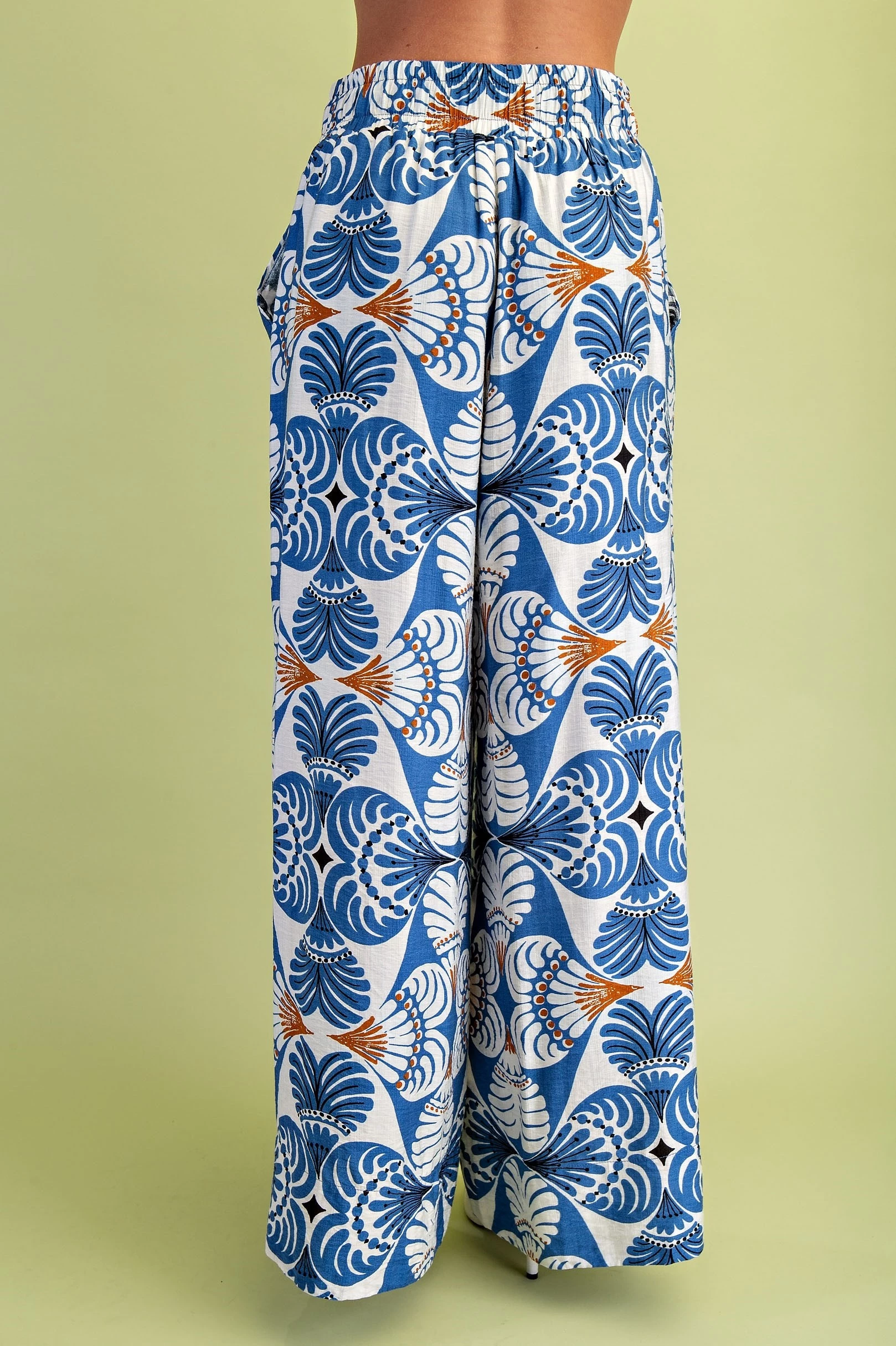 Printed Relaxed Fit Pants with Elastic Waist and Drawstring