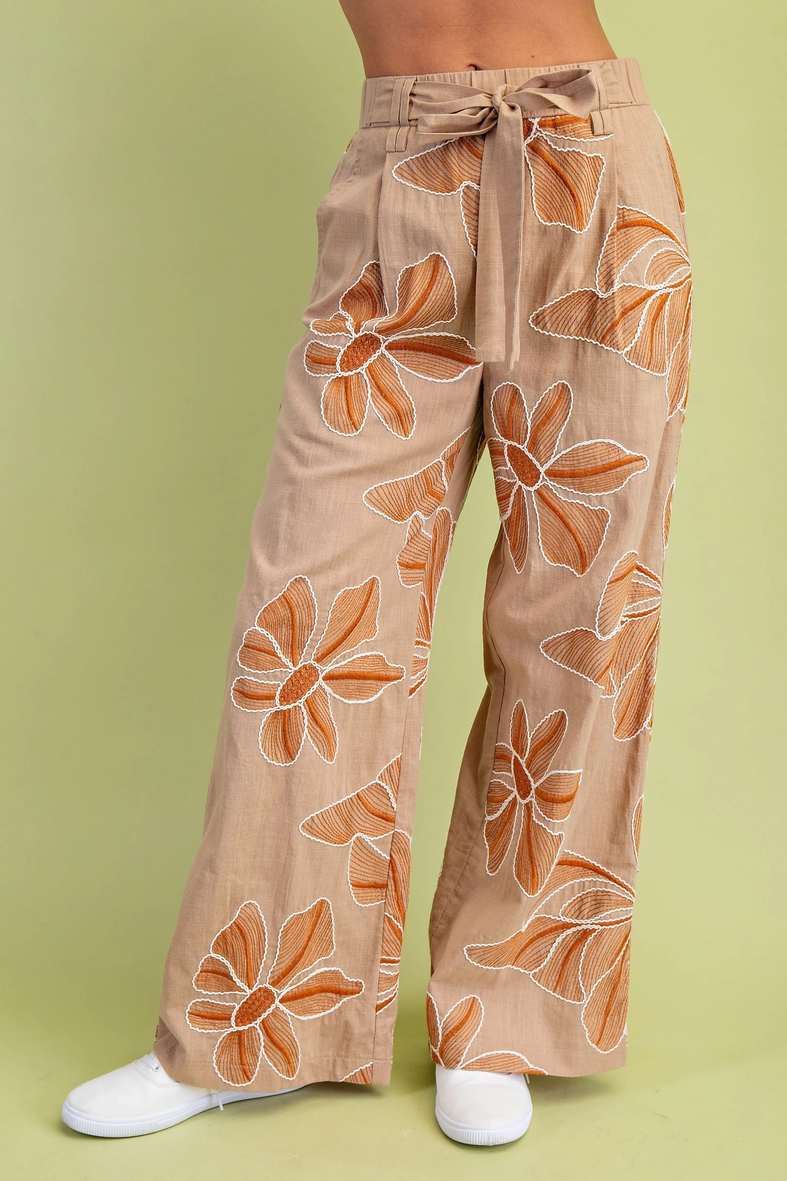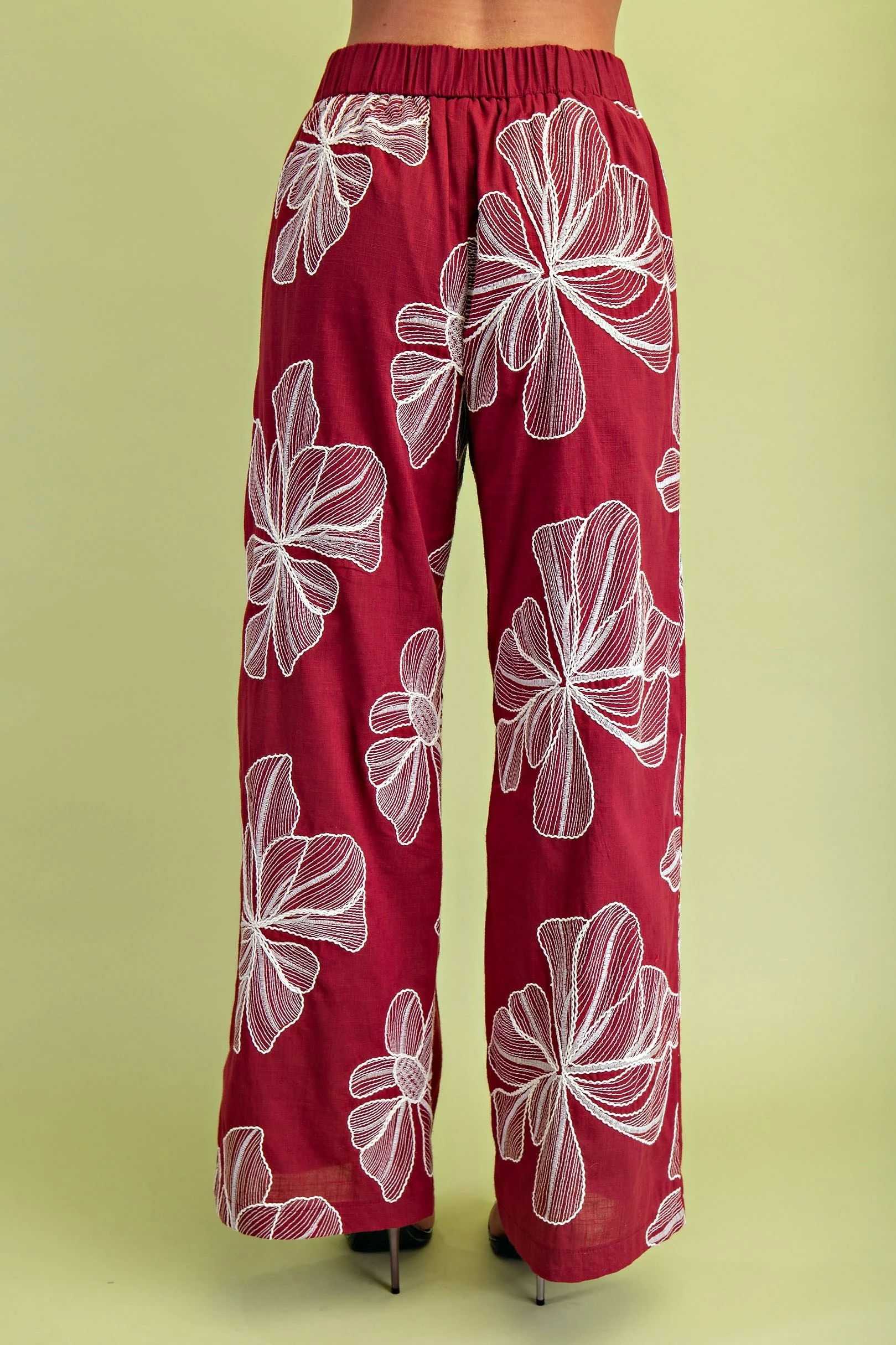Floral Embroidered Popover Top with Pom Pom Trim Details