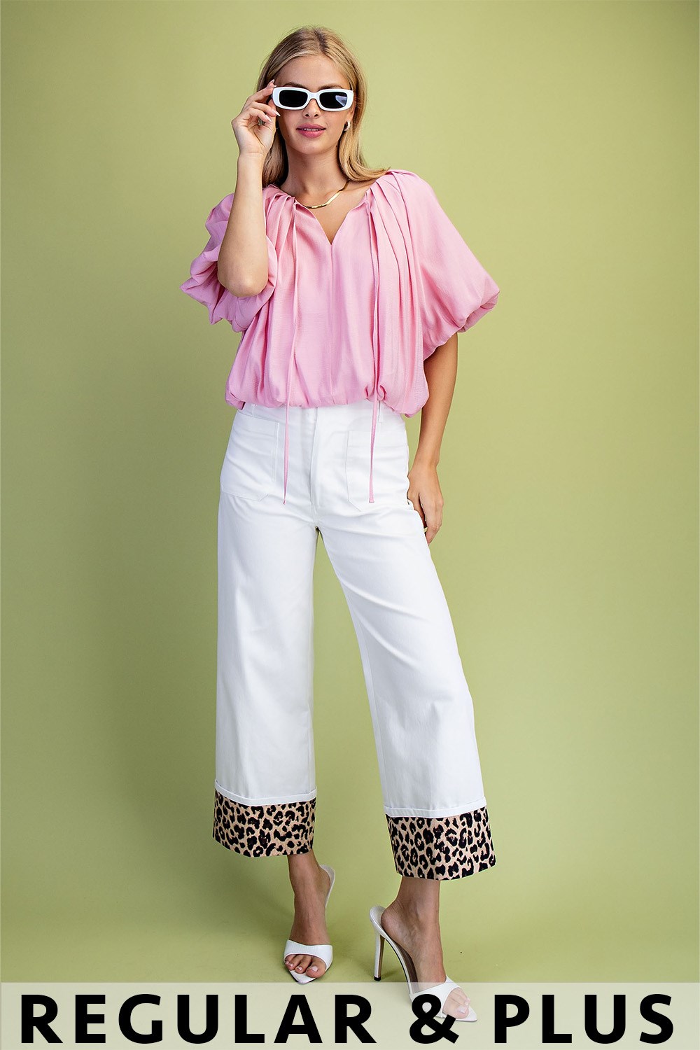 3/4 Length Gathered Balloon Sleeve Blouse with a Rounded Back Yoke