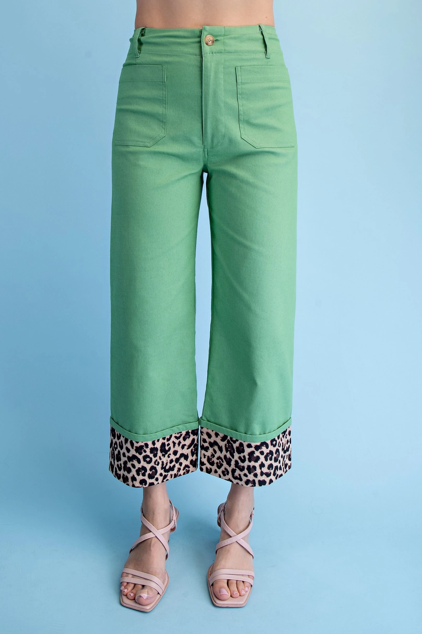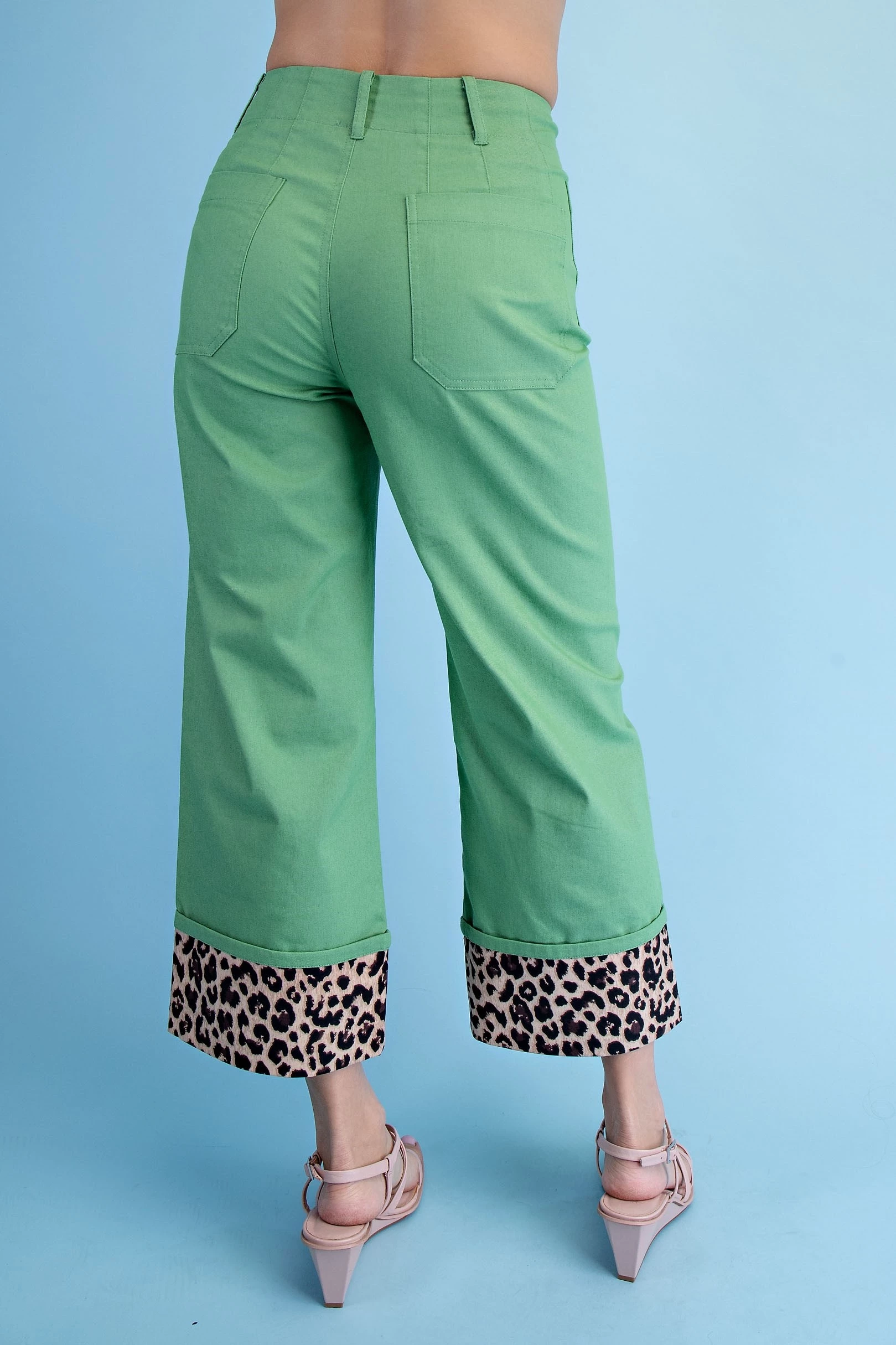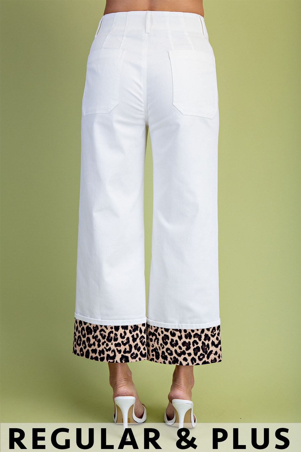 Cropped Wide Leg Pants with Contrast Stitching