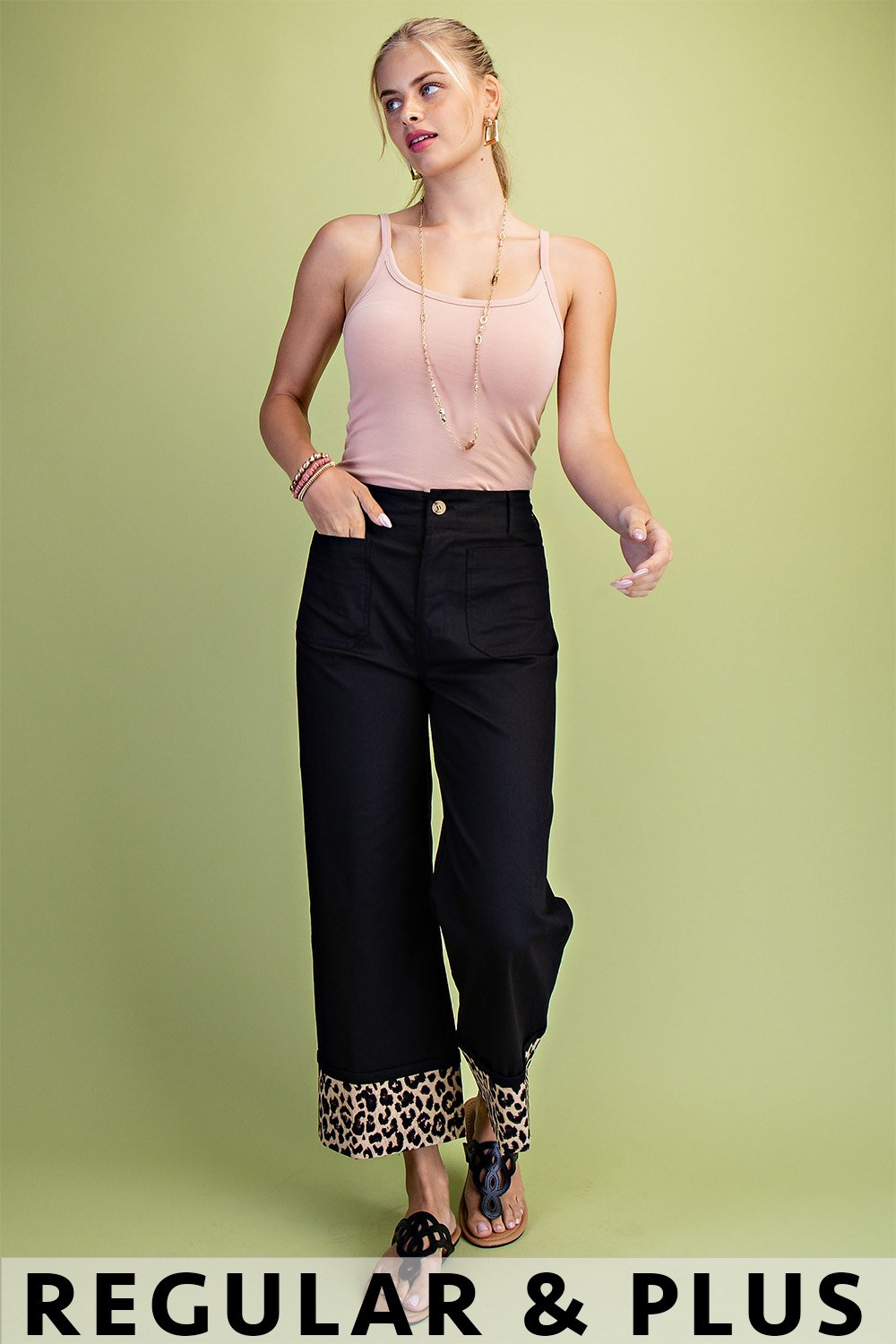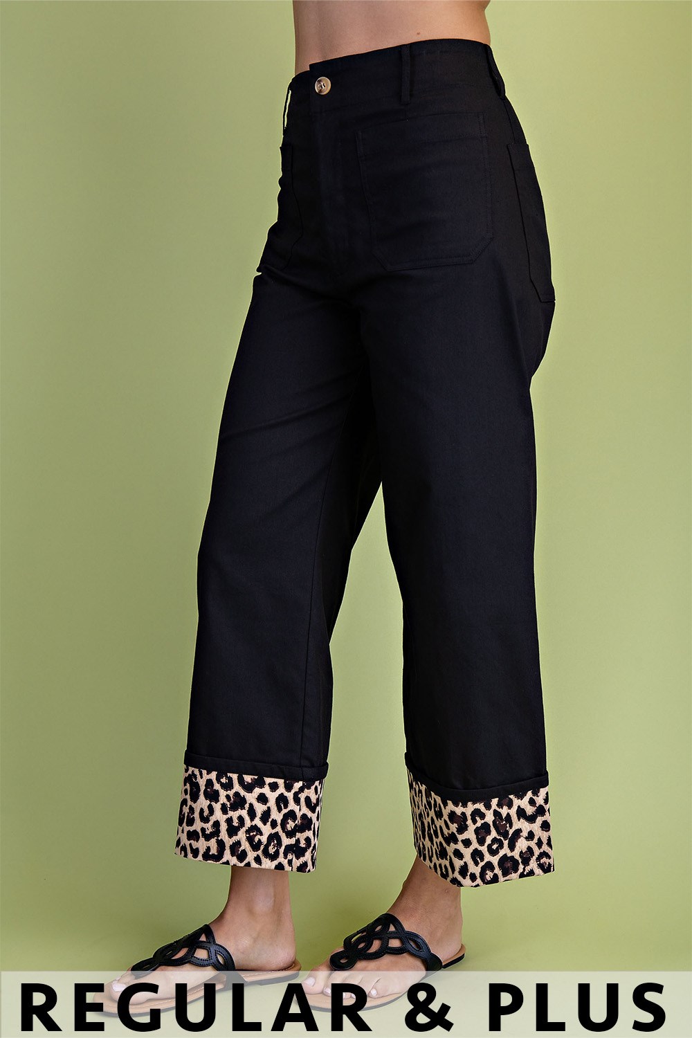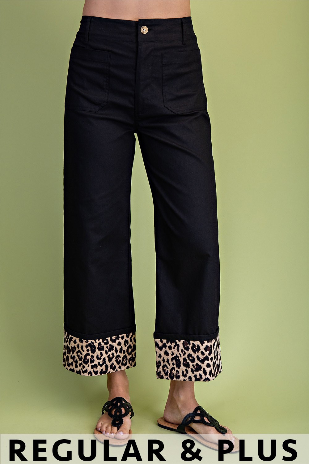 Cropped Wide Leg Pants with Contrast Stitching