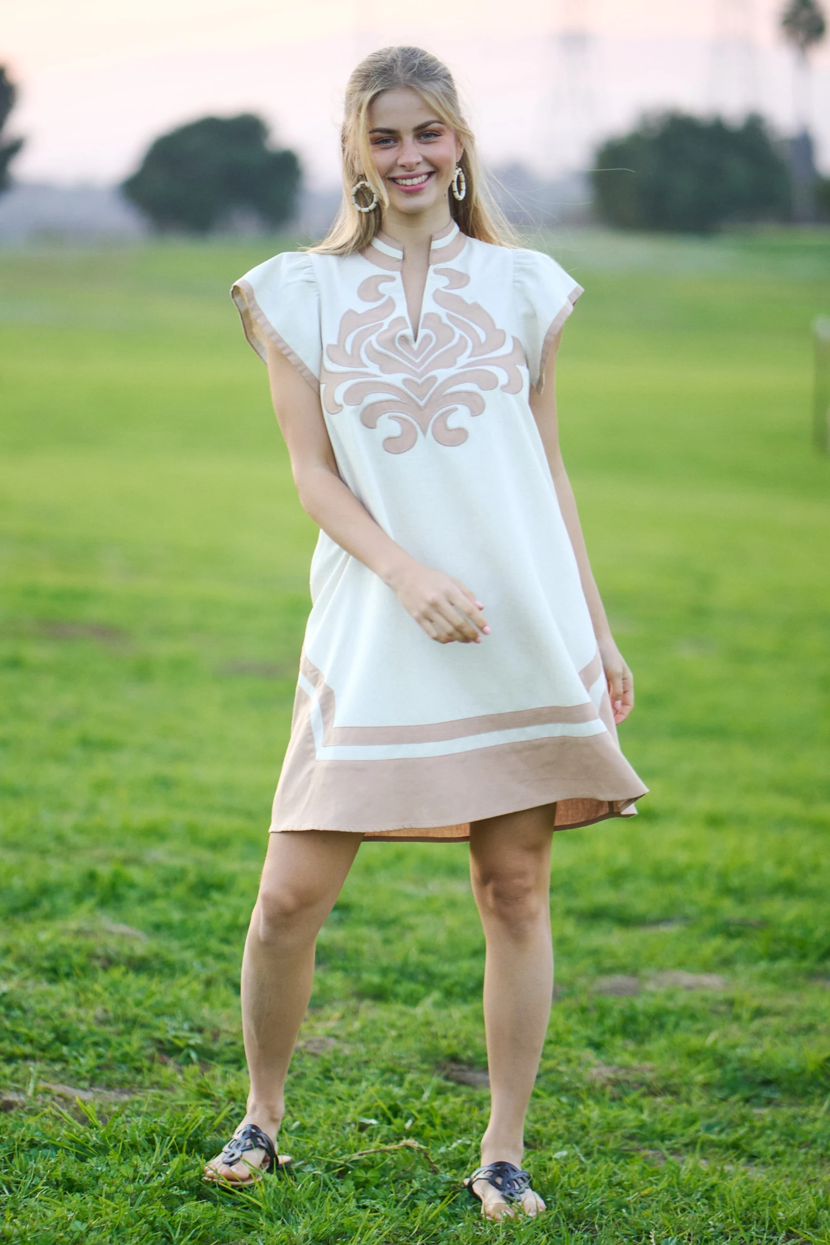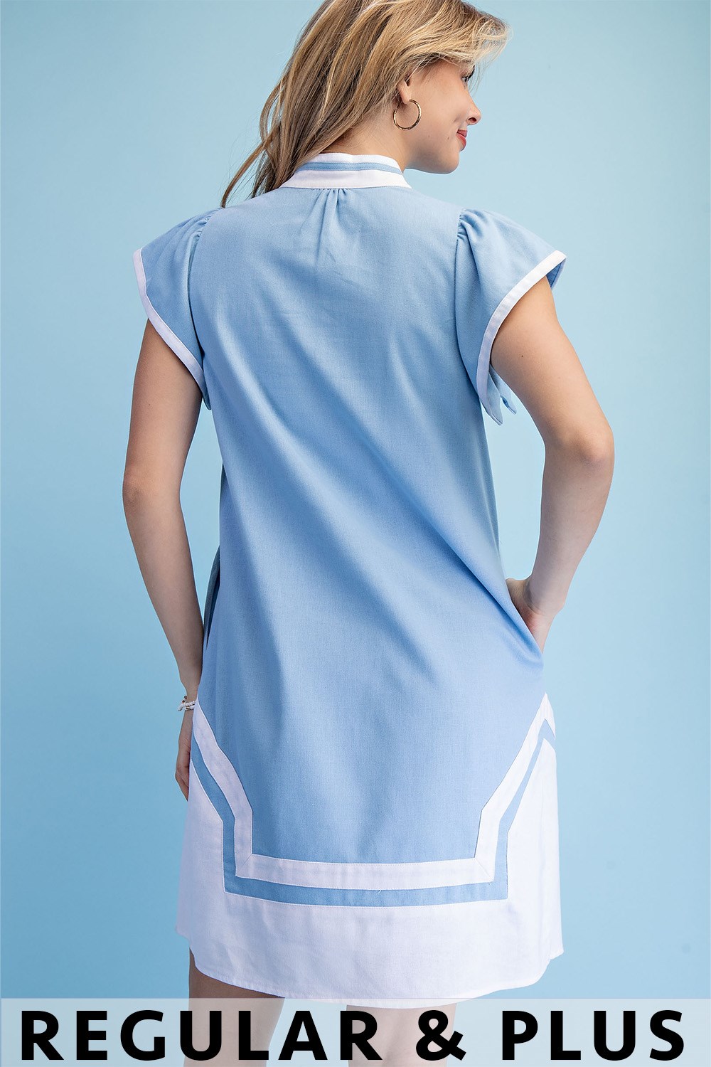 Paneled Textured Round Neck Mini Dress with Seaming Details