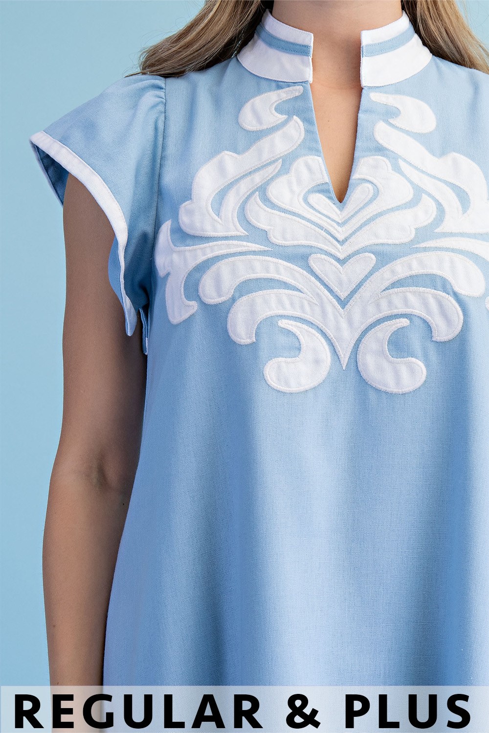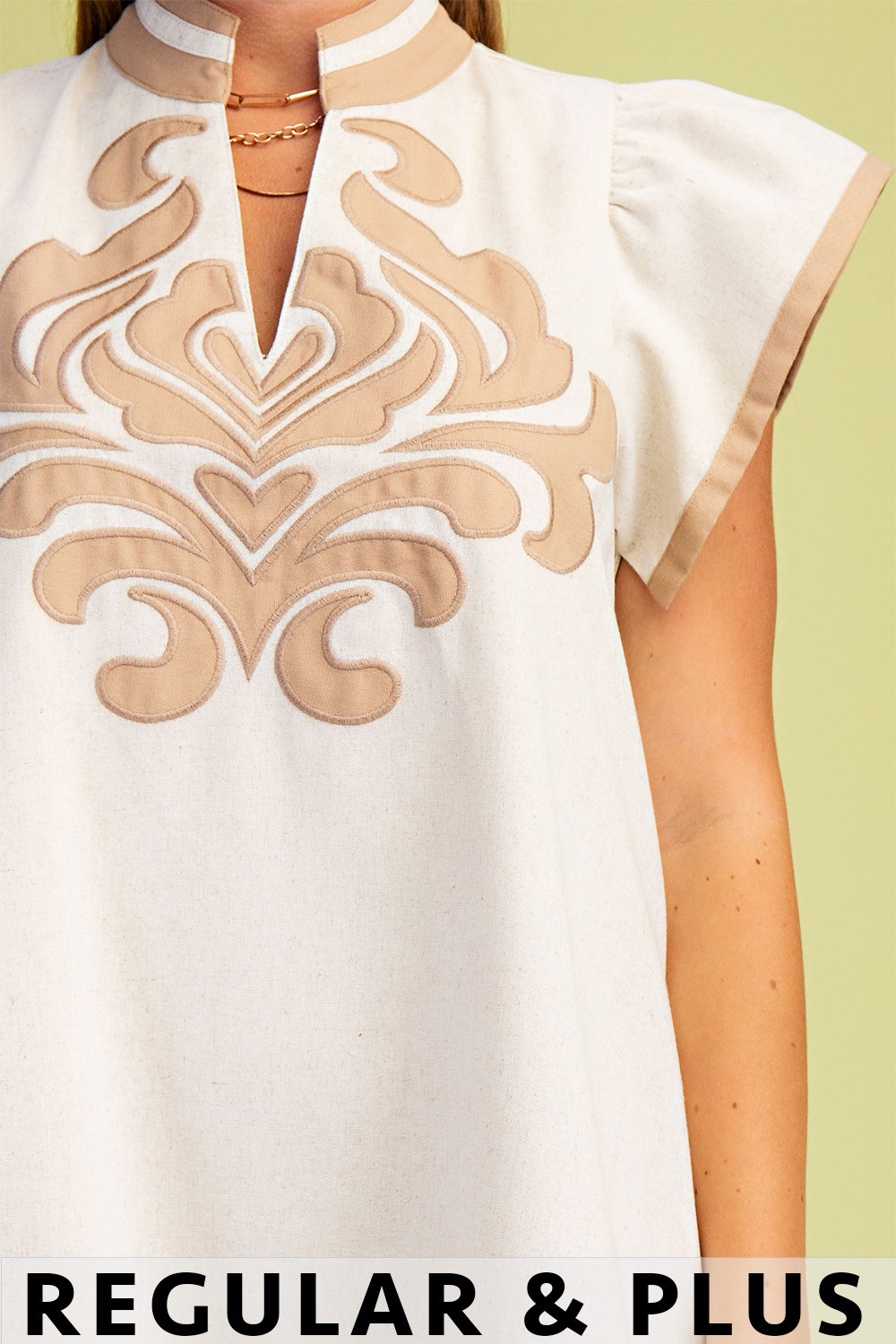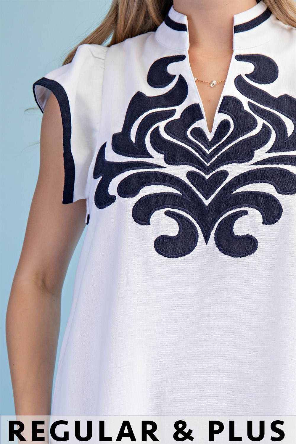 Embroidered Sleeveless Round Neck Top with Side Slits