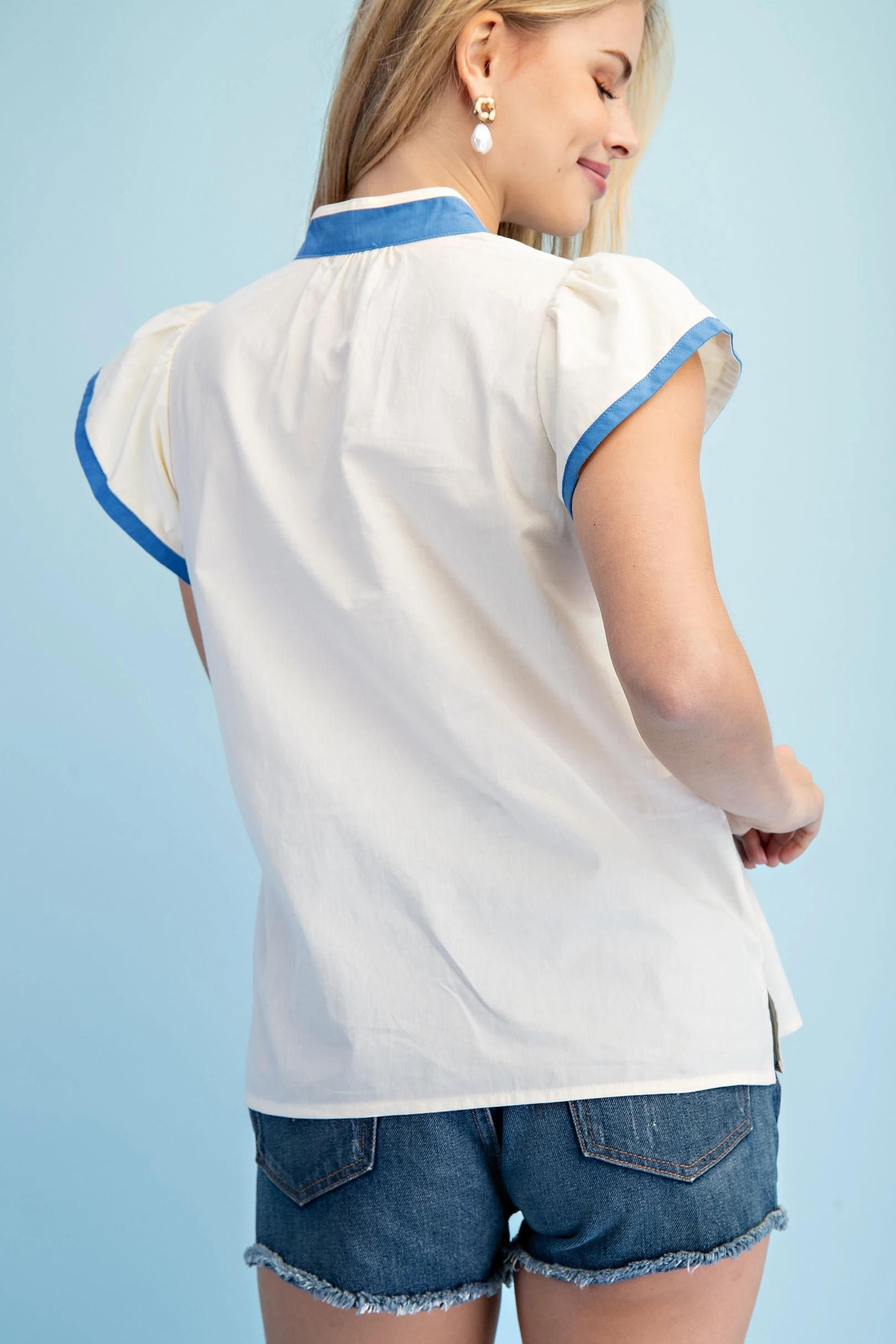 Peter Pan Collar Button Down Mini Dress with Short Puff Sleeves