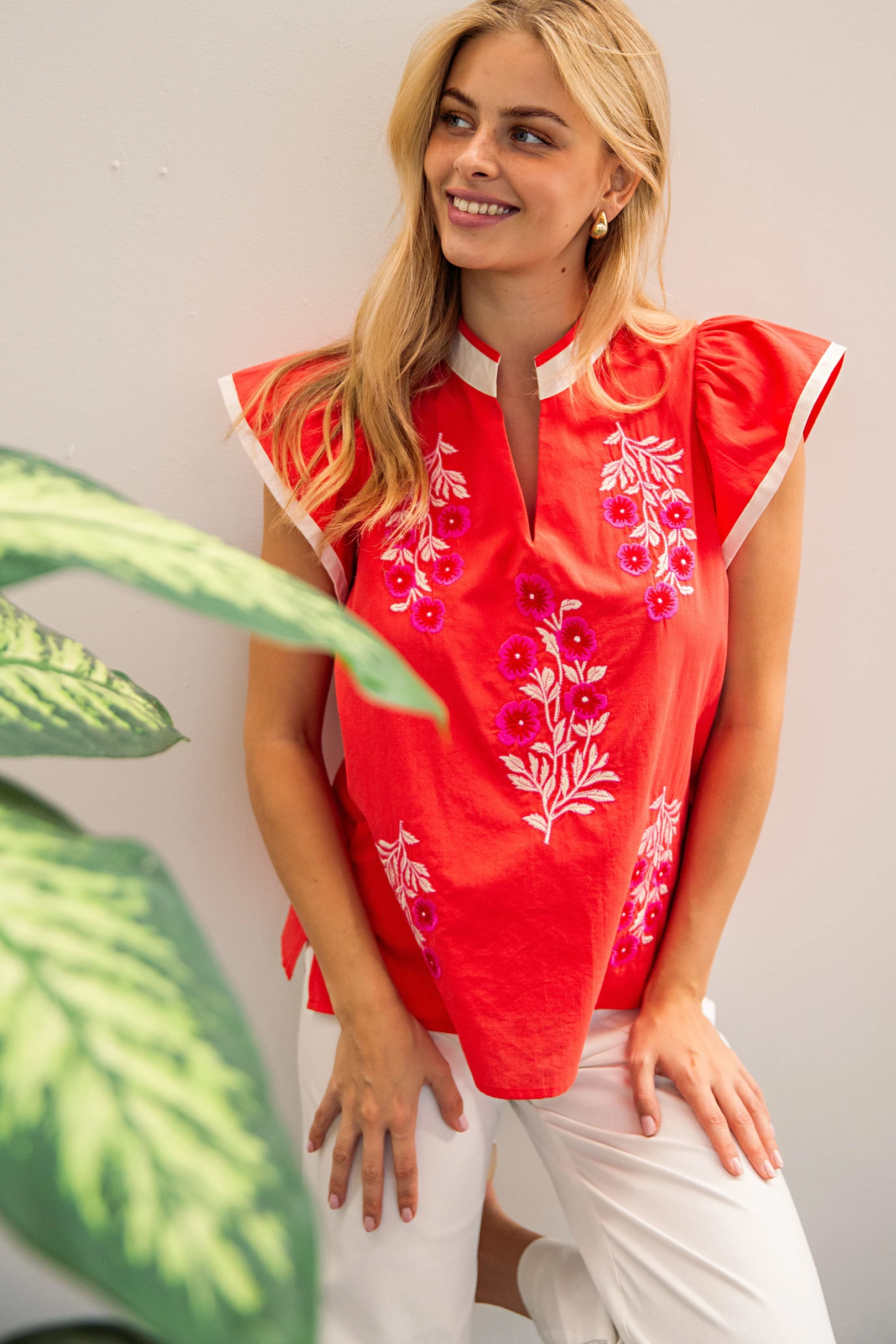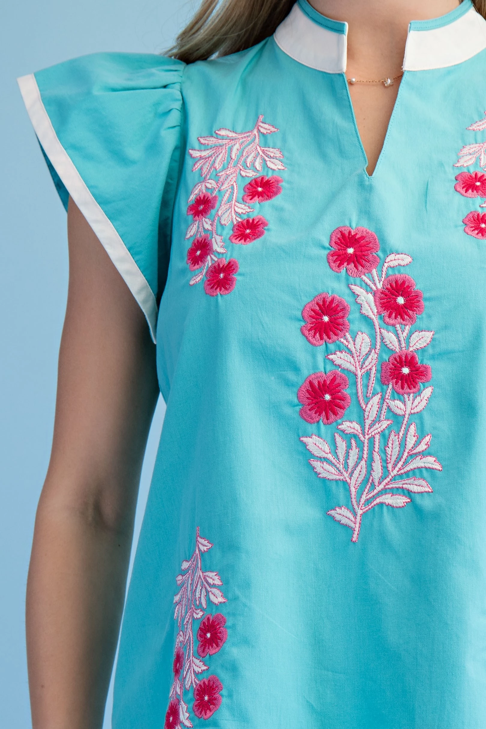 Embroidered Sleeveless Round Neck Top with Side Slits