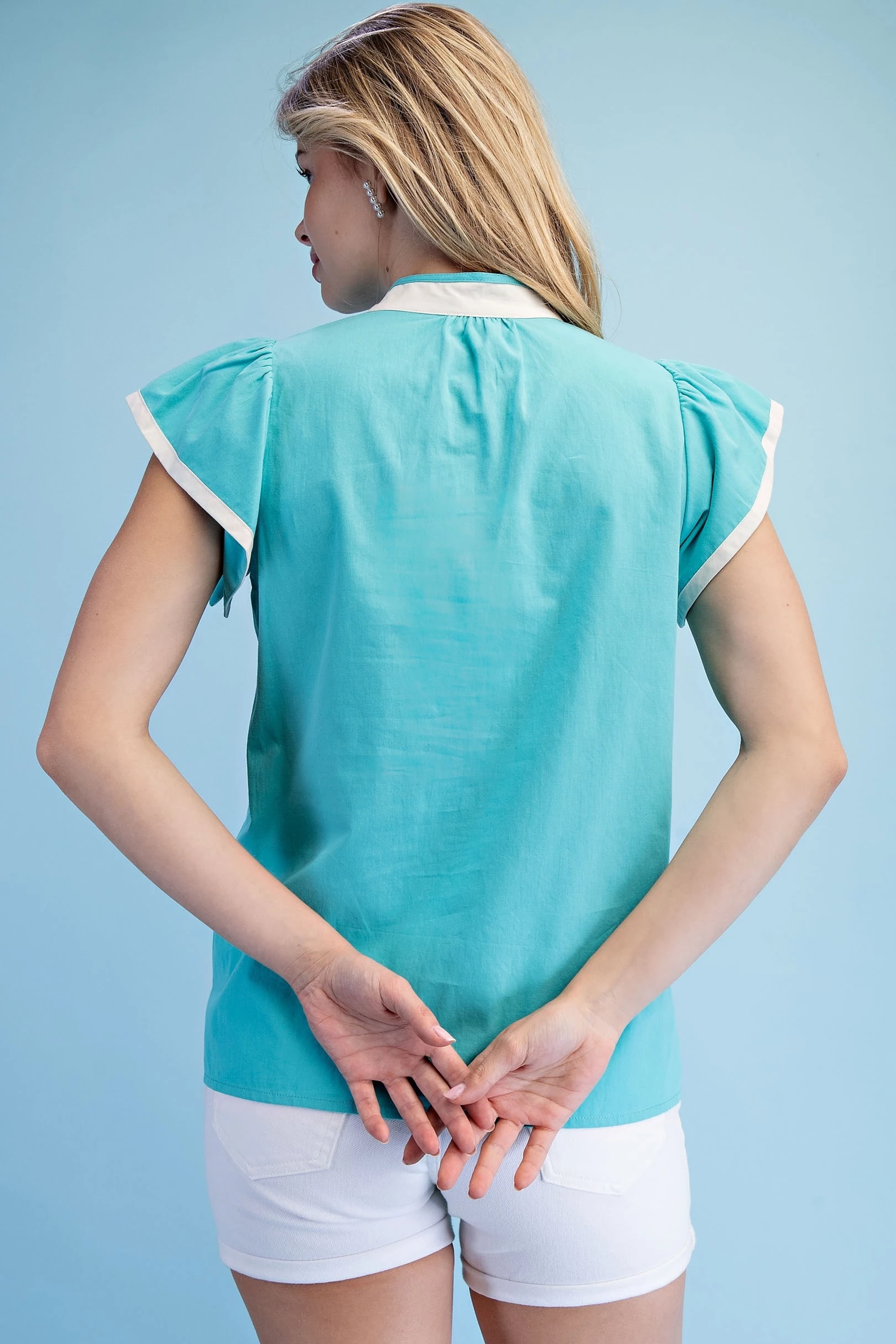 Linen V-Neck Top with a Padded Cap Sleeve