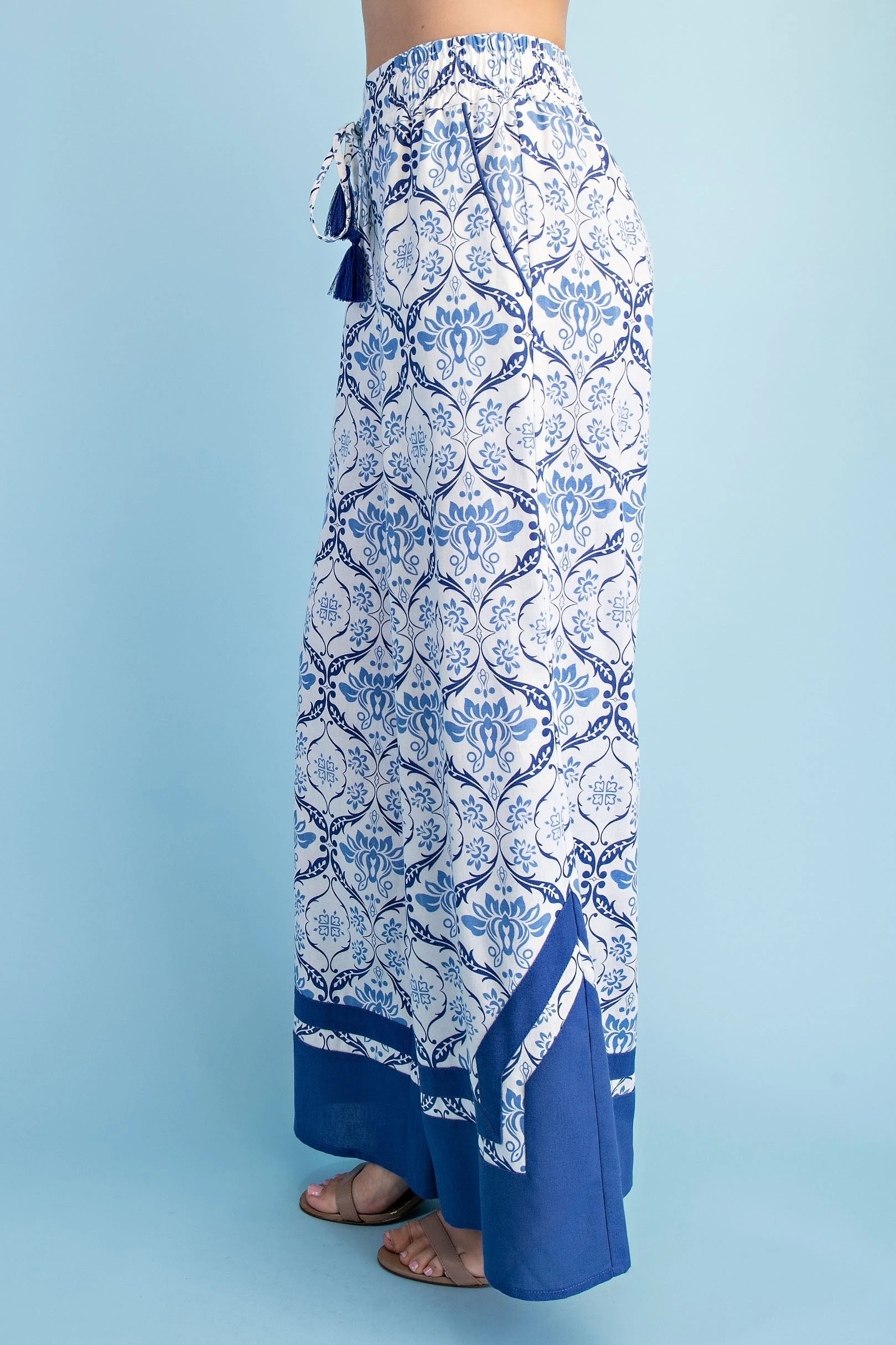 Printed Voluminous Wide Leg Pants with an Elastic Waist and Drawstring