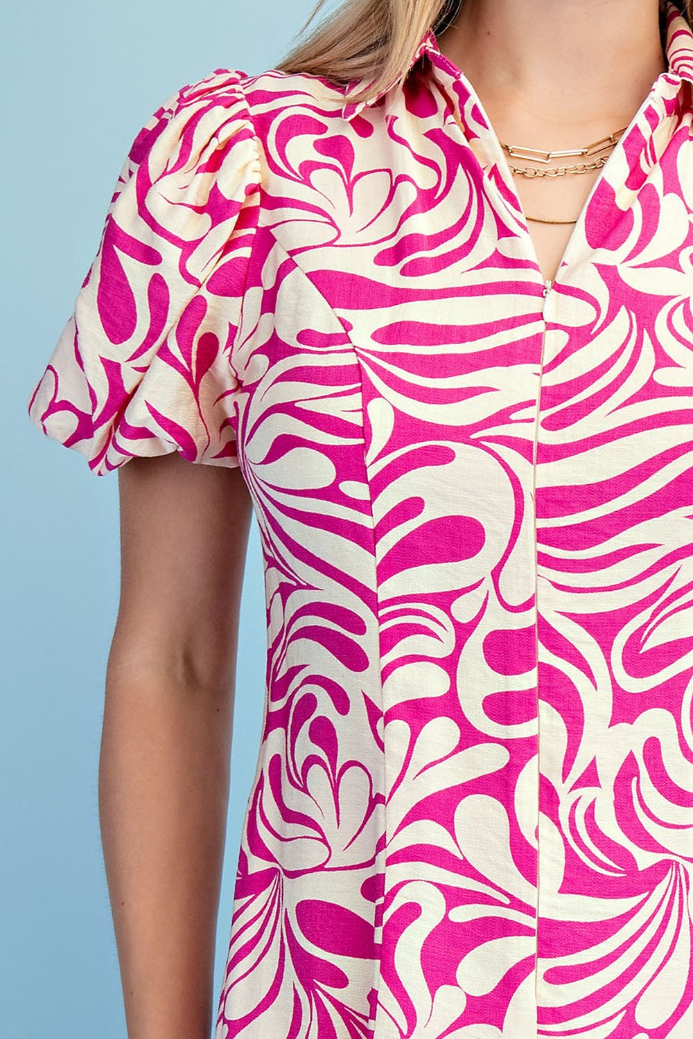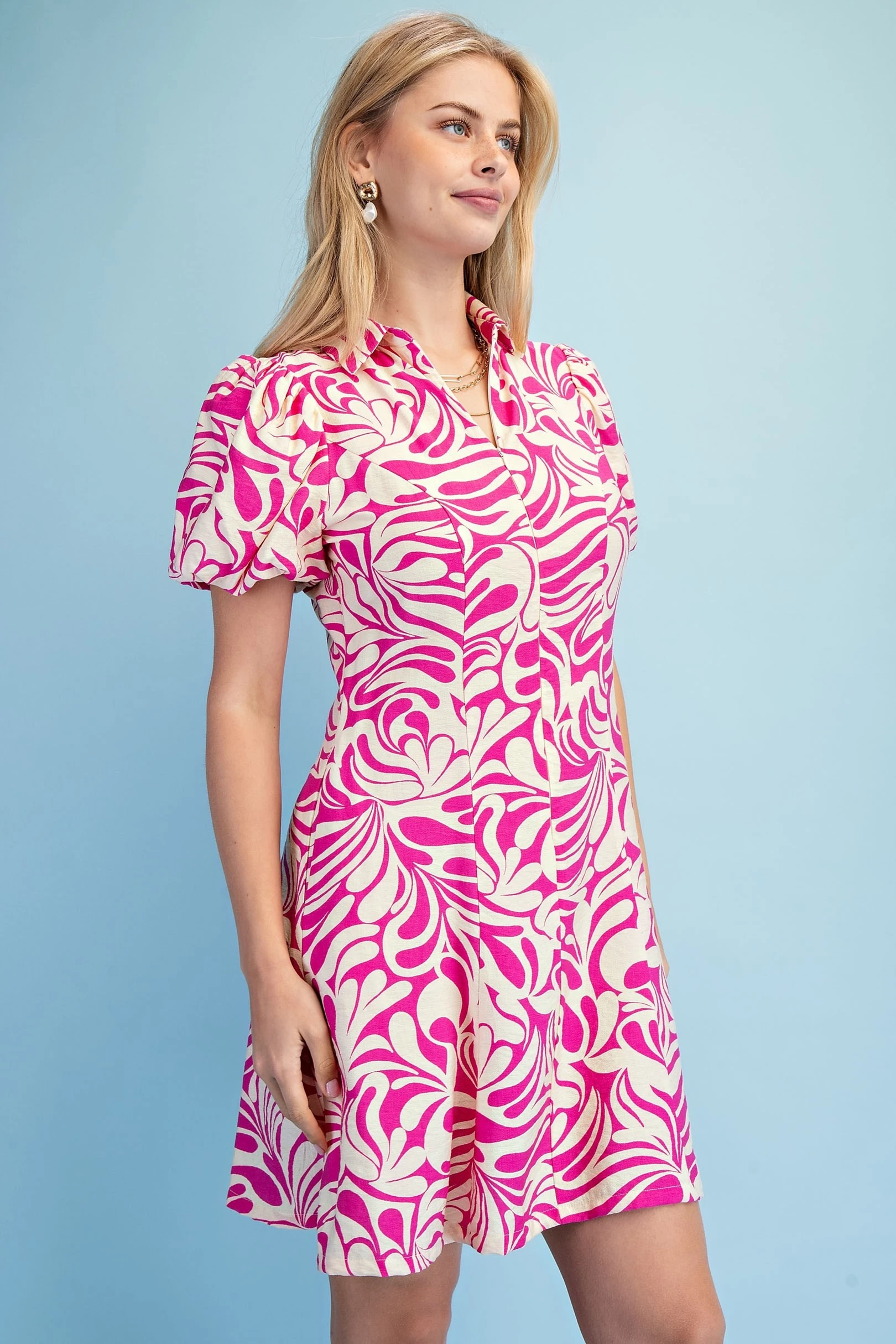 Printed A-Line Mini Dress with a Collar and an Invisible Front Zipper