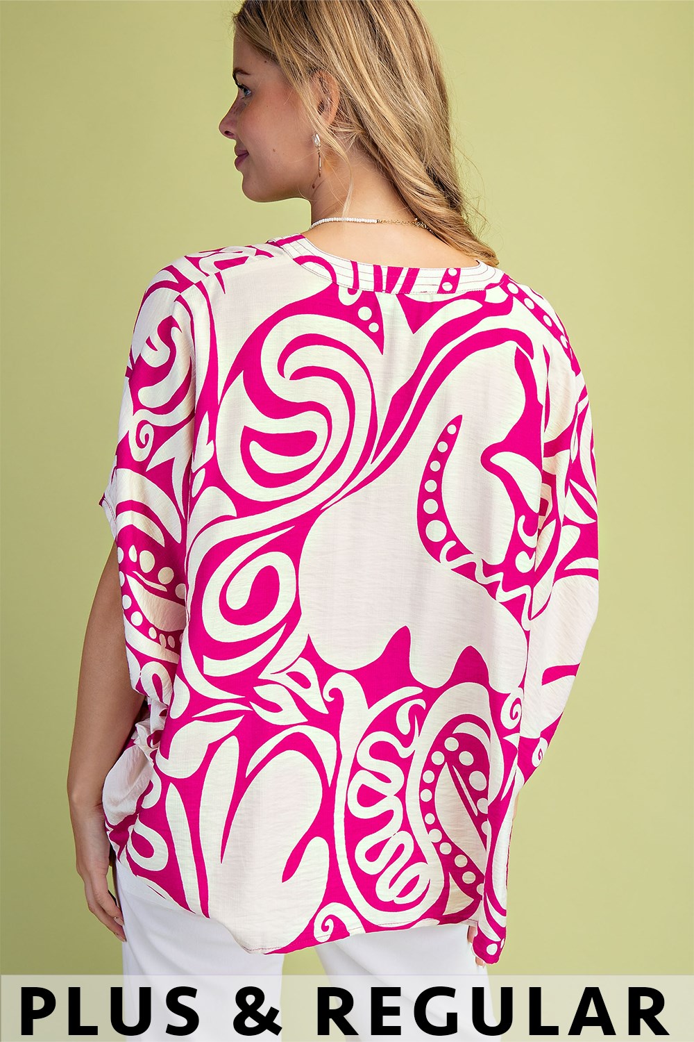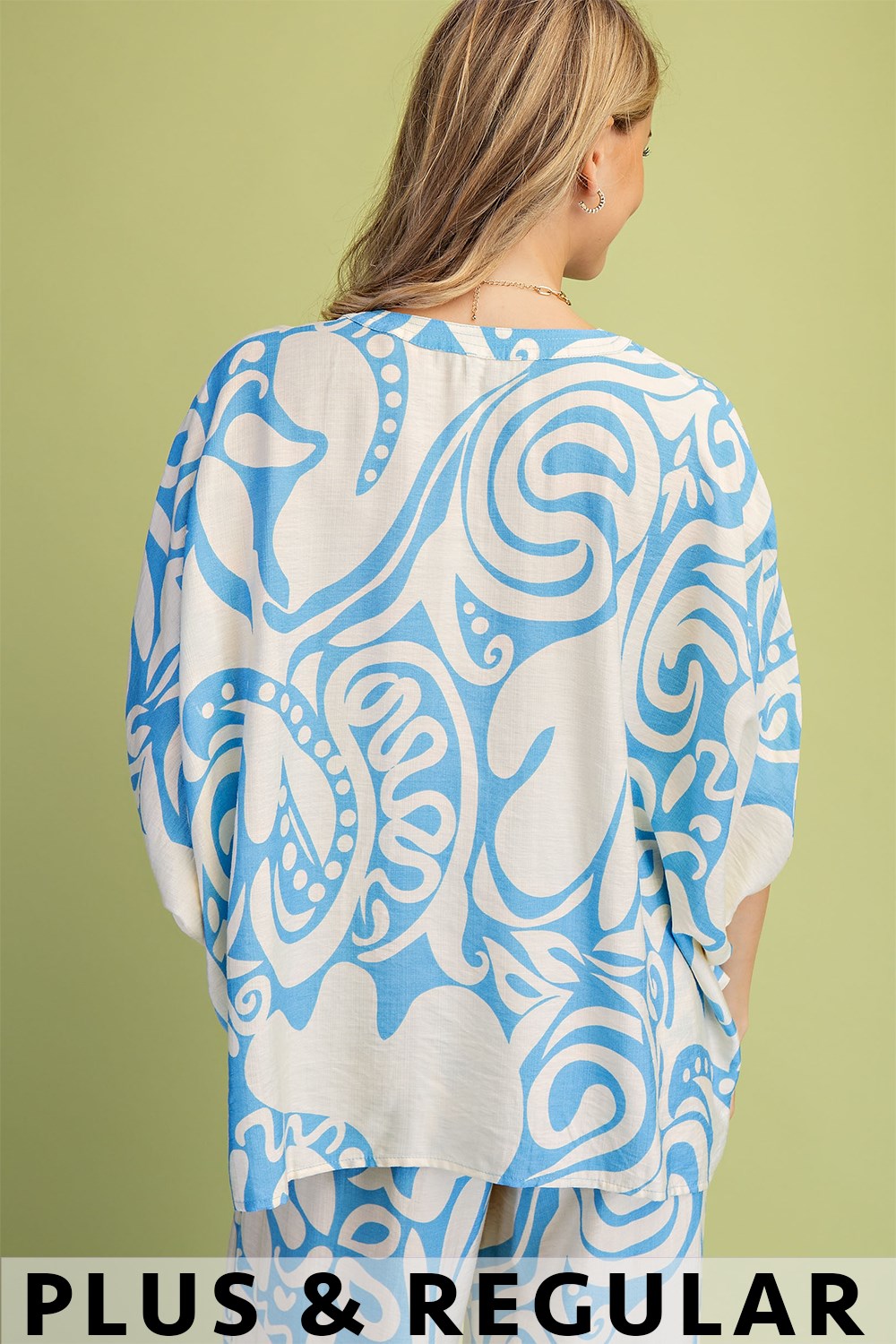 3/4 Length Gathered Balloon Sleeve Blouse with a Rounded Back Yoke