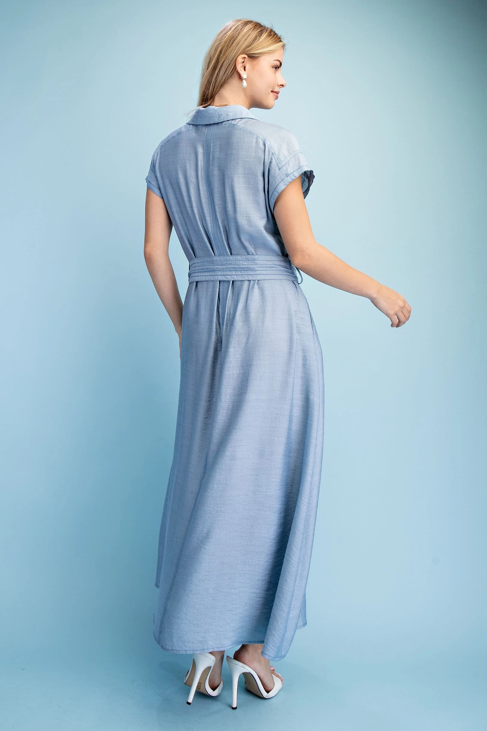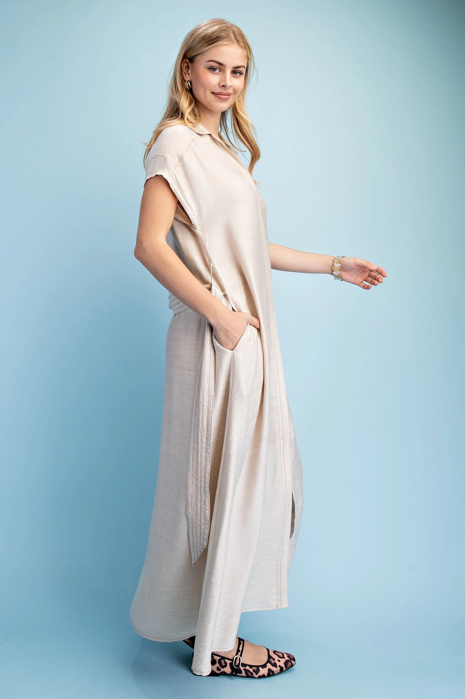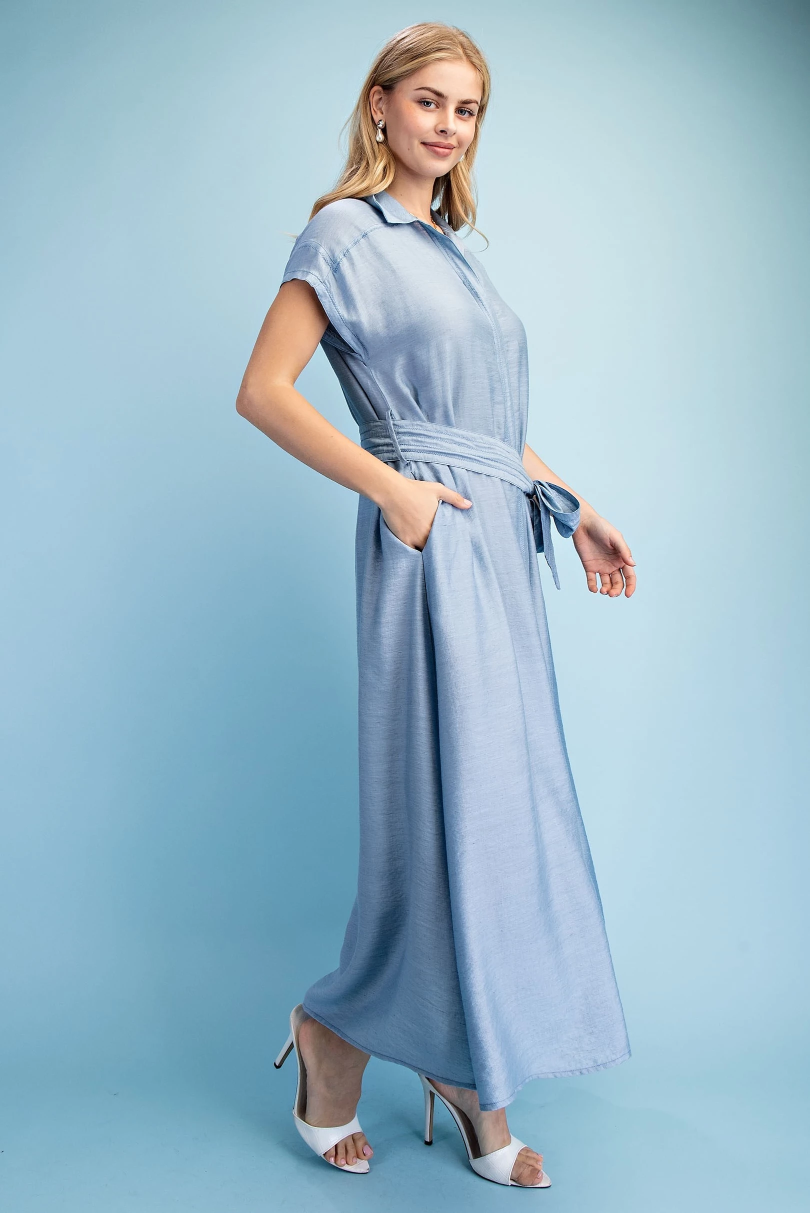 Ankle Cropped Summer Pants in a Stretchy Denim-Like Fabric with Pockets
