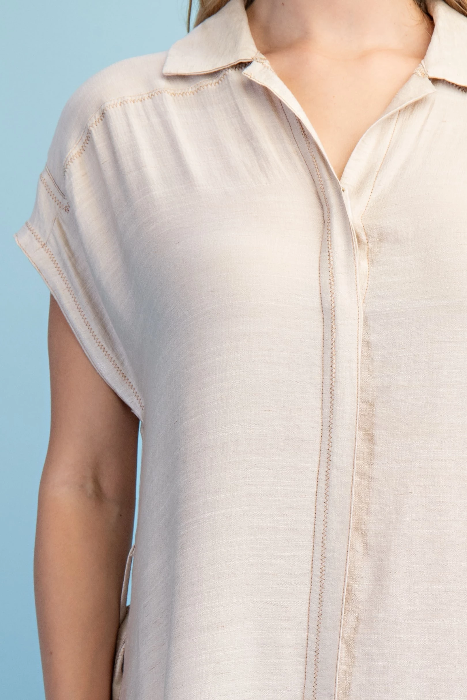 Short Puff Sleeve V-Neck Top with Embroidery Details