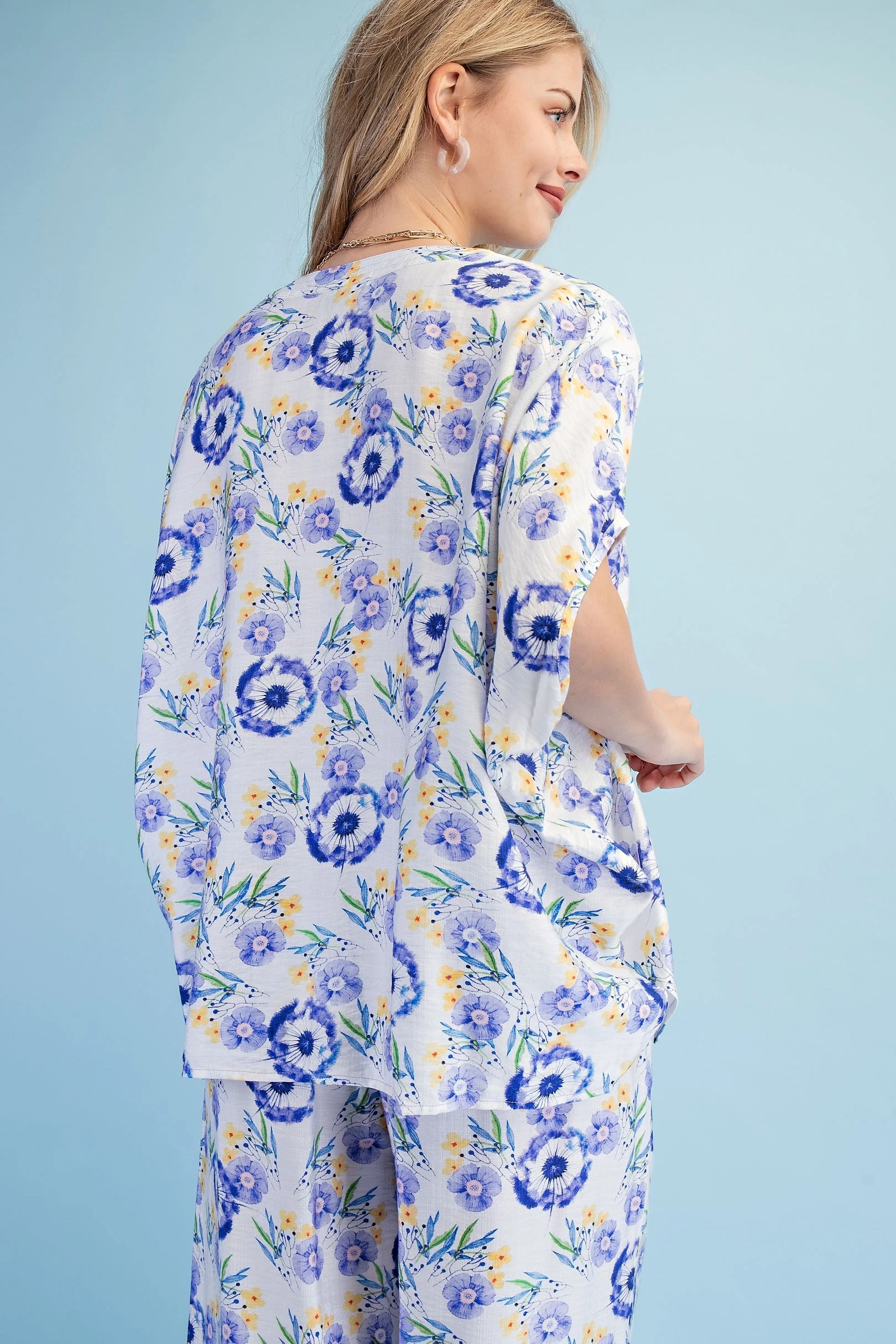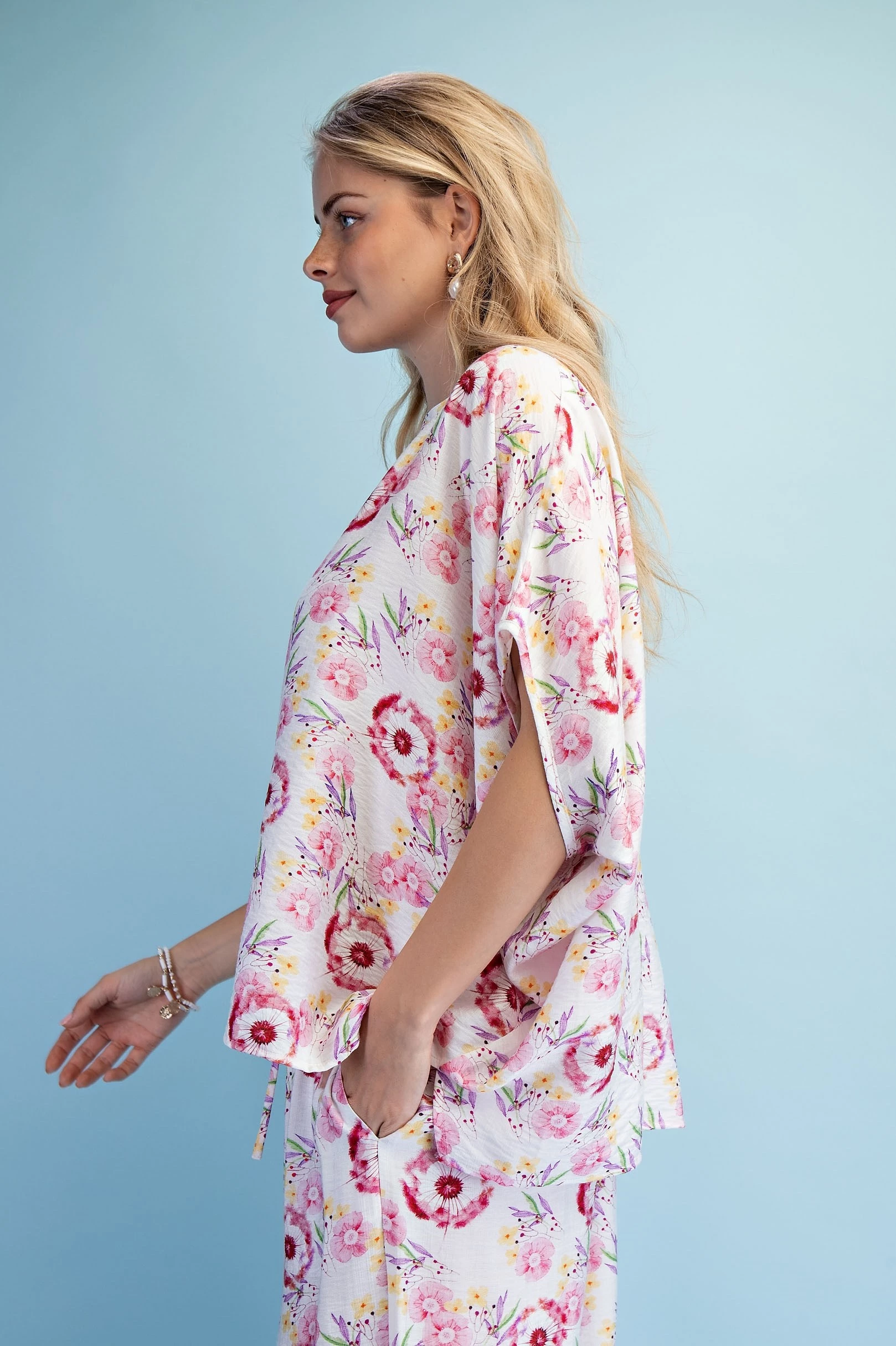 Floral Print Relaxed Fit Top with Dolman Sleeves