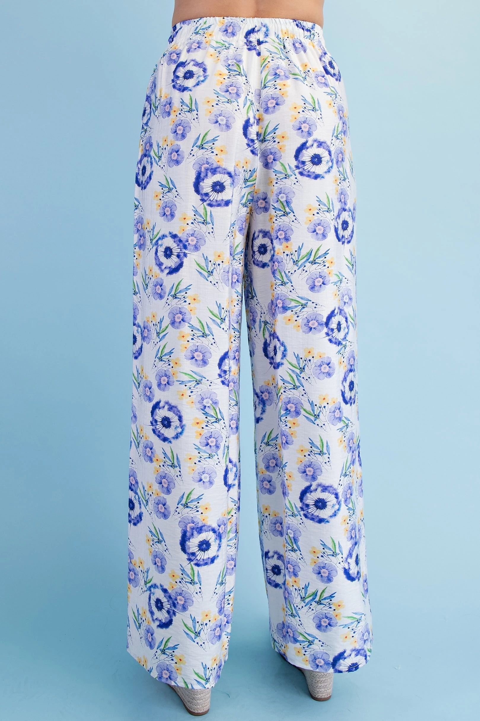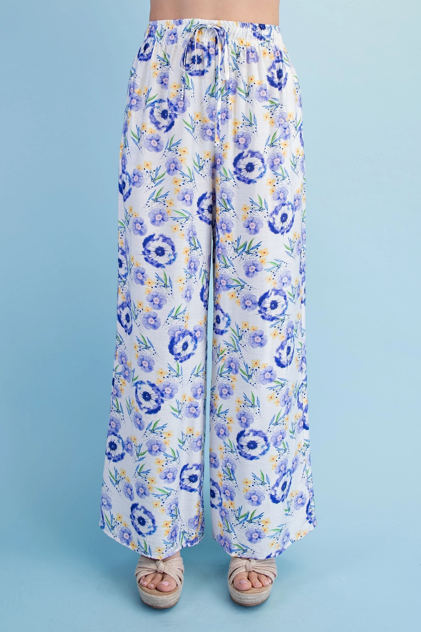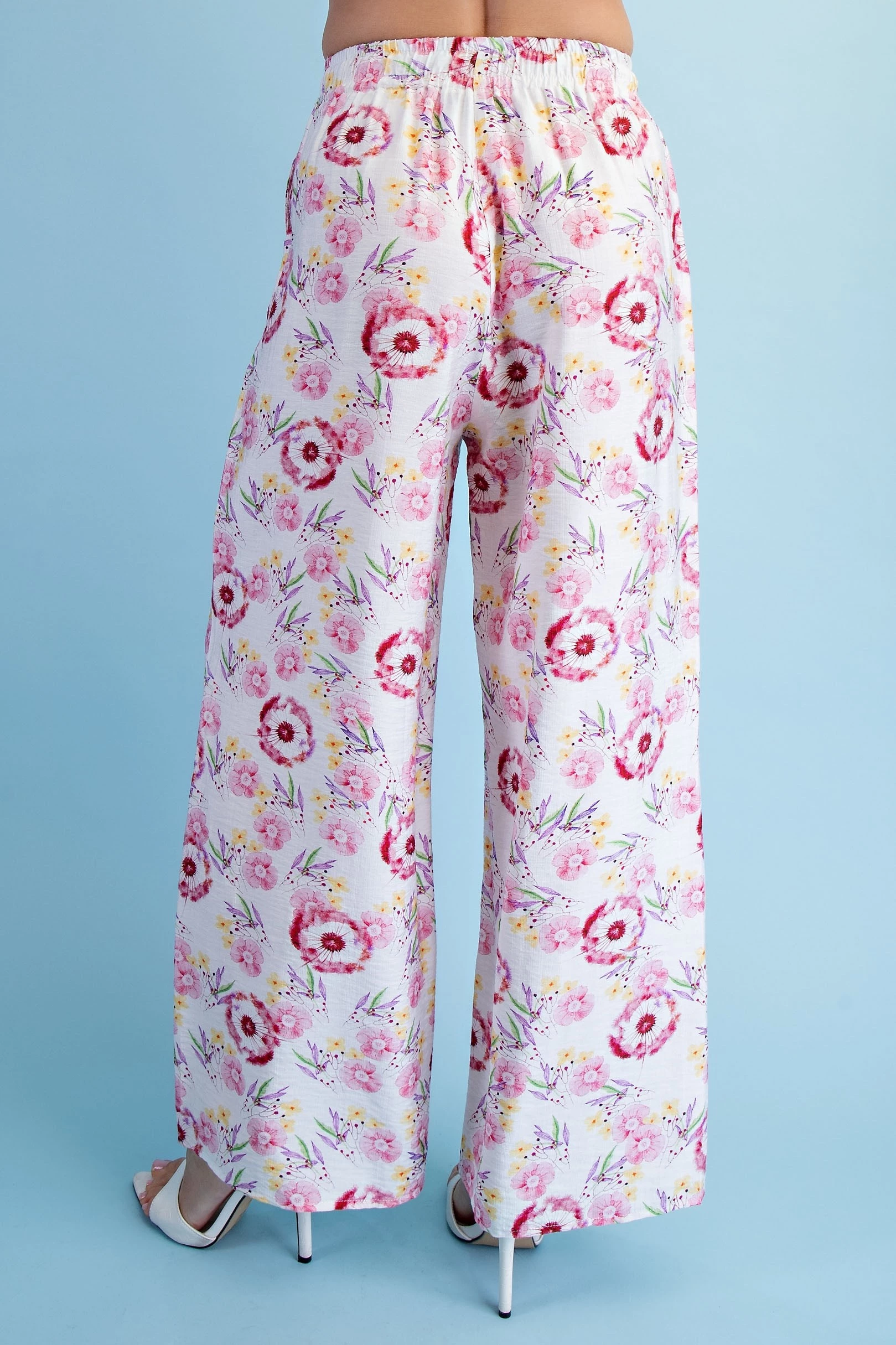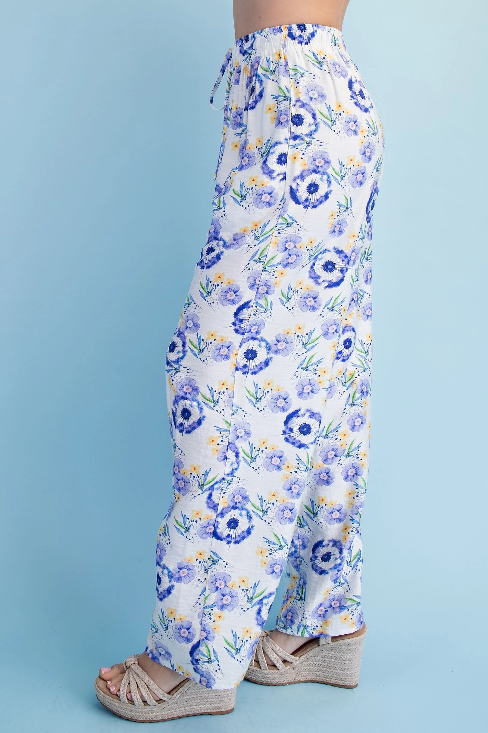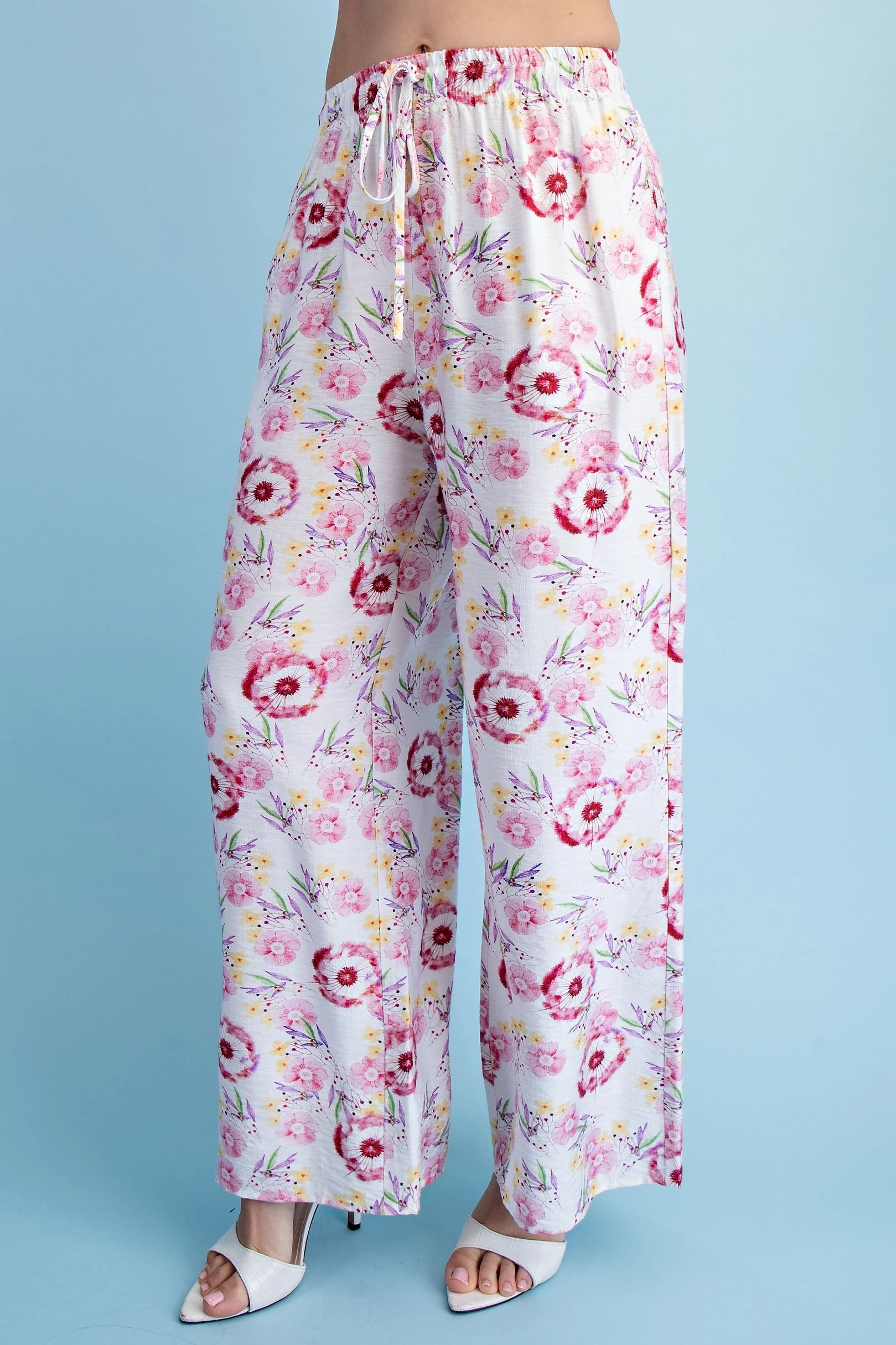 Floral Print Relaxed Fit Pants with an Elastic Waist and Drawstring