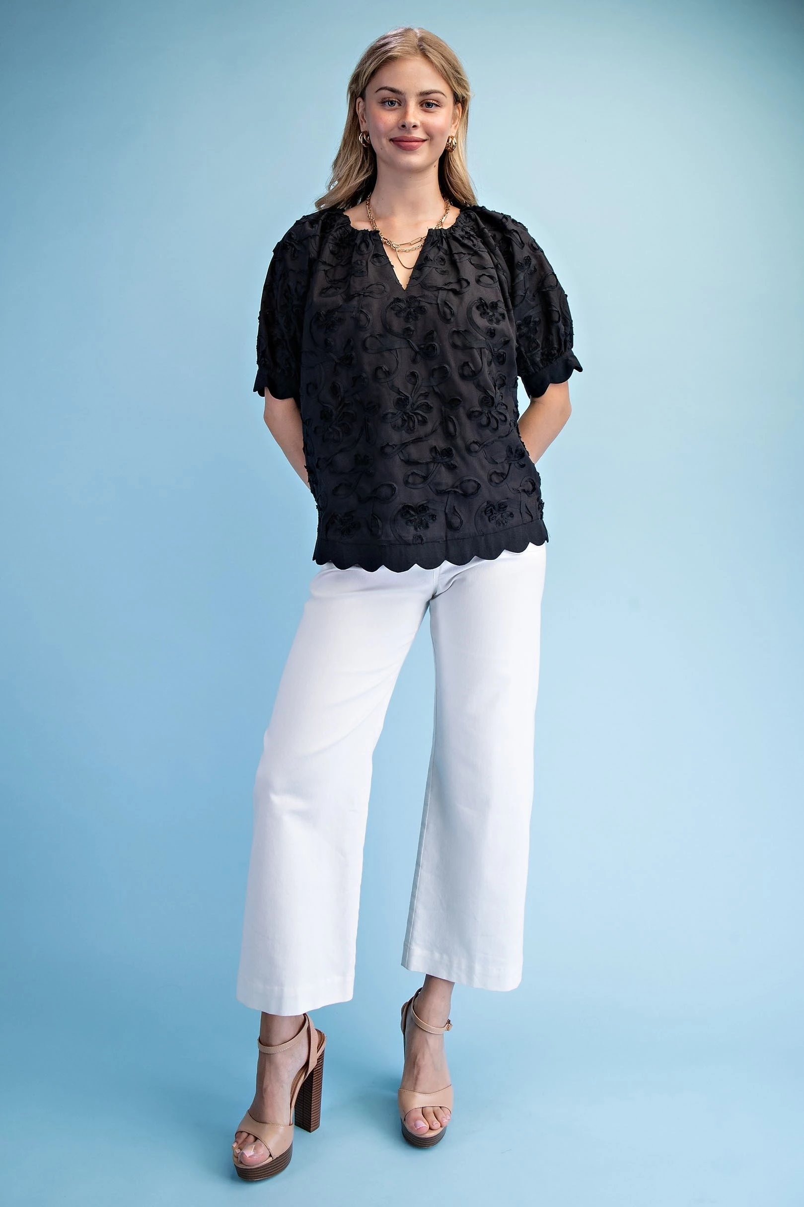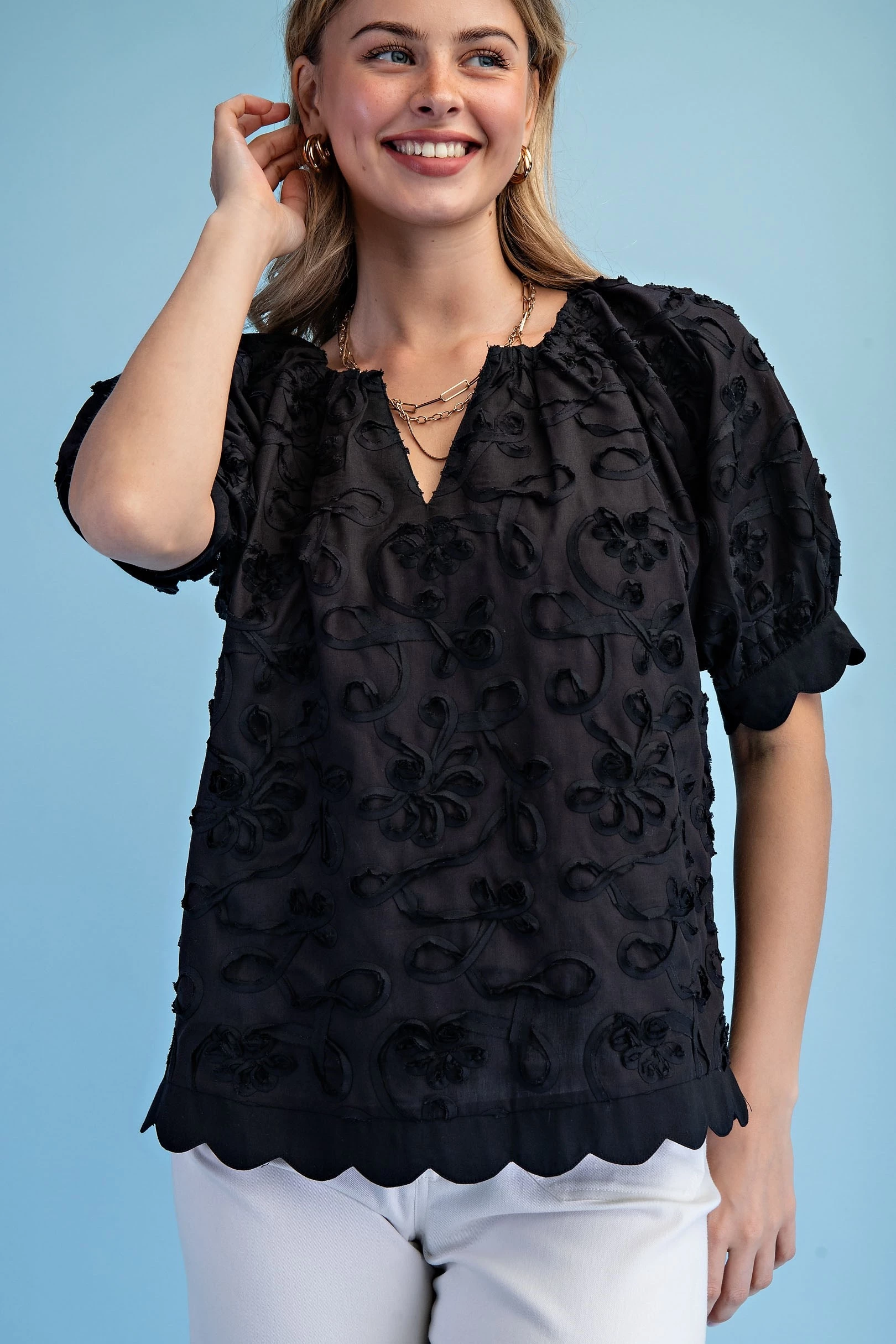 Short Sleeve Top with Smocking on Front and Back