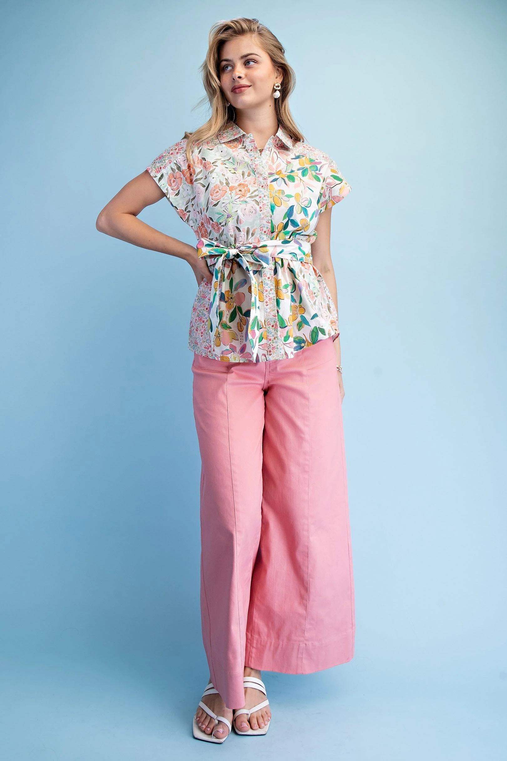 Washed Satin Wide Legged Pants with Waist Smocking