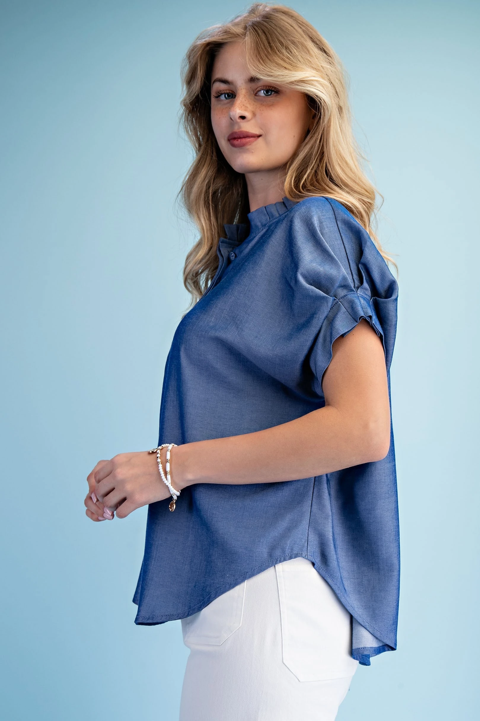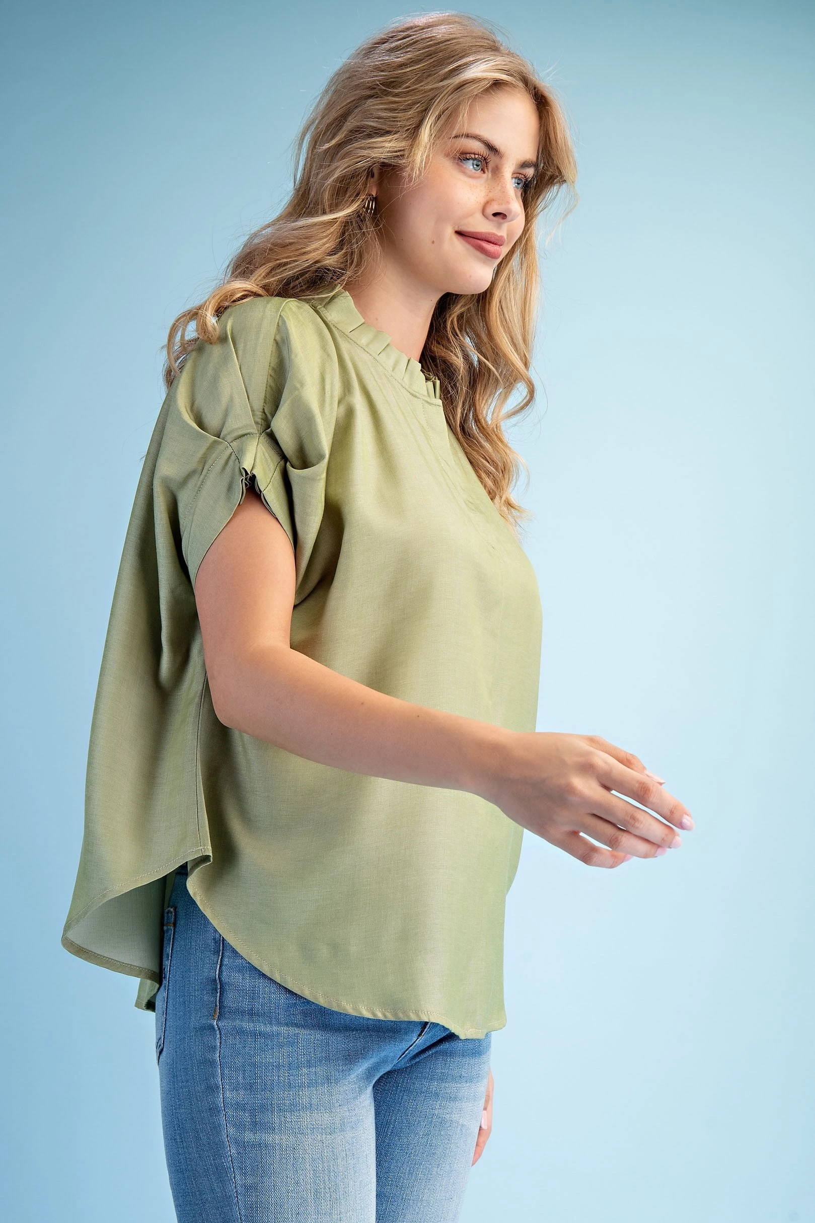 Linen V-Neck Top with a Padded Cap Sleeve