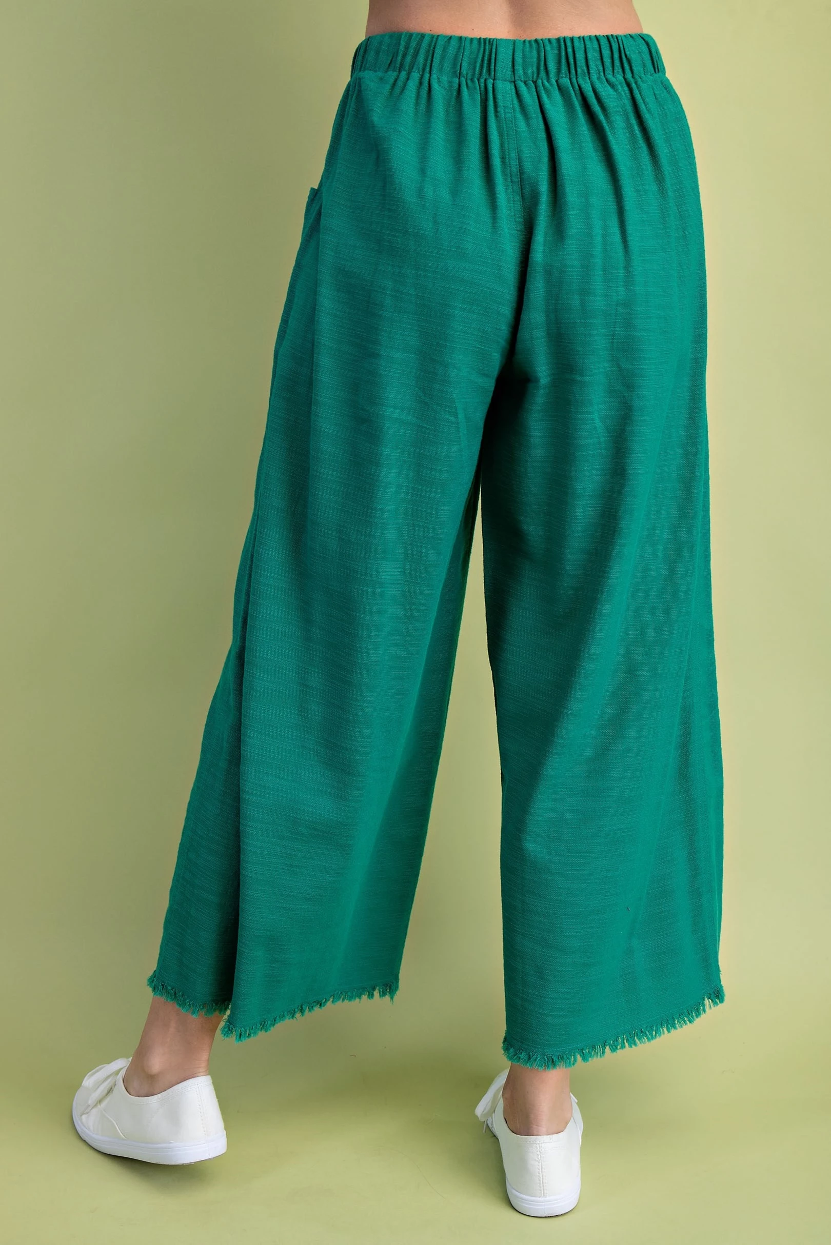 Frayed Cropped Wide Leg Pants with Pockets in a Lightweight Linen Blend