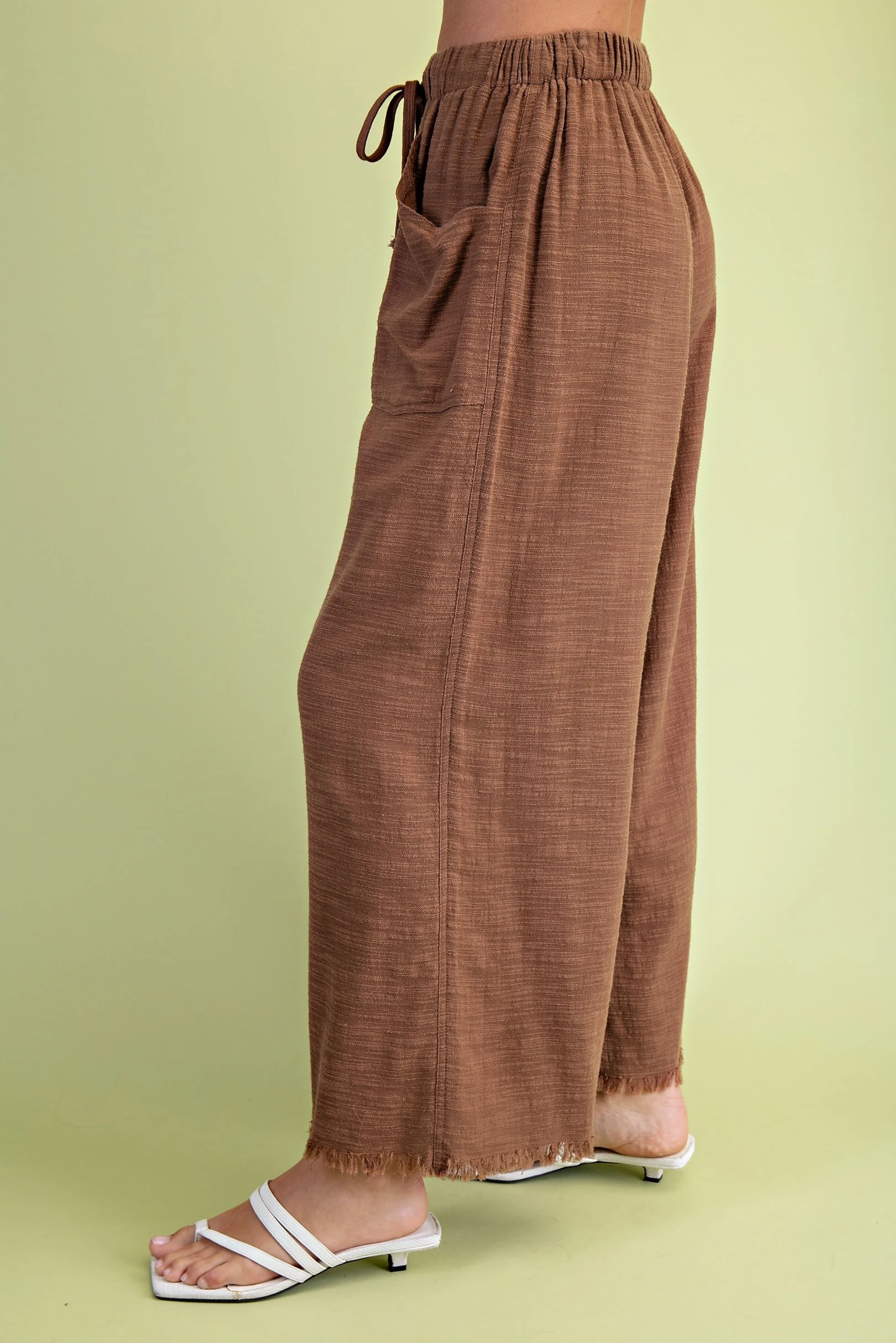 Frayed Wide Leg Pants with Pockets