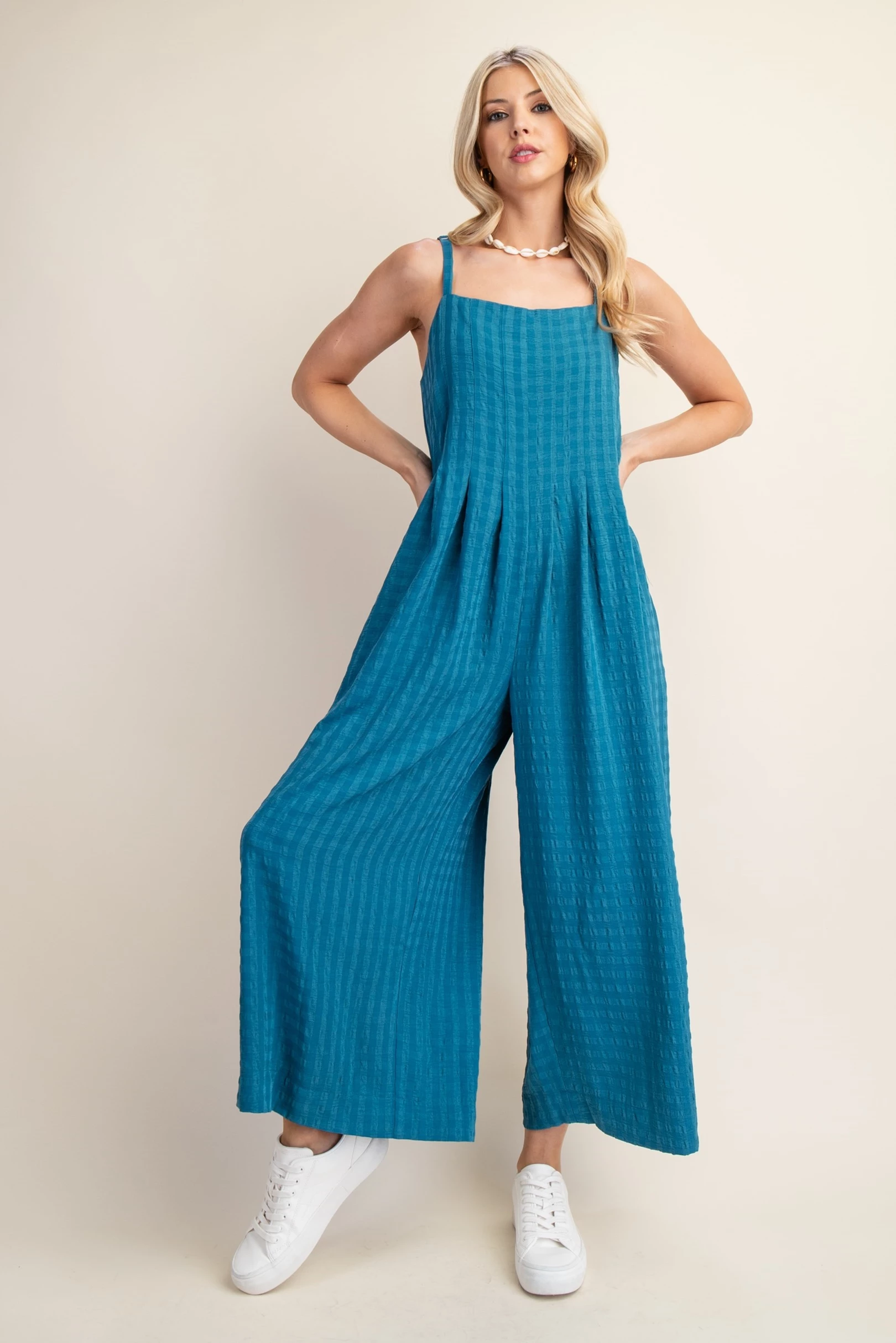 Ankle Cropped Summer Pants in a Stretchy Denim-Like Fabric with Pockets