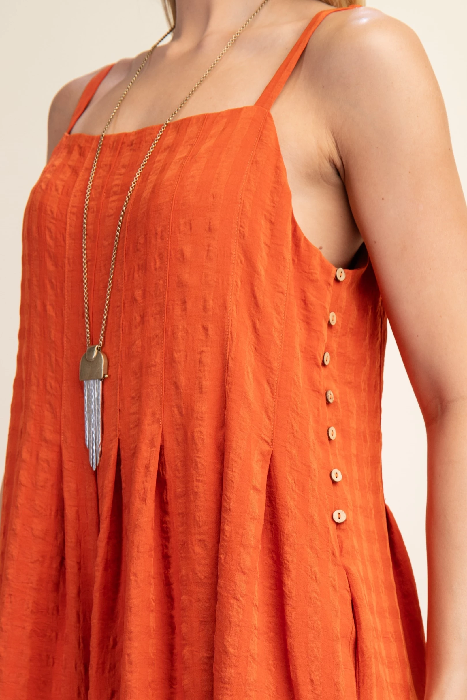 Floral Embroidered V-Neck Dress with Contrasting Stripe Details. The Dress is Lined
