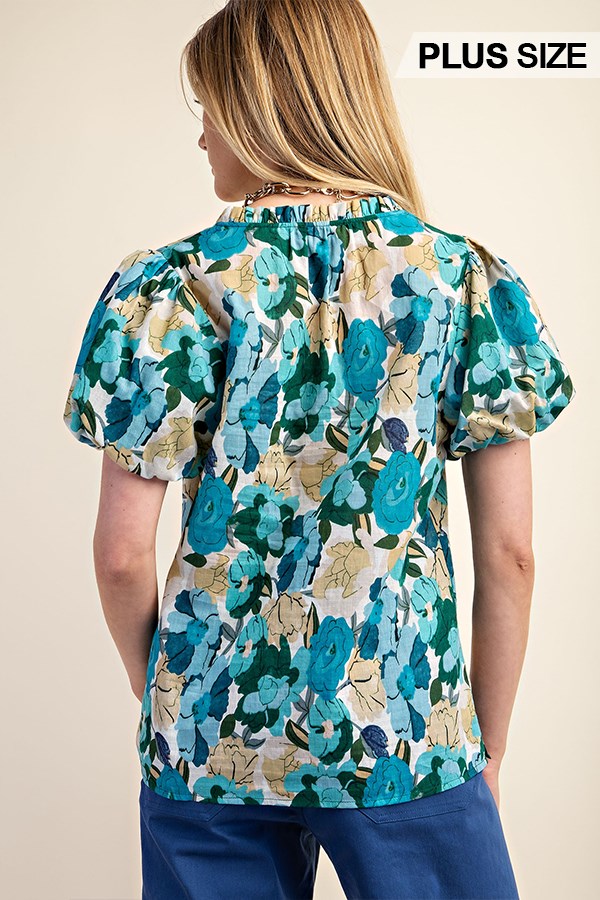Lightweight Floral Button Up Top with Ruffled Sleeves