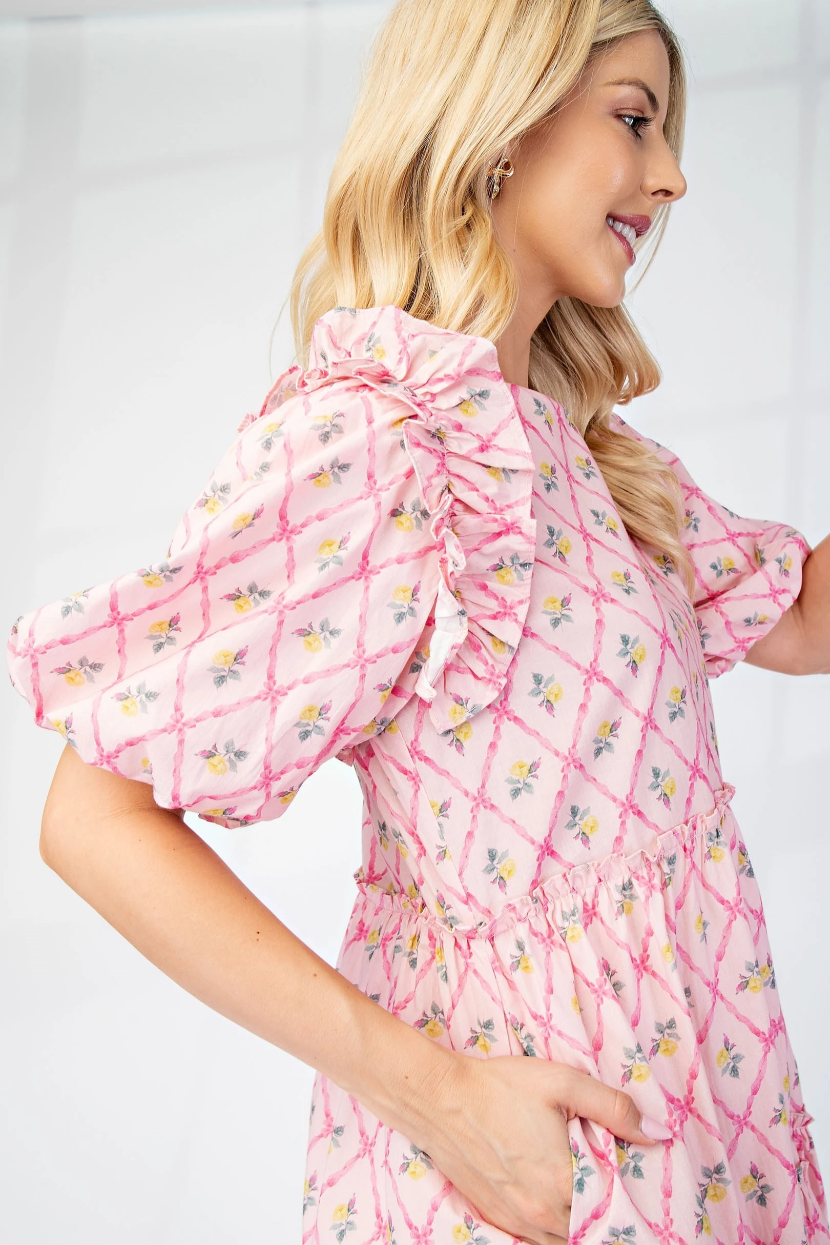 Round Neck Mini Babydoll Dress with Puff Sleeves and Ruffle Details